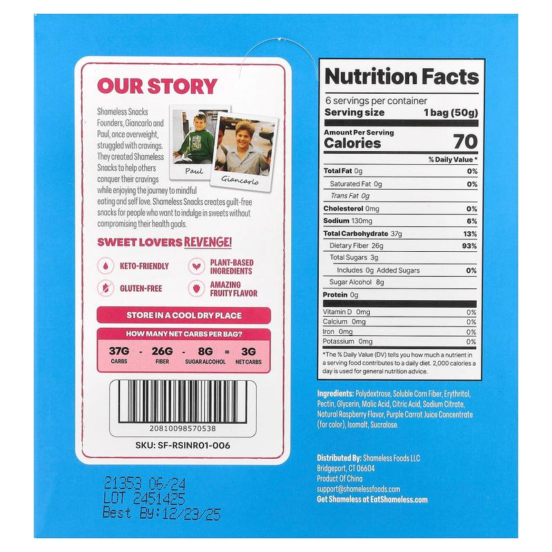 5. Shameless Snacks Gummy Candy, Red Raspberry Sour Scouts®, 6 Bags, 1.8 oz (50 g) Each