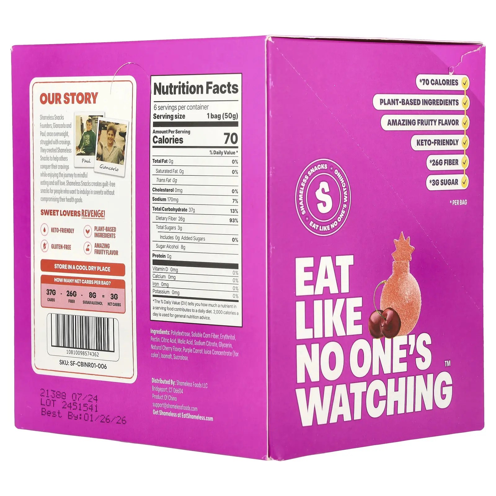 5. Shameless Snacks Gummy Candy, Super Sour Cherry Bomb, 6 Bags, 1.8 oz (50 g) Each