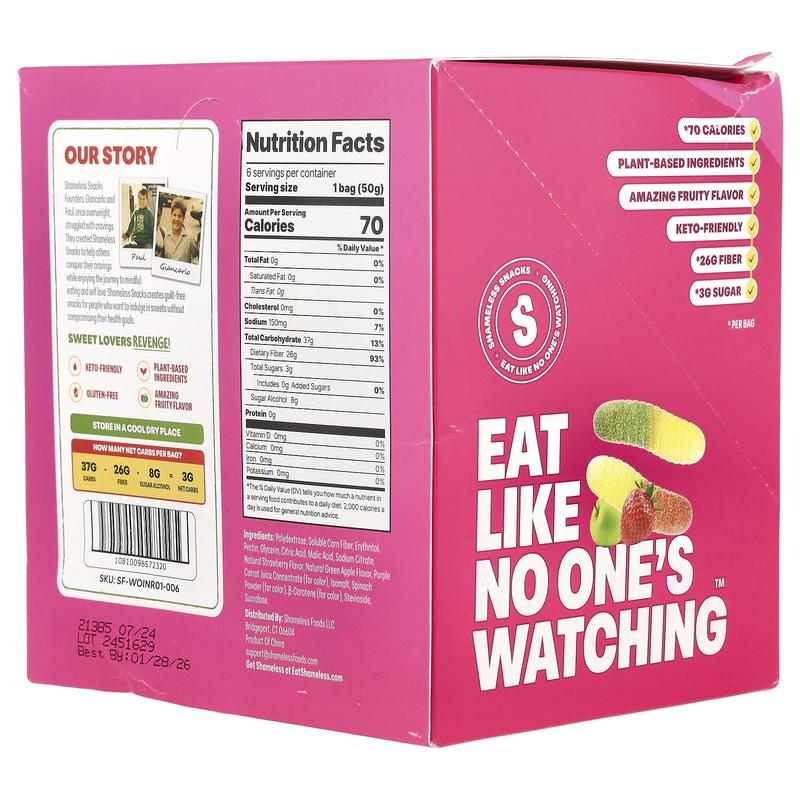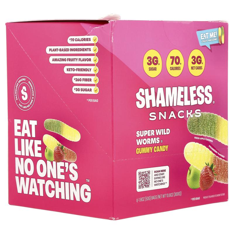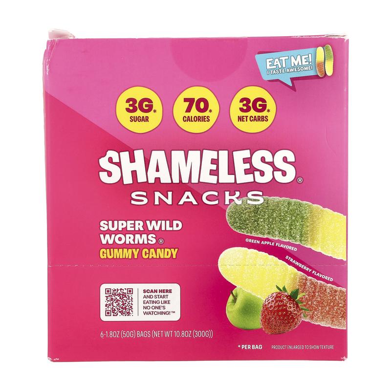 5. Shameless Snacks Super Wild Worms® Gummy Candy, Green Apple and Strawberry, 6 Bags, 1.8 oz (50 g) Each