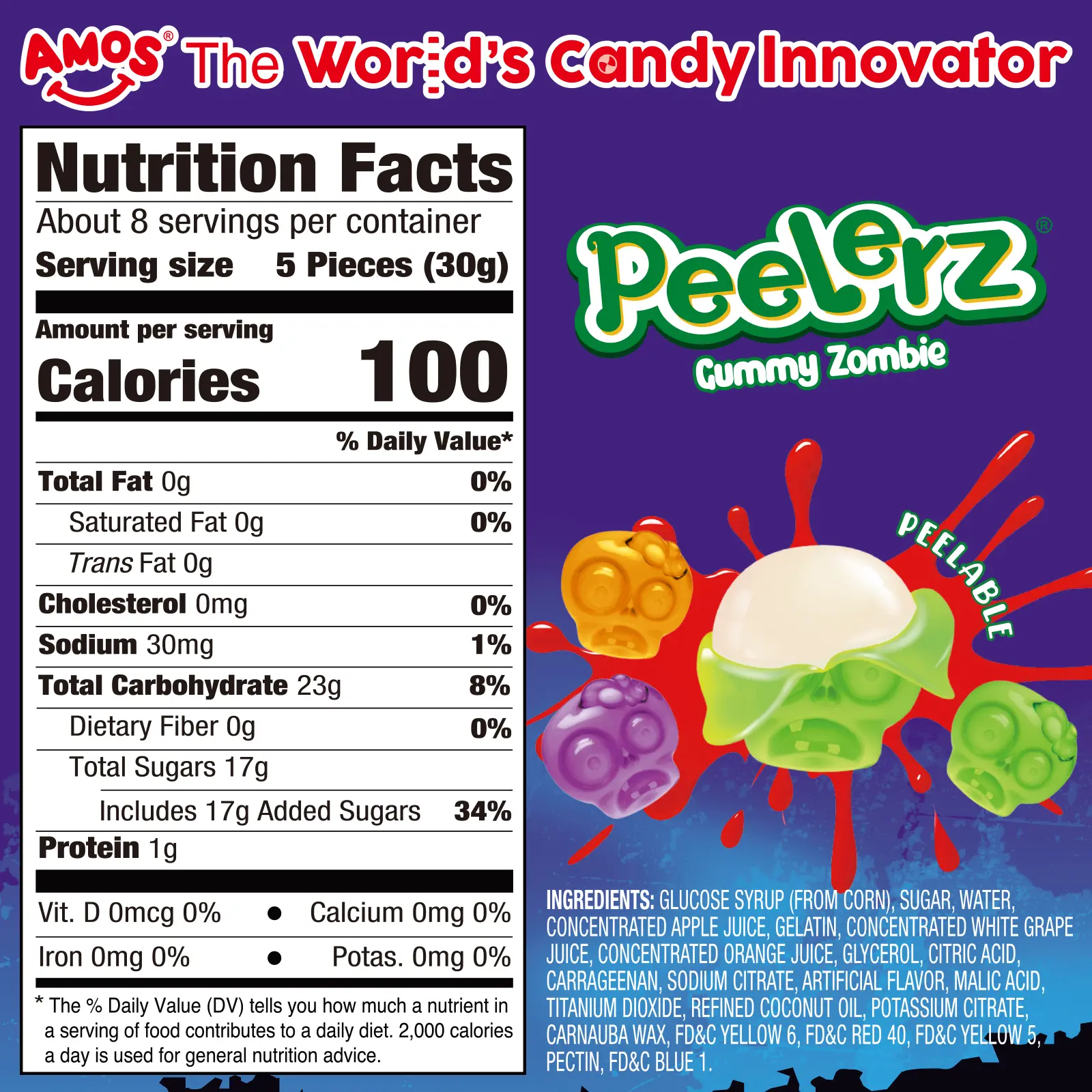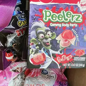 Explore gummy brains, bones & organs that peel and squish like the real thing. Packed with real fruit juice and bold flavors like apple, grape, and orange! Each gummy is individually wrapped for safe sharing and trick-or-treating.