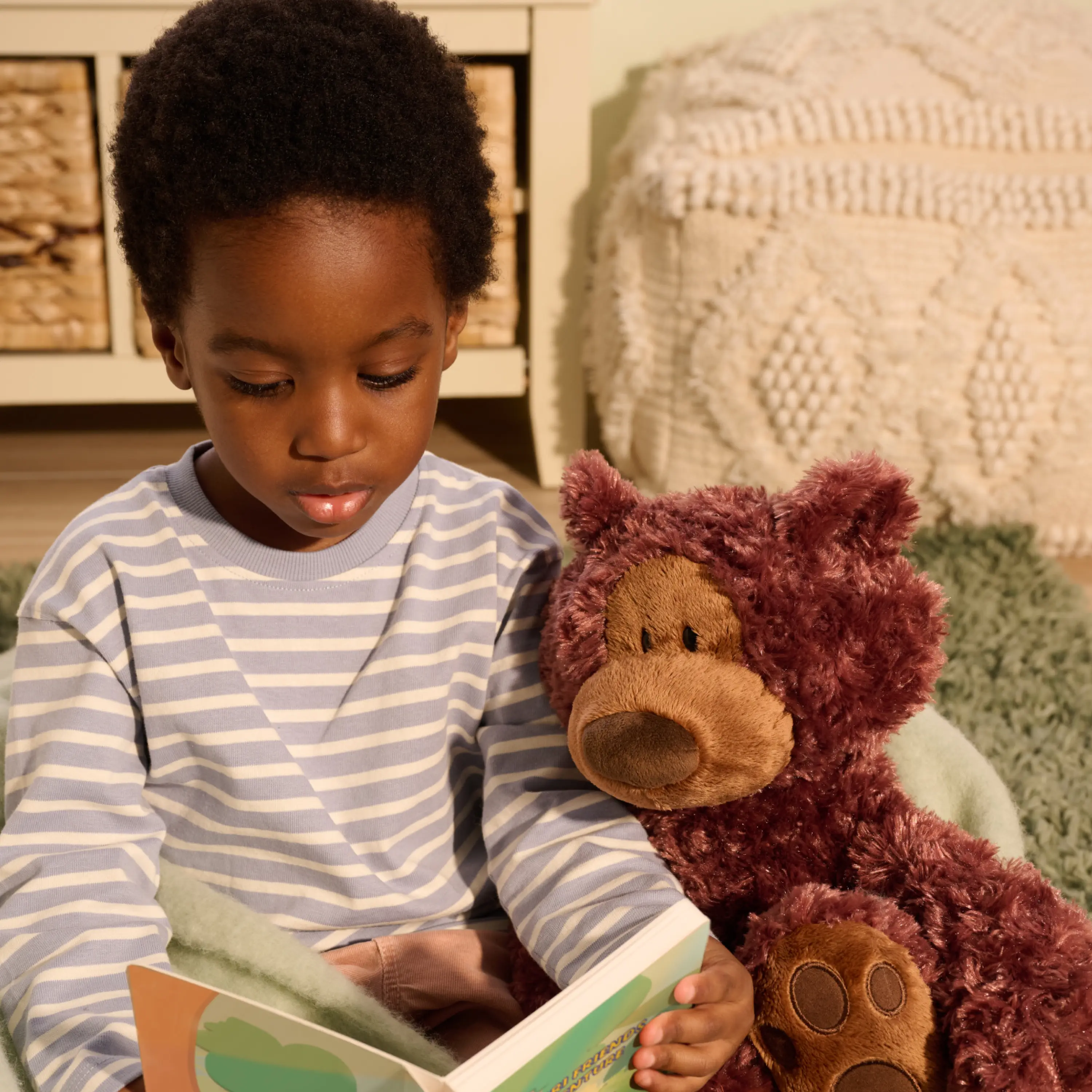 This adorable teddy is per for my new great grandson. It so soft. It has the most adorable facial expression. It melts your heart. Love that you can register it in case it gets lost so it can be found or replaced.