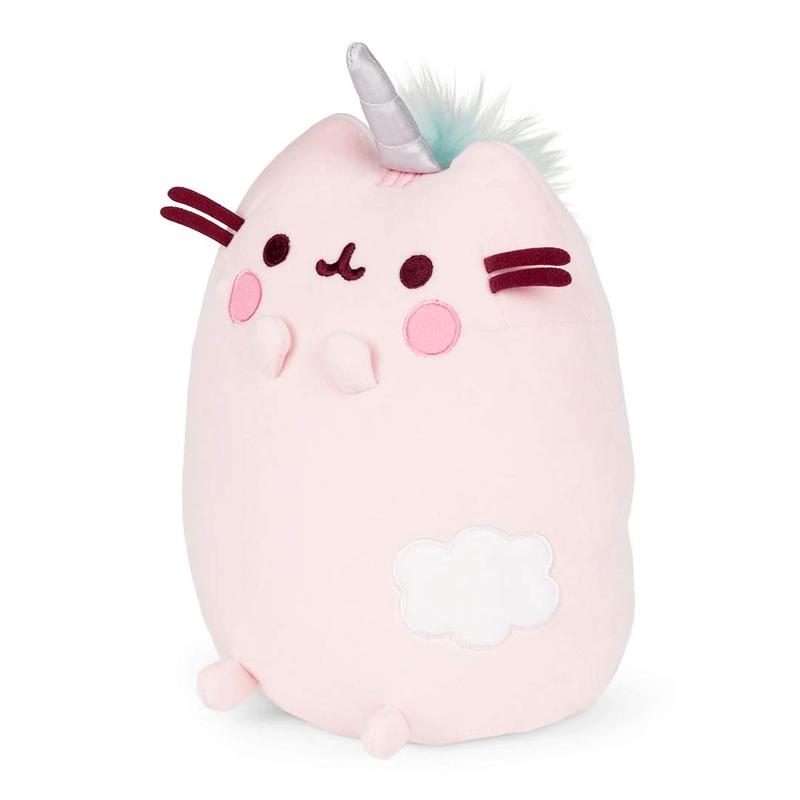 The GUND Pusheen Dreamy Pusheenicorn Squisheen 9.5" Plush Toy is part of the new Squisheen collection, which has uniquely elastic fabric that makes her extra squishy inside and super soft outside! This special, extra dreamy Pusheenicorn features pink plush, rosy blushing cheeks, iridescent horn, and a special cloud embroidery.