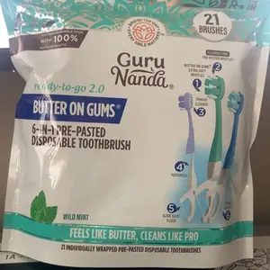 ·Features: 6-in-1 oral care tools, fluoride-free pre-pasted bristles, wild mint flavor, dual-action tongue cleaner, integrated toothpick, easy-glide floss