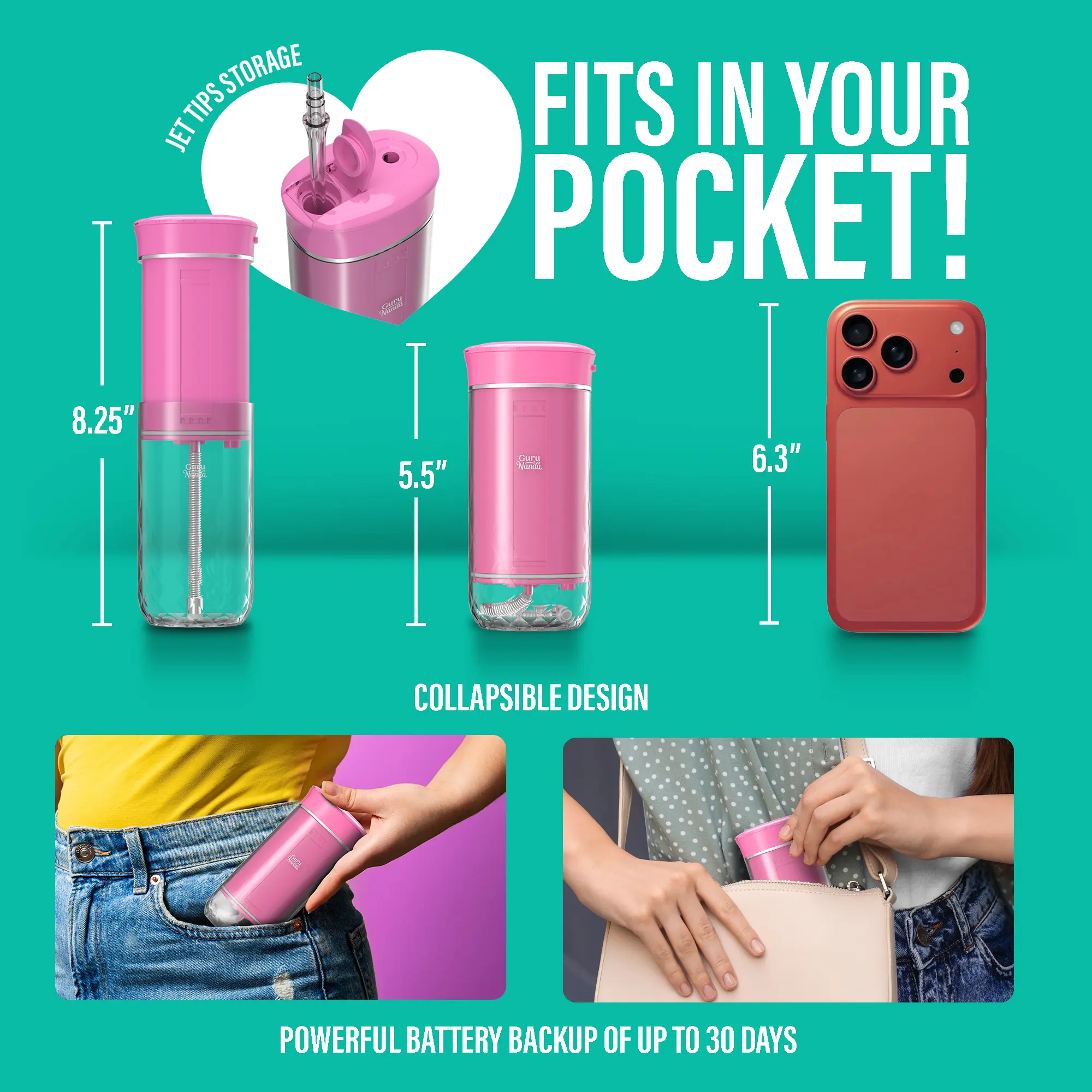 4 Flossing Modes: Choose from soft, medium, strong, and pulse modes for a customized oral care experience. With 4 hours of charge time on a full charge lasting up to 30 days.