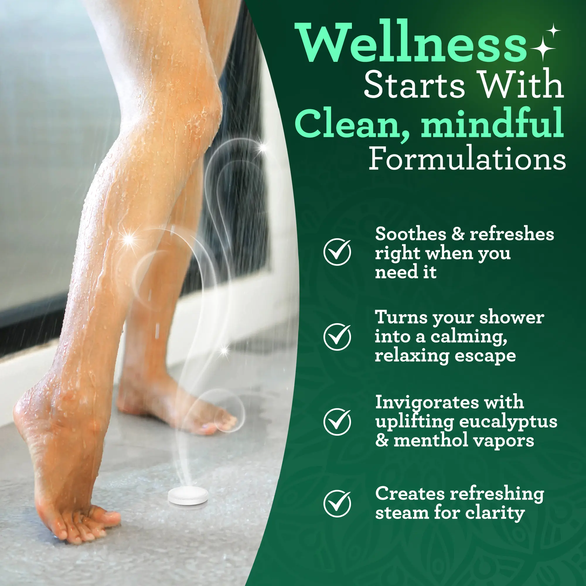 Place the shower vapor tablet on the floor, just outside the water stream. Enjoy a blissful shower experience. Indulge in our Shower Vapor Tablets—meticulously formulated without artificial fragrances, parabens, or sulfates. Beautifully packaged, they make a thoughtful gift for anyone who deserves a moment of wellness.