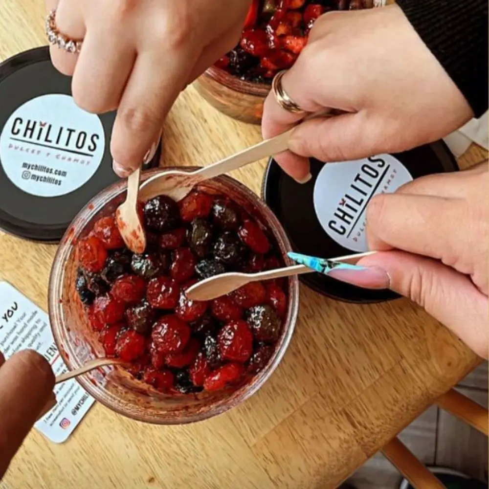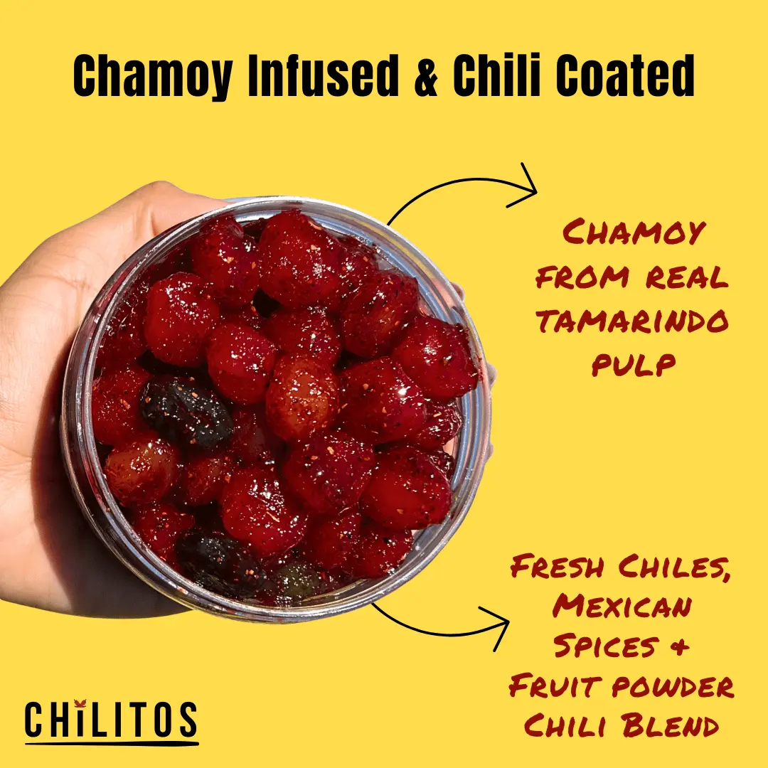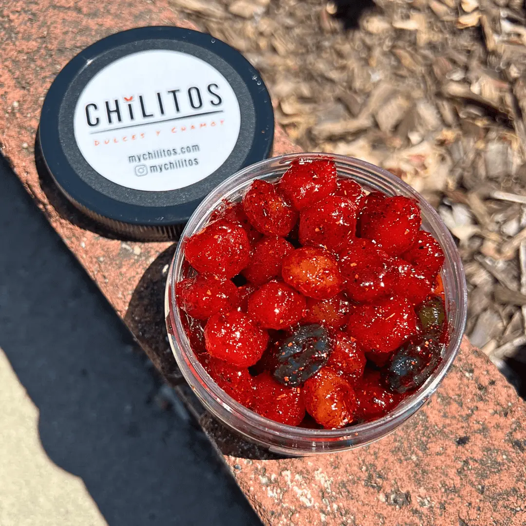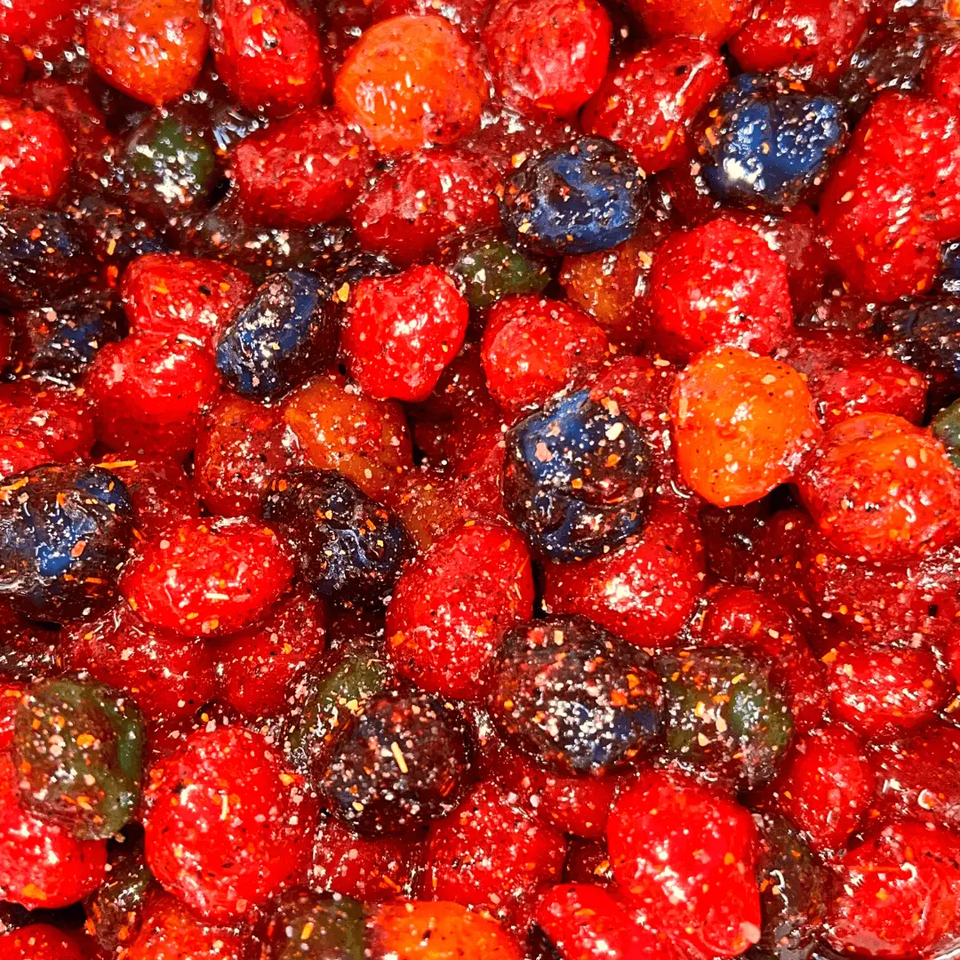 | Ingredients | Chili peppers (Chile de arbol,guajillo,pasilla,chile california),dehydrated lime,citric acid,sea salt,Iodized salt,Sugar,Tamarindo pulp,Water,hibiscus flower,silicon dioxide,sodium benzoate (to preserve freshness),corn syrup,xantham gum,Red 40,Blue 1,Yellow 5 & 6,Dried Corn Syrup,Pear Puree Concentrate,Modified Corn Starch,Fructose,Maltodextrin,Palm Oil,Cottonseed Oil,Glycerin,Grape Concentrate,Carrageenan,Monoglycerides,Sodium Citrate,Malic Acid,Vitamin C,Potassium Citrate,Agar-Agar |