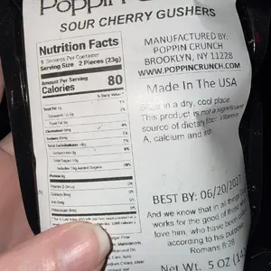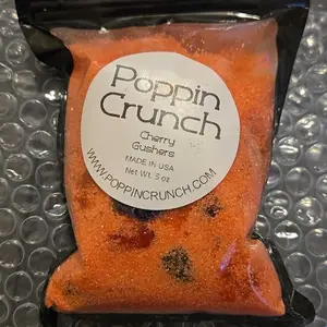 Indulge in the tart and sweet sensation of Poppin Crunch Cherry Flavored Gushers Candy Snacks.