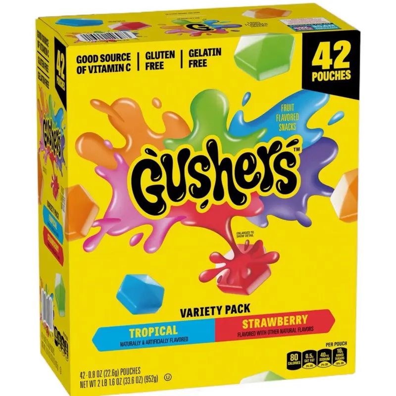 Elevate your snack game with the Gushers Strawberry & Tropical Variety Pack,