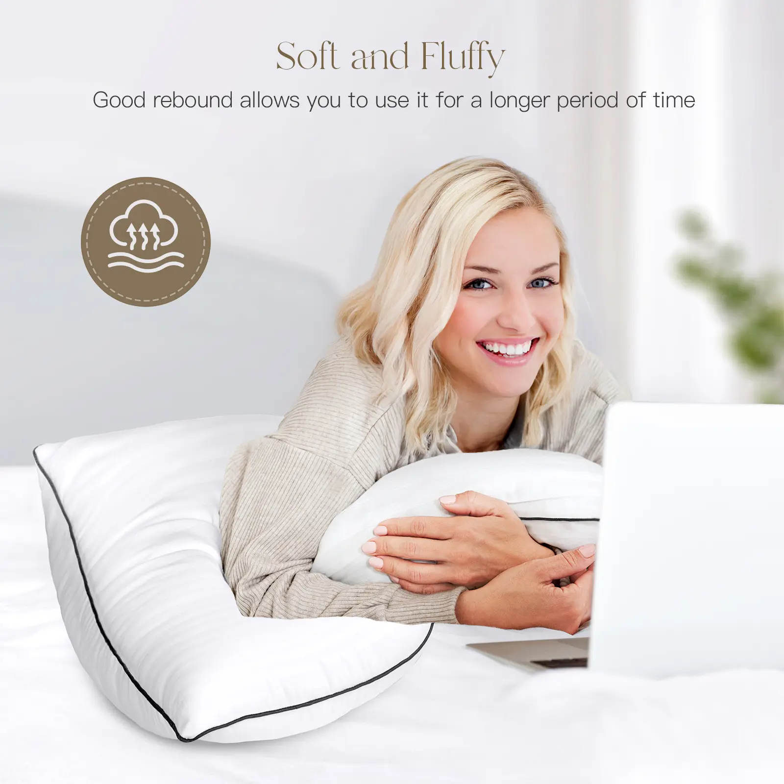 ·Always Fluffy: the pillow is wrapped in a generous amount of breathable and highly resilient 7D Premium Hollow Fiber, which prevents flattening or clumping and keeps it plump all night long