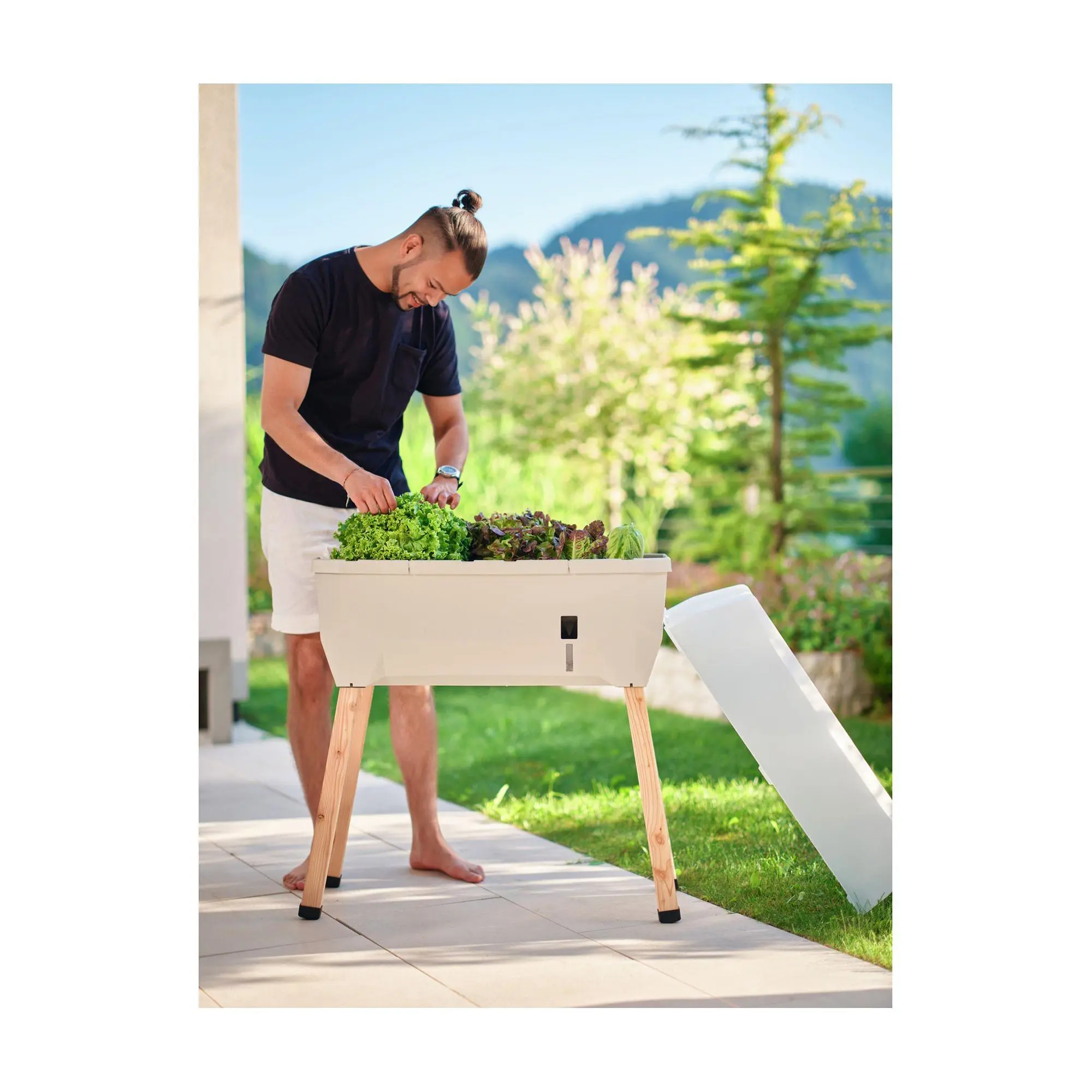 Love to have fresh lettuce or herbs at your fingertips? Create your own garden and pick fresh produce for salads and homemade recipes with this raised garden bed. From Gusta Garden.