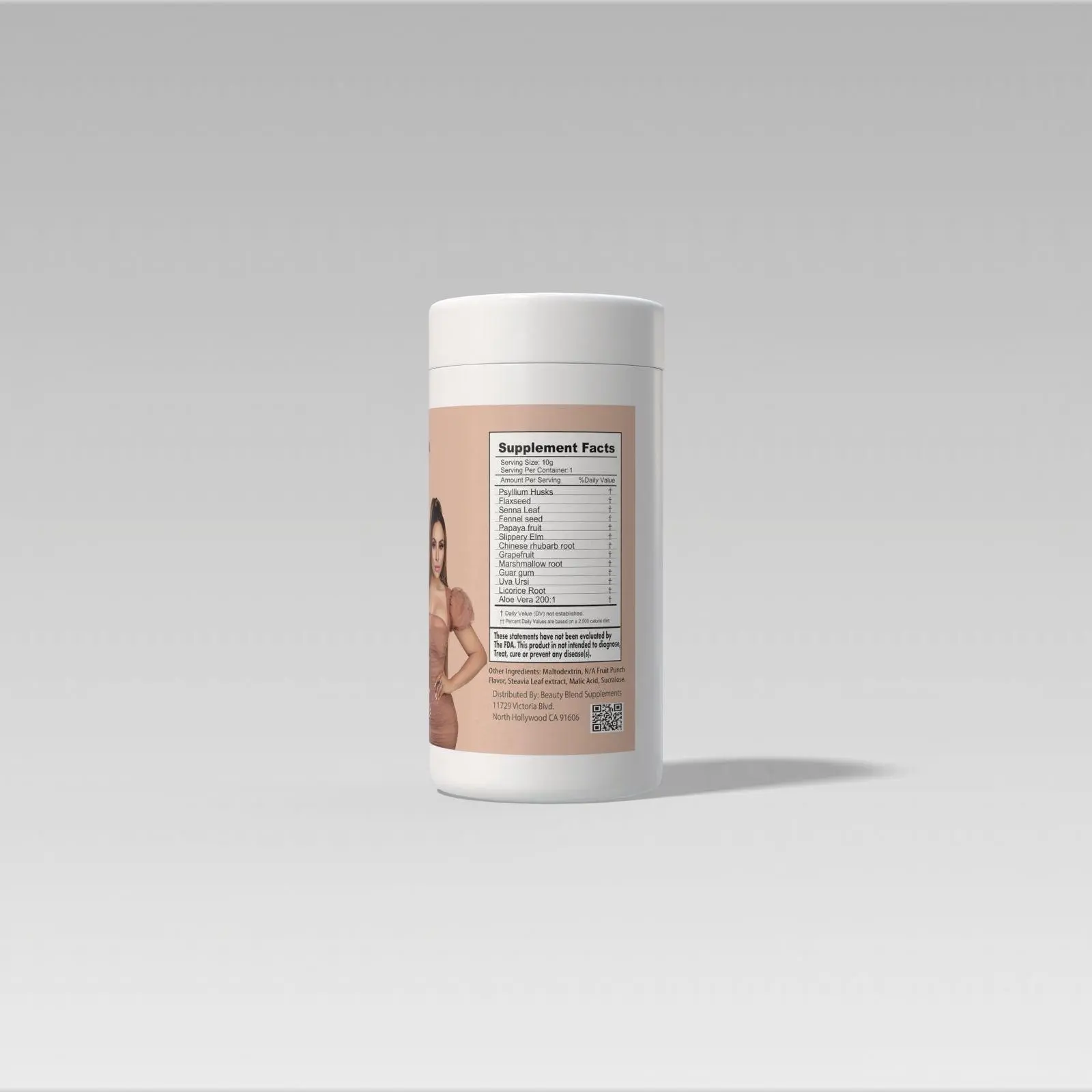 Psyllium husk, flaxseed, senna leaf, fennel seed, papaya fruit, slippery elm, rhubarb, marshmallow root, licorice, aloe, plus probiotics/prebiotics.