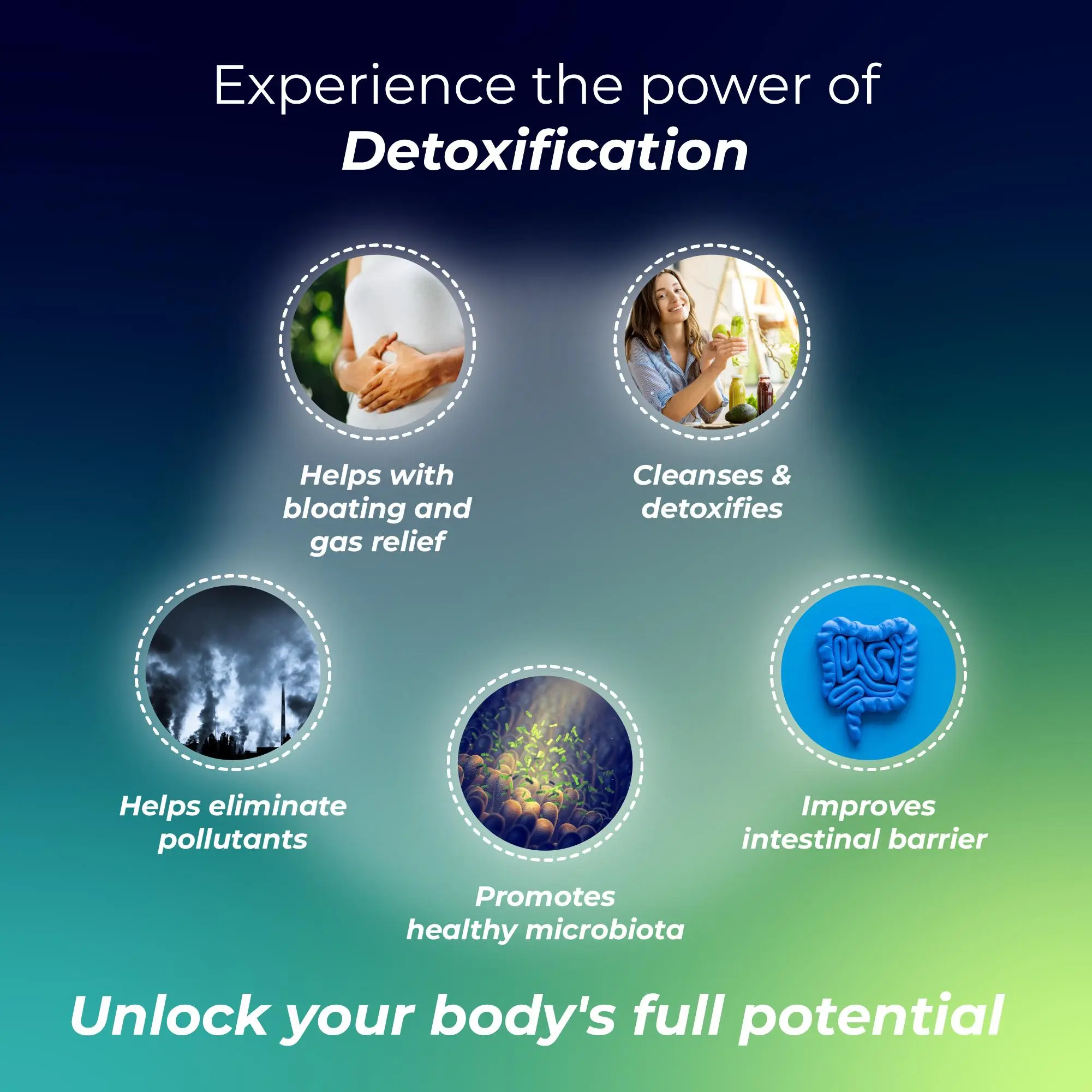 Supports Digestive Health: Regular use can help detox the digestive system, reducing bloating, discomfort, and promote better nutrient absorption with digestive enzymes.