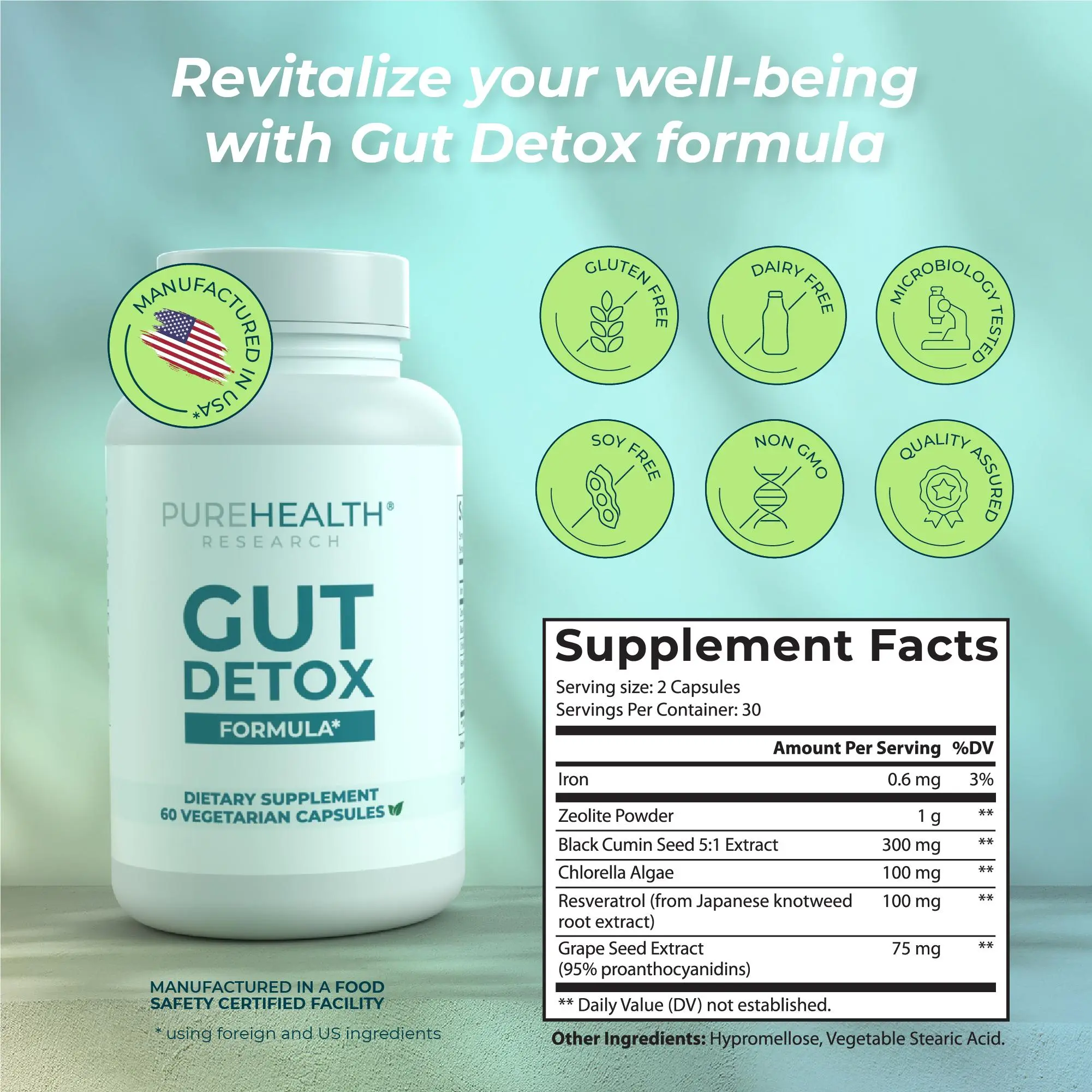 Gut Detox Formula Digestion Supplement by PureHealth Research offers a trusted, high-quality detox formula with Zeolite and Clinoptilolite, two key minerals known for their natural ability to cleanse the body. This comprehensive gut cleanse is ideal for anyone looking to rid their digestive system of harmful substances and promote optimal digestive function. With regular use, you’ll feel more energized and experience a healthier gut and better overall wellness. No more gas, unexpected stomach aches or other digestive issues!