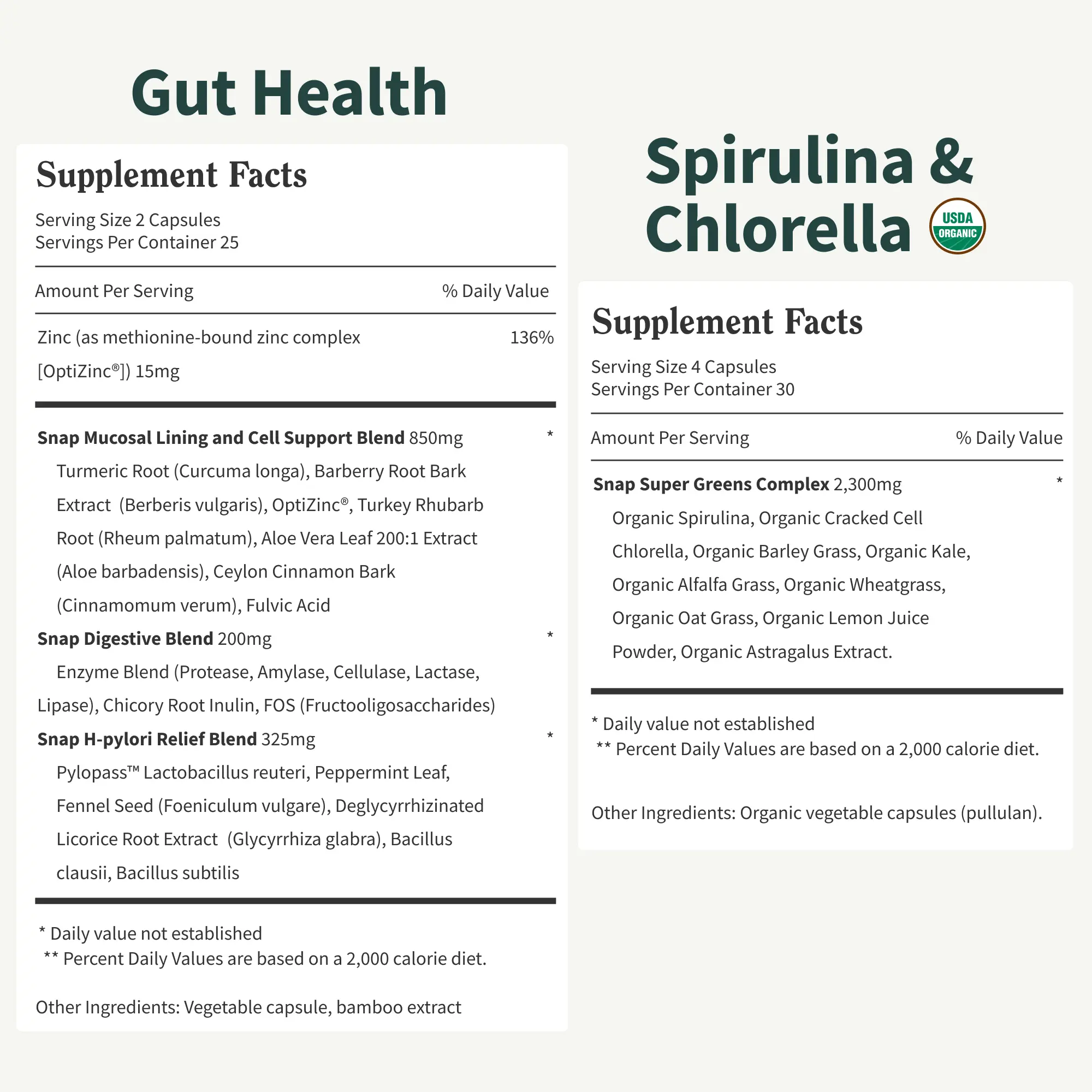 Snap Supplements Gut Health + Spirulina & Chlorella Bundle