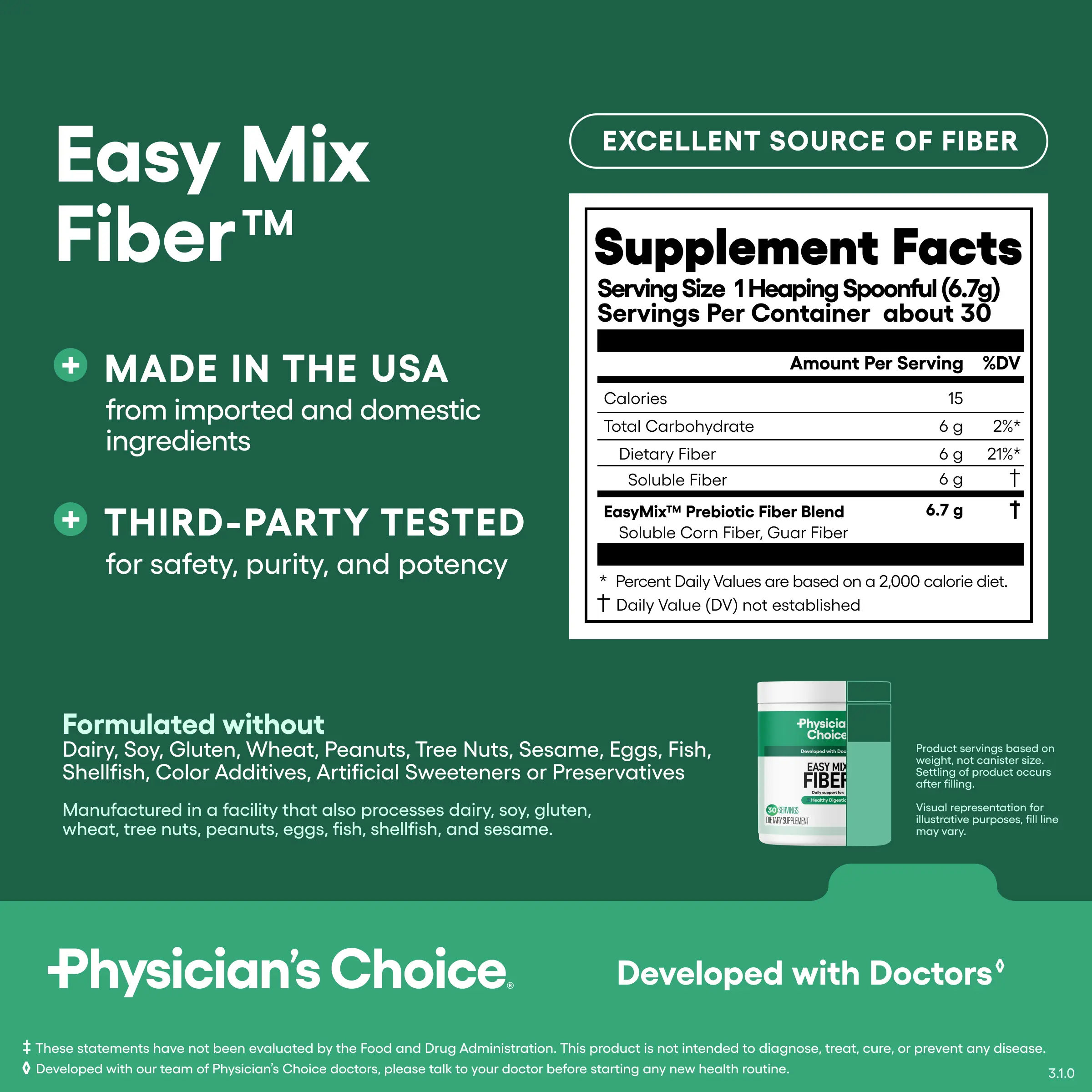 Easy Mix Fiber - 6 grams of gentle prebiotic fiber powder to fuel probiotics, support regularity, and help manage hunger levels