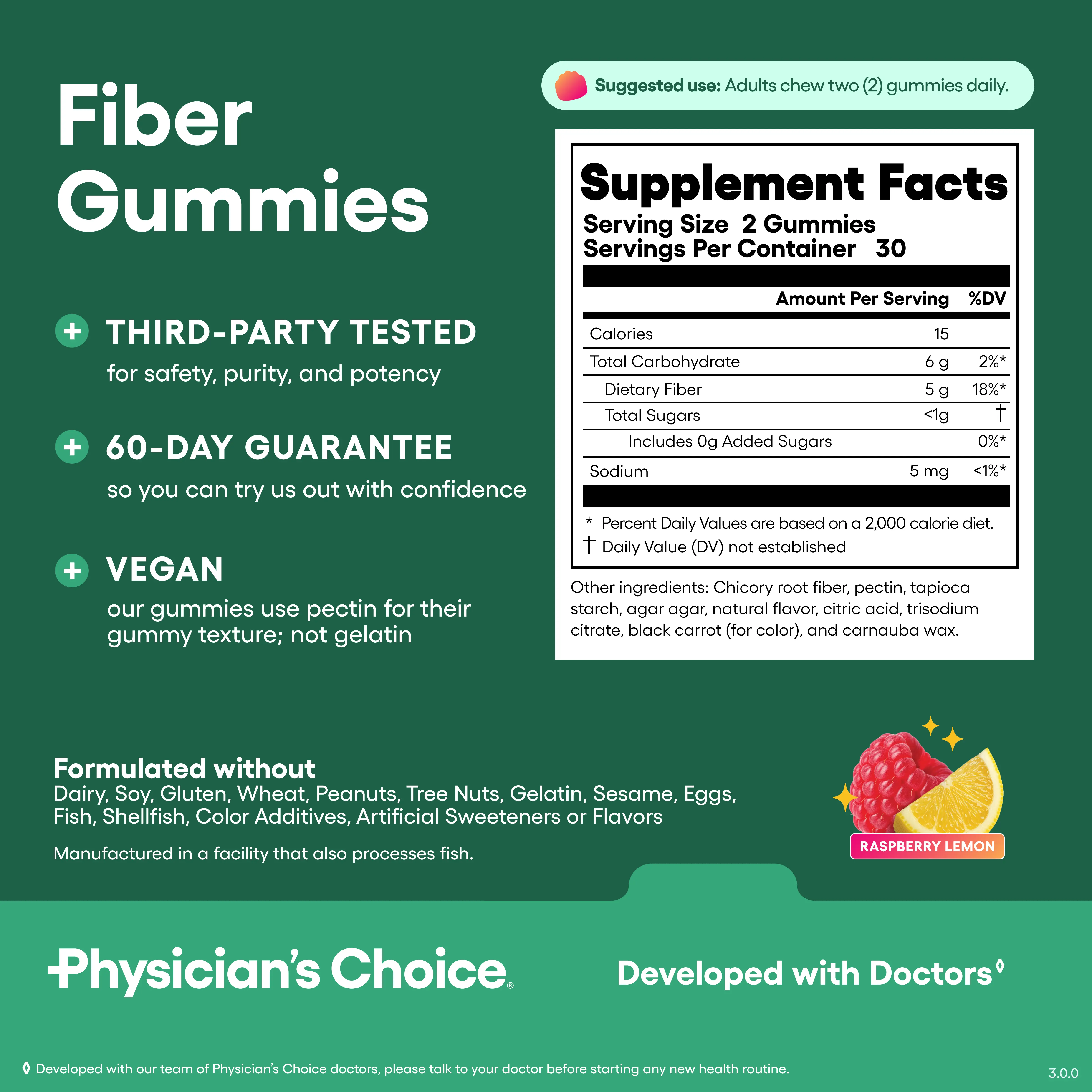 Fiber Gummies - 5g of prebiotic fiber per serving to support daily digestion with great-tasting, plant-based gummies made without sugar alcohols or artificial sweeteners