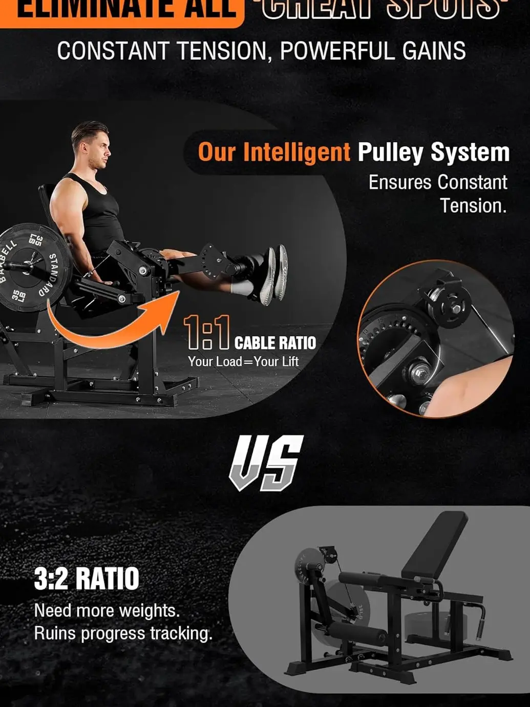 ·True Constant-Tension Cable System: Aircraft-grade aluminum pulleys ensure buttery-smooth motion and constant muscle tension throughout every rep—unlike traditional gravity-limited leg extension machine that lose resistance. With a true 1:1 cable ratio, the weight you lift is the weight you load, enabling precise tracking and effortless changes. Perfect for shared workouts and relentless gains.