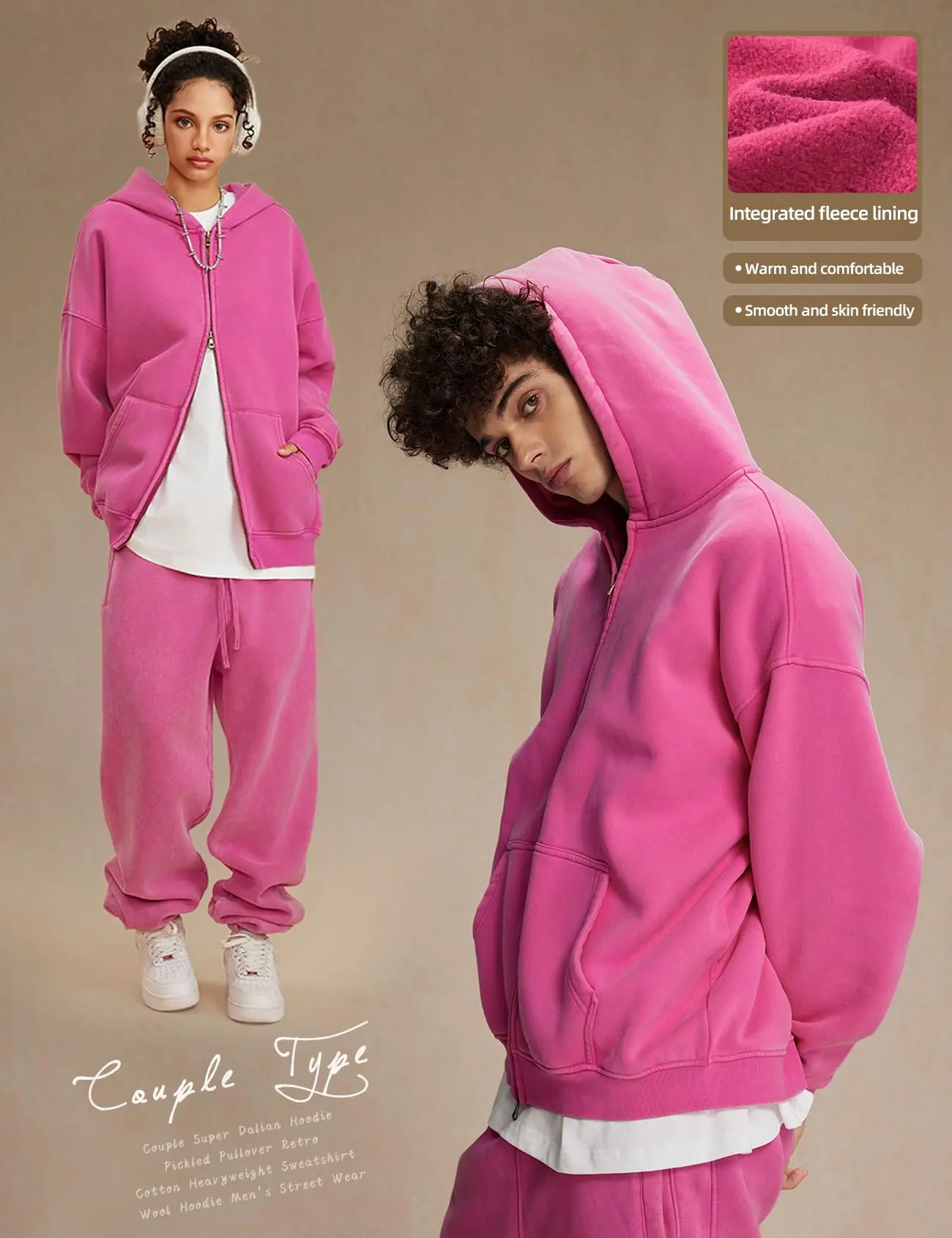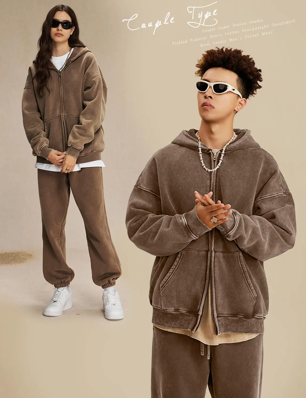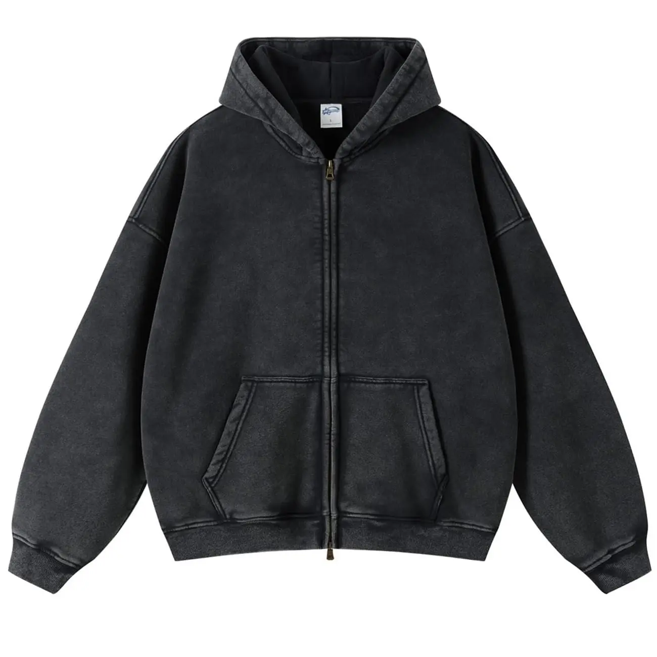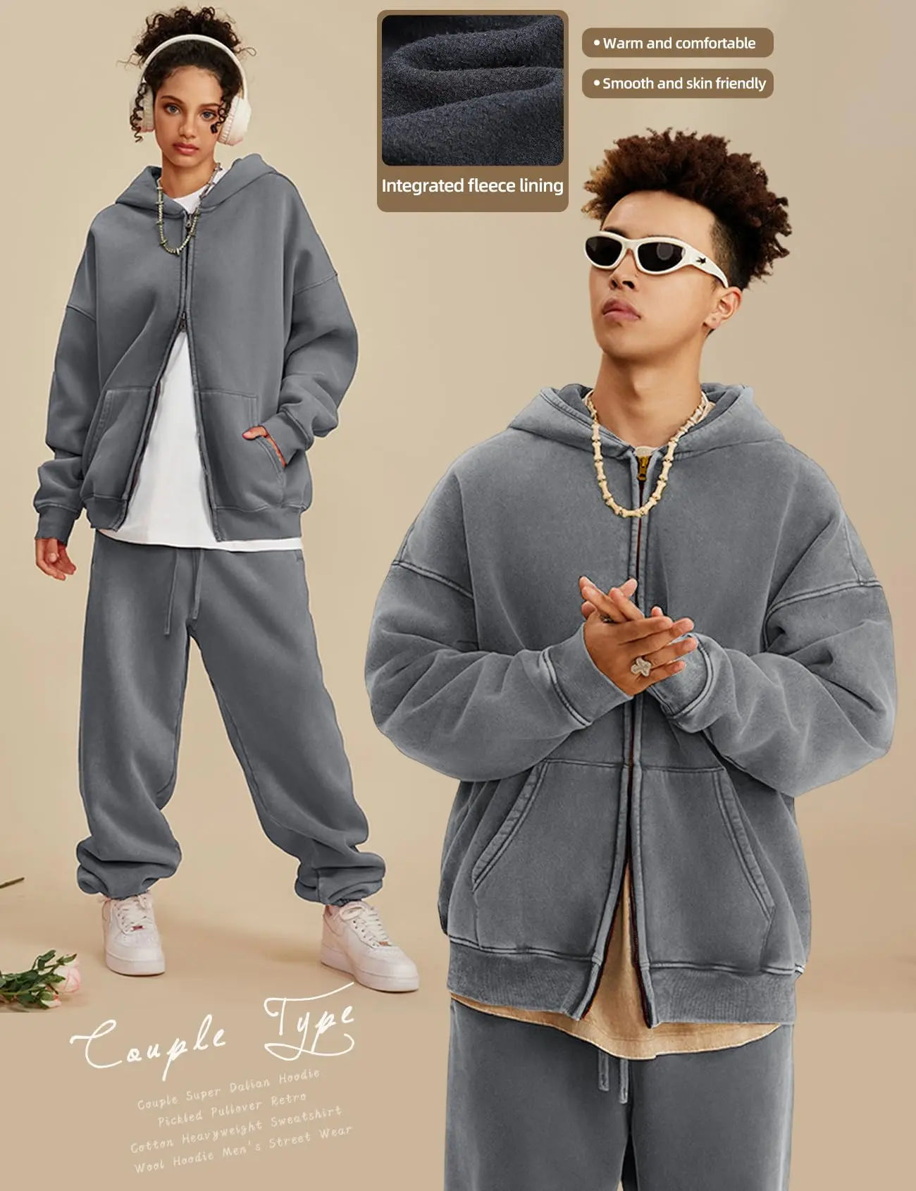 ·Features: Oversized zip up hoodie for men design with double zipper, ribbed cuffs, long sleeve, kangaroo pocket, drop shoulder, unisex acid washed hoodie vintage style