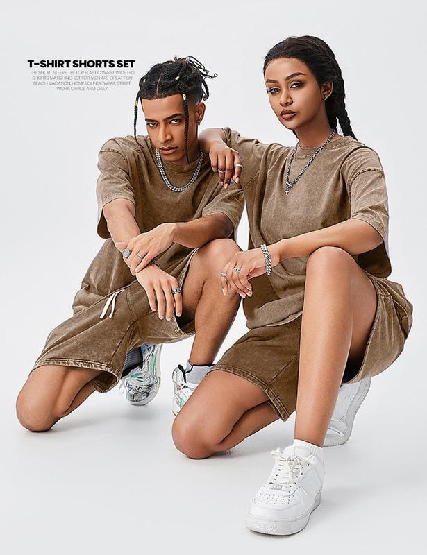 ·The 2-piece outfit set is acid wash washed tracksuit. Ideal for summer activities. 🌞