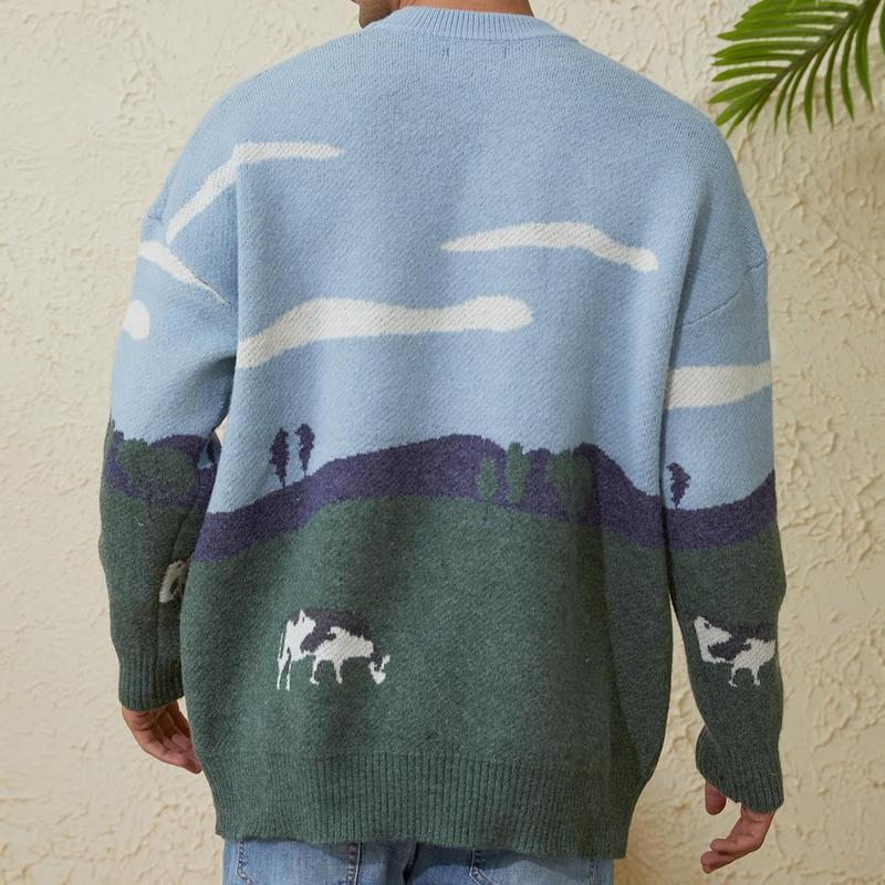 🦕 Gihuo Men's Oversized Dinosaur Pattern Casual Cable Knit Pullover