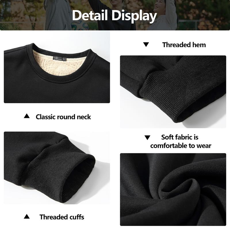 • O Neck: This classic round neck sweatshirt offers convenience with its easy pull-on design. Perfect for everyday wear, it ensures a timeless look. • Comfortable Design: Ribbed cuffs and hem provide great stretch, ensuring all-day comfort. The soft sherpa lining extends to the inside of the sleeves, keeping you warm.