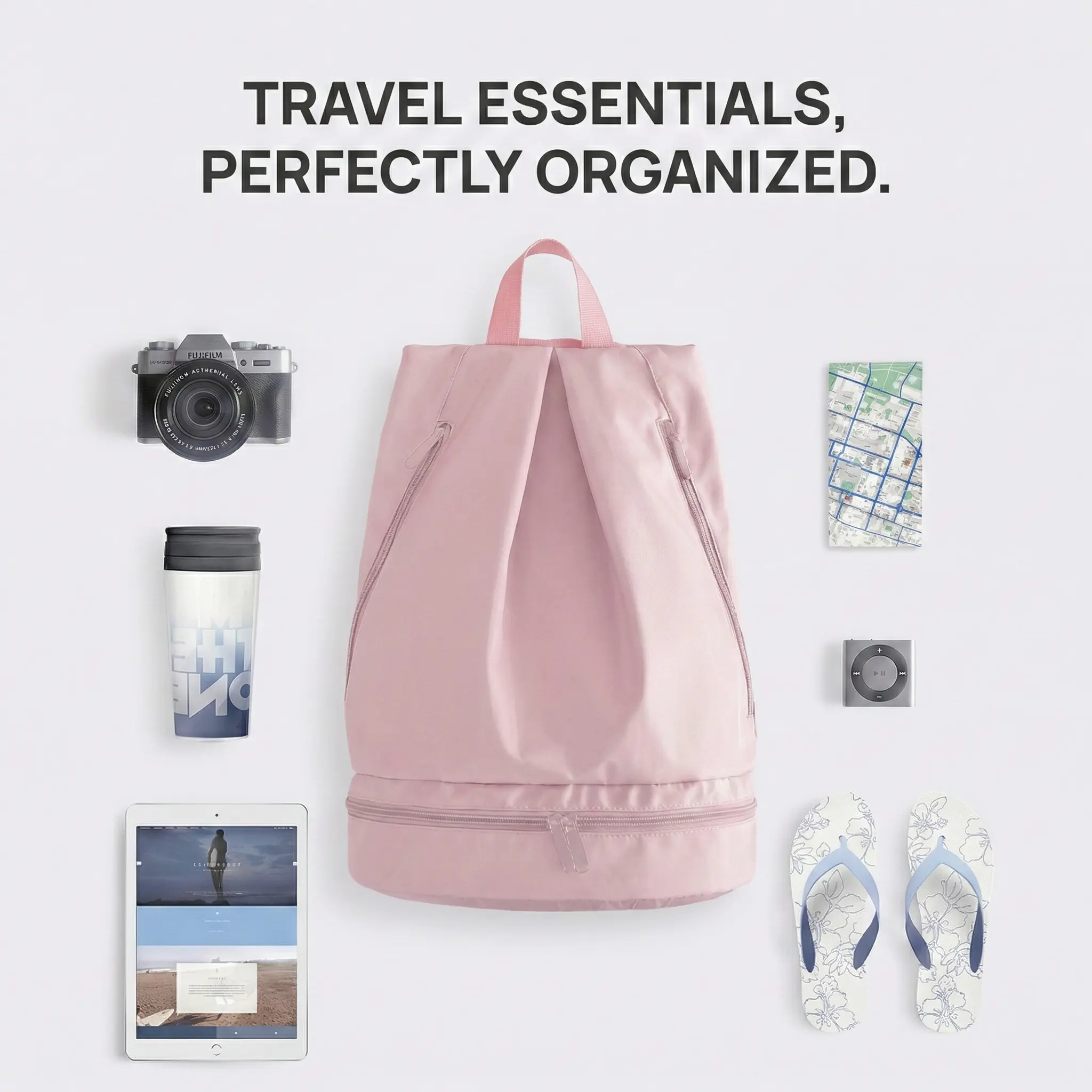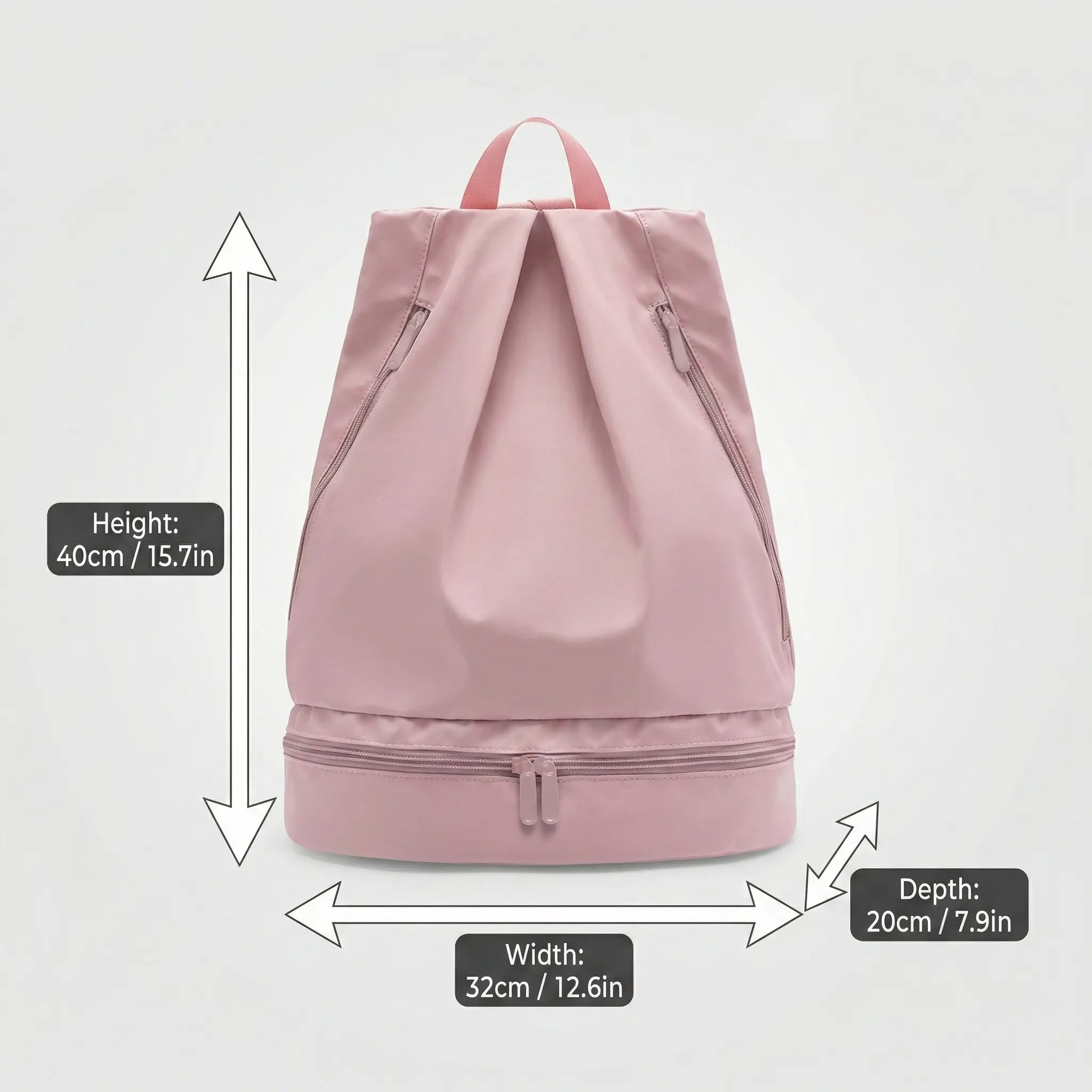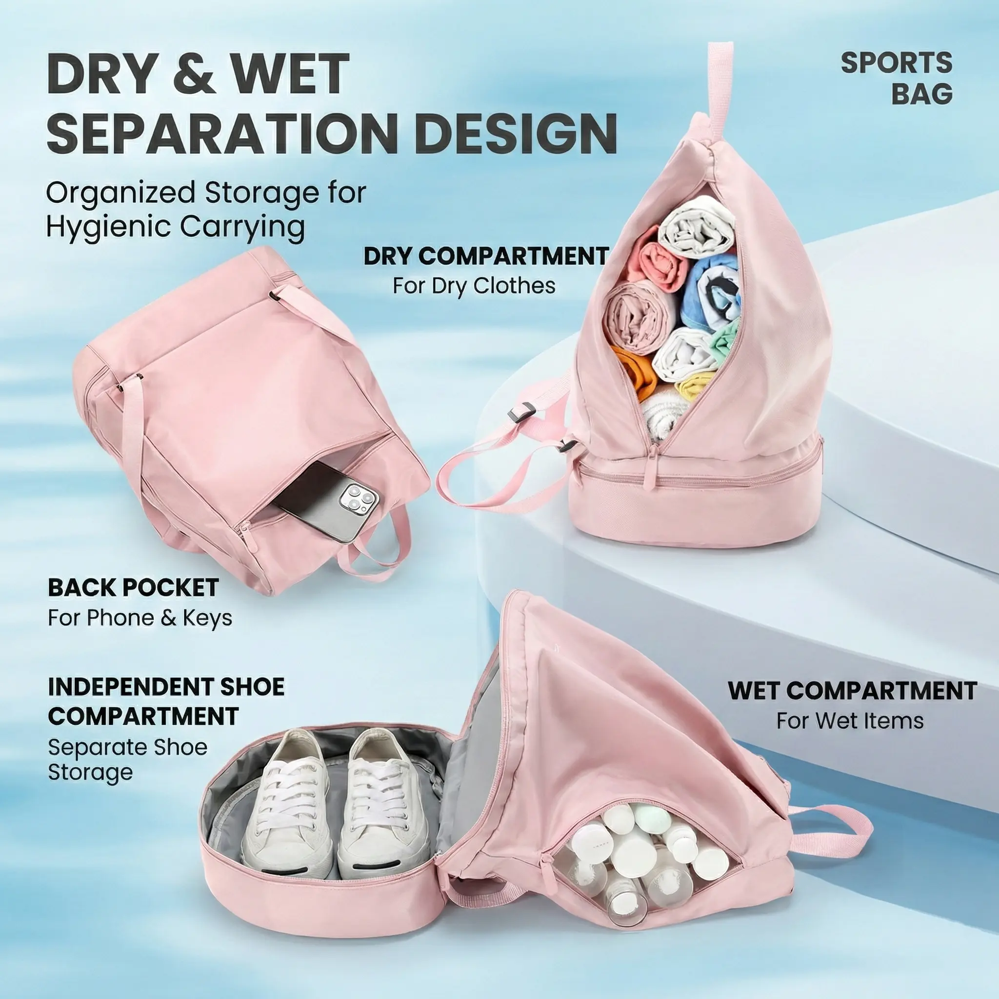 The wet and dry separation design allows the wet dry backpack to store wet clothes after swimming, and it also features an adjustable shoulder strap design.