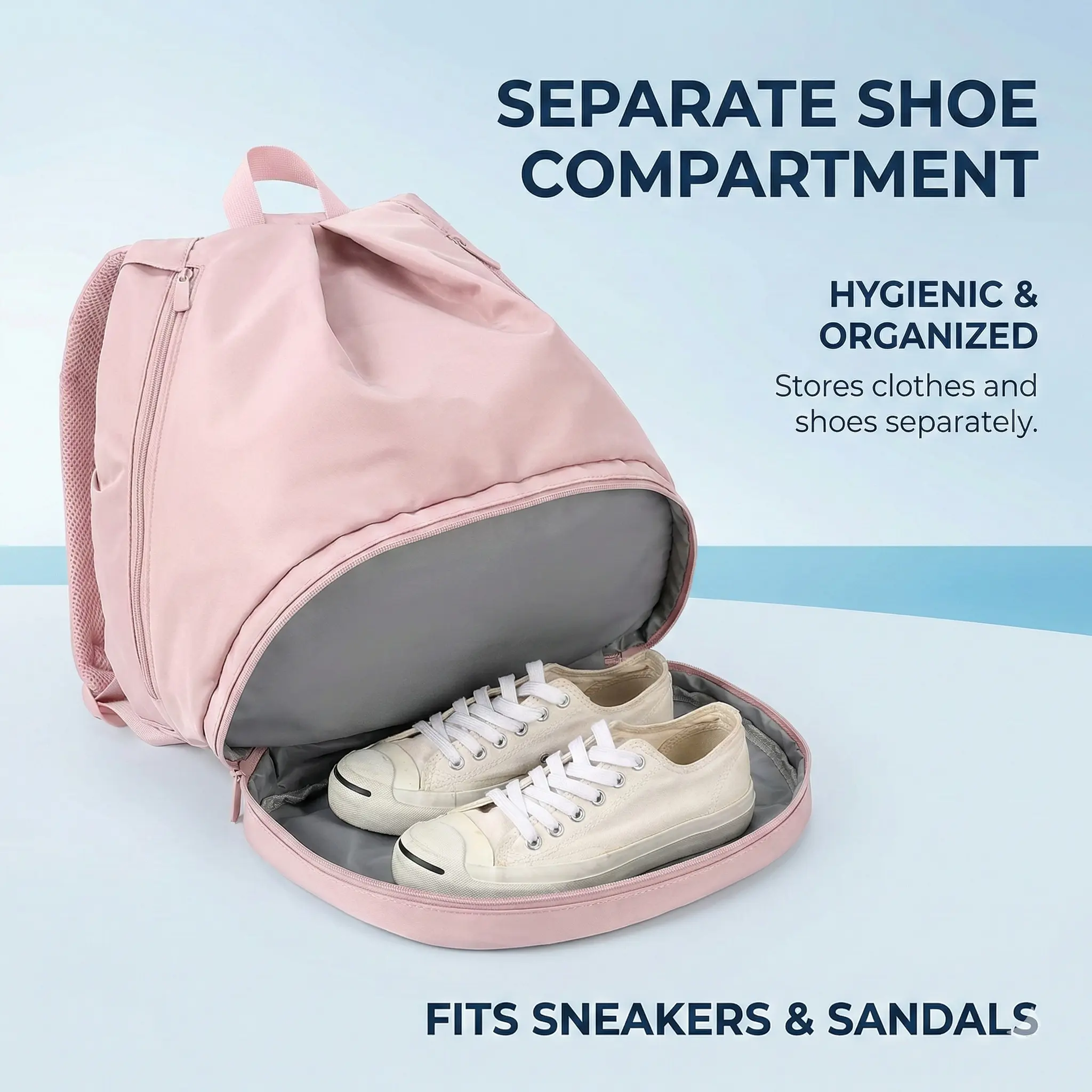 Perfect for swimming and outdoor activities on the beach, this swimming backpack with a shoe compartment is suitable for putting skates and slippers.
