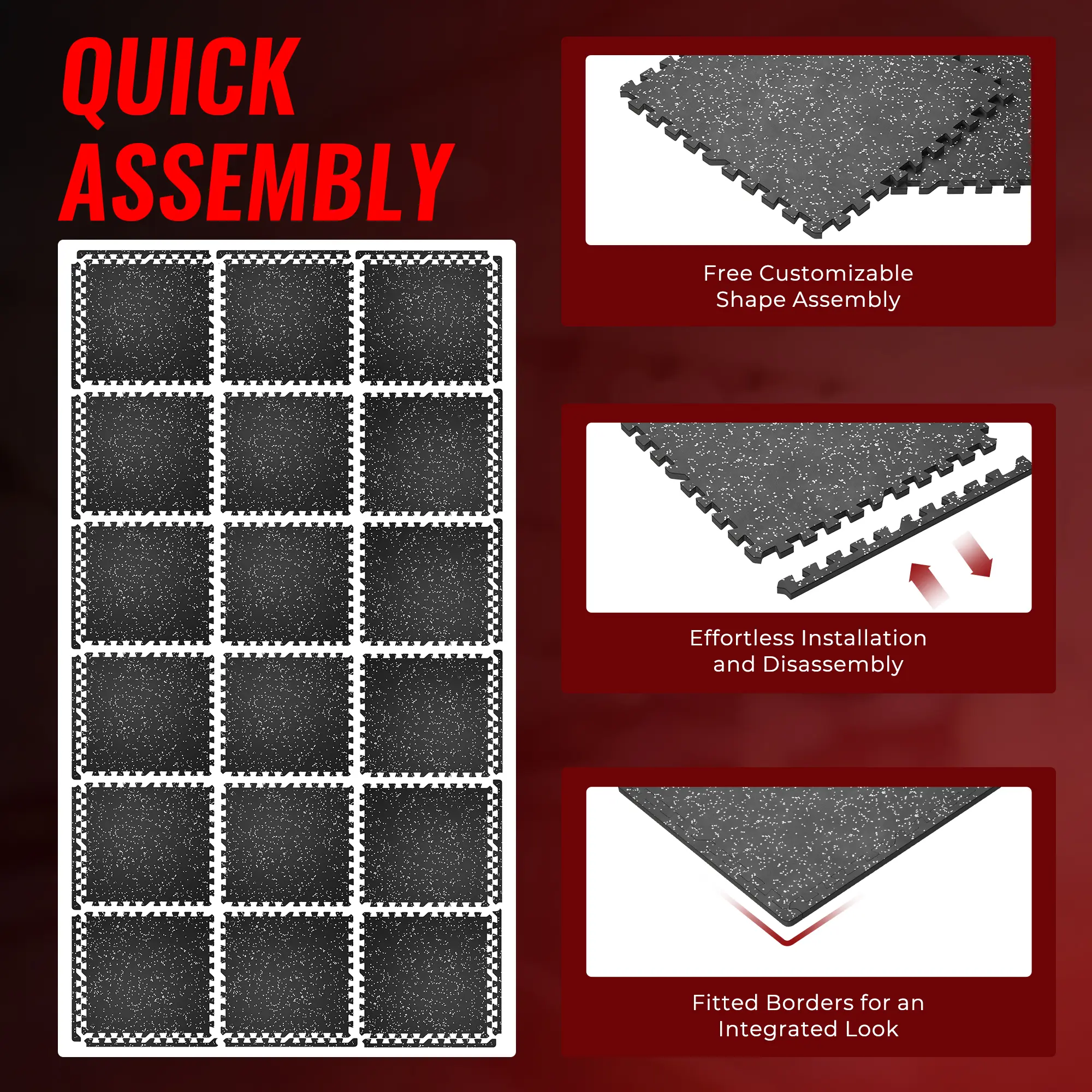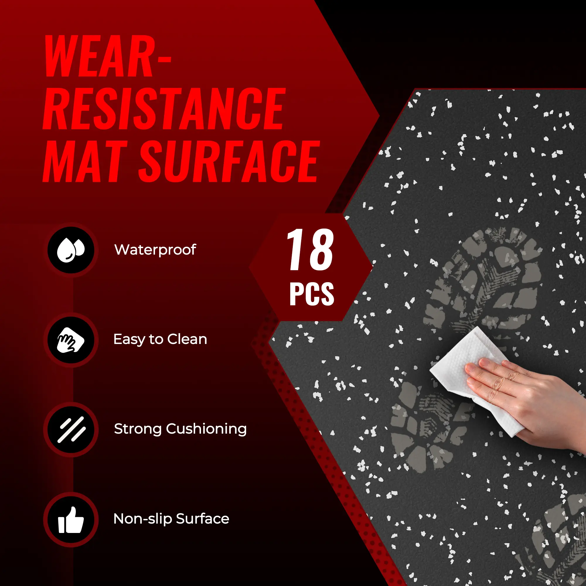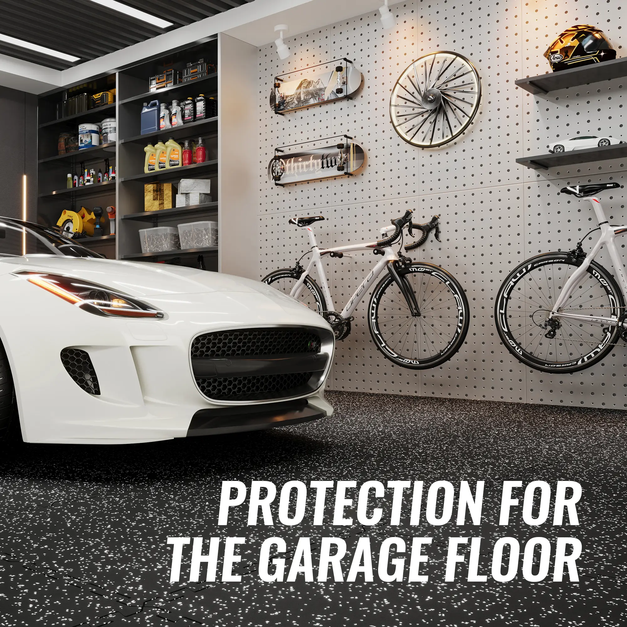 ¡ăAll Places Usableă18 tiles, each with a thickness of 0.79 inch and a size of 24in x 24in, covers 72 Sq Ft. You can place this flooring mat wherever you need it! It's suitable for a garage, gym, family fitness room or playroom.