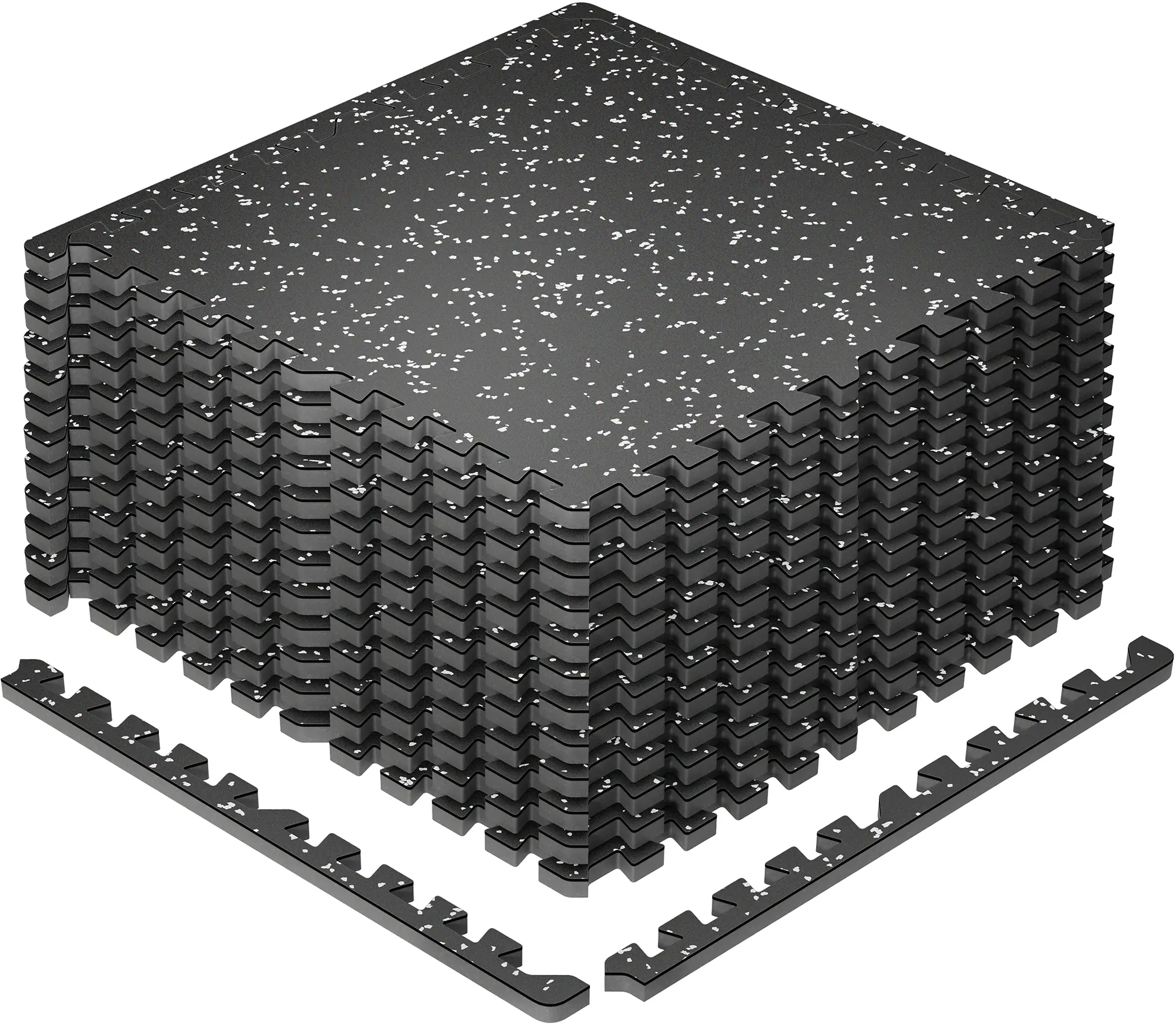 ¡ă0.79ââ Thicken Floor MatsăUpgrade to 0.79'' thickness! More durable and tougher. A high-density EVA foam base combined with a sturdy EPDM rubber top. This construction can support heavy exercise equipment, ensuring it wonât tear easily due to weight or vigorous movements, guaranteeing long-lasting durability. SUPERJARE