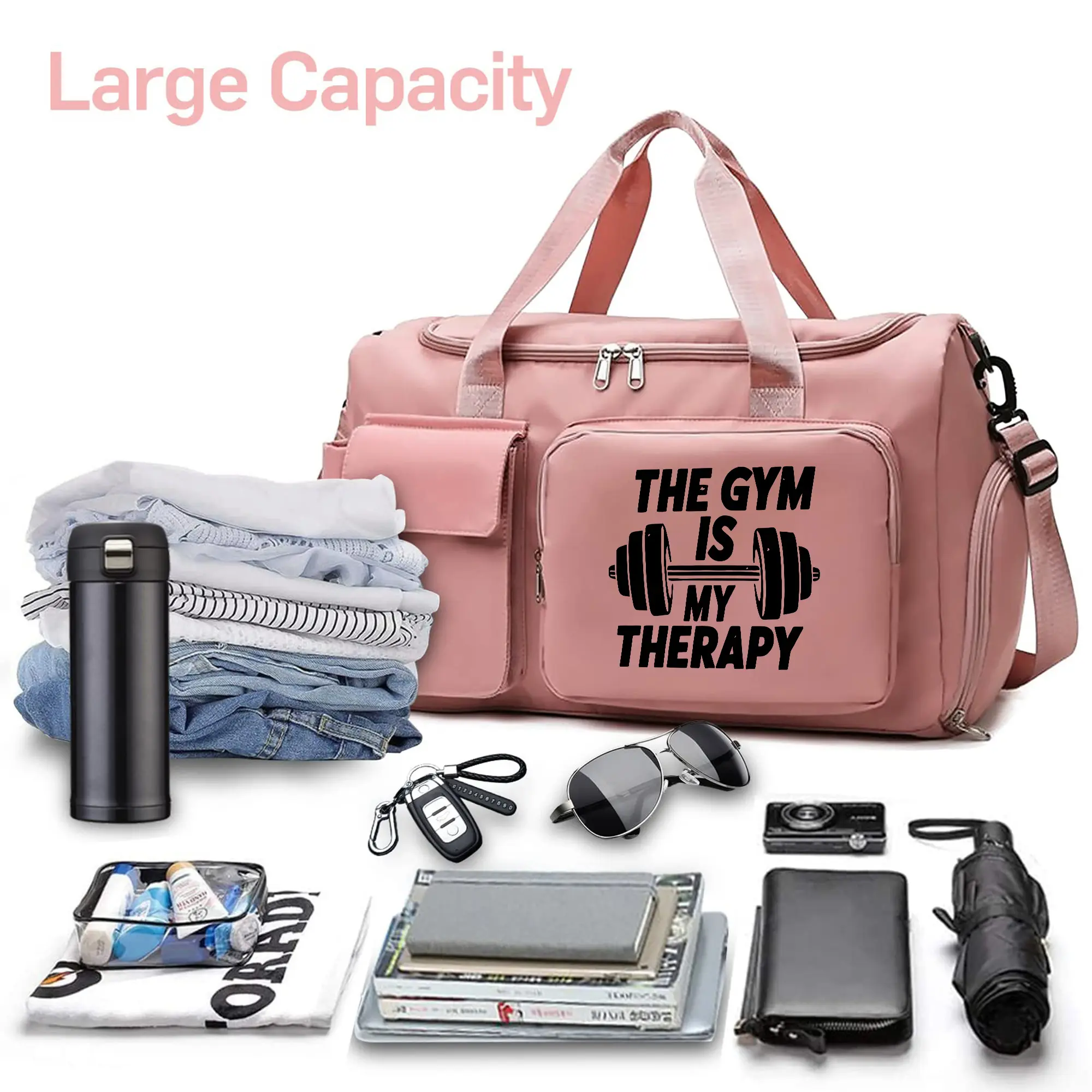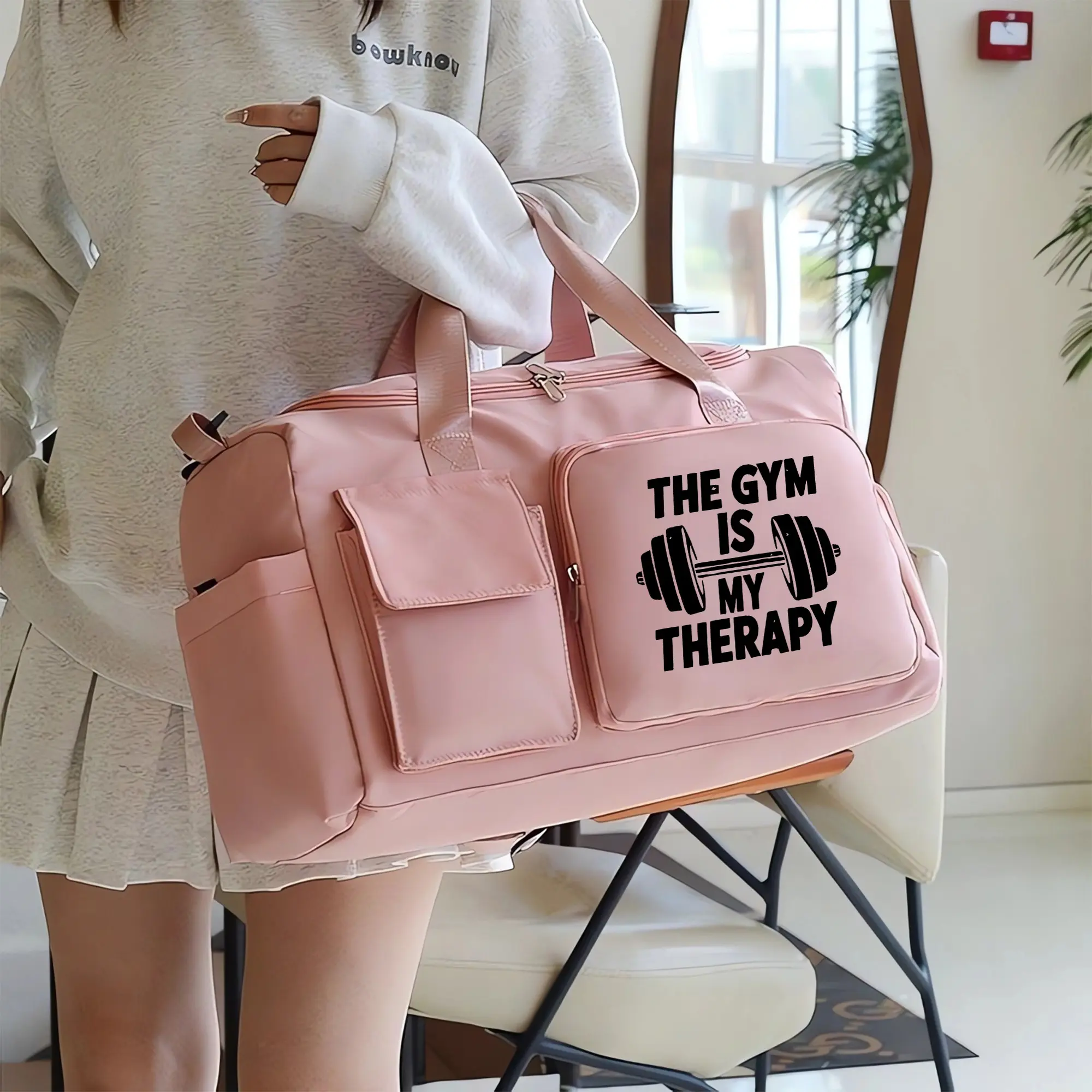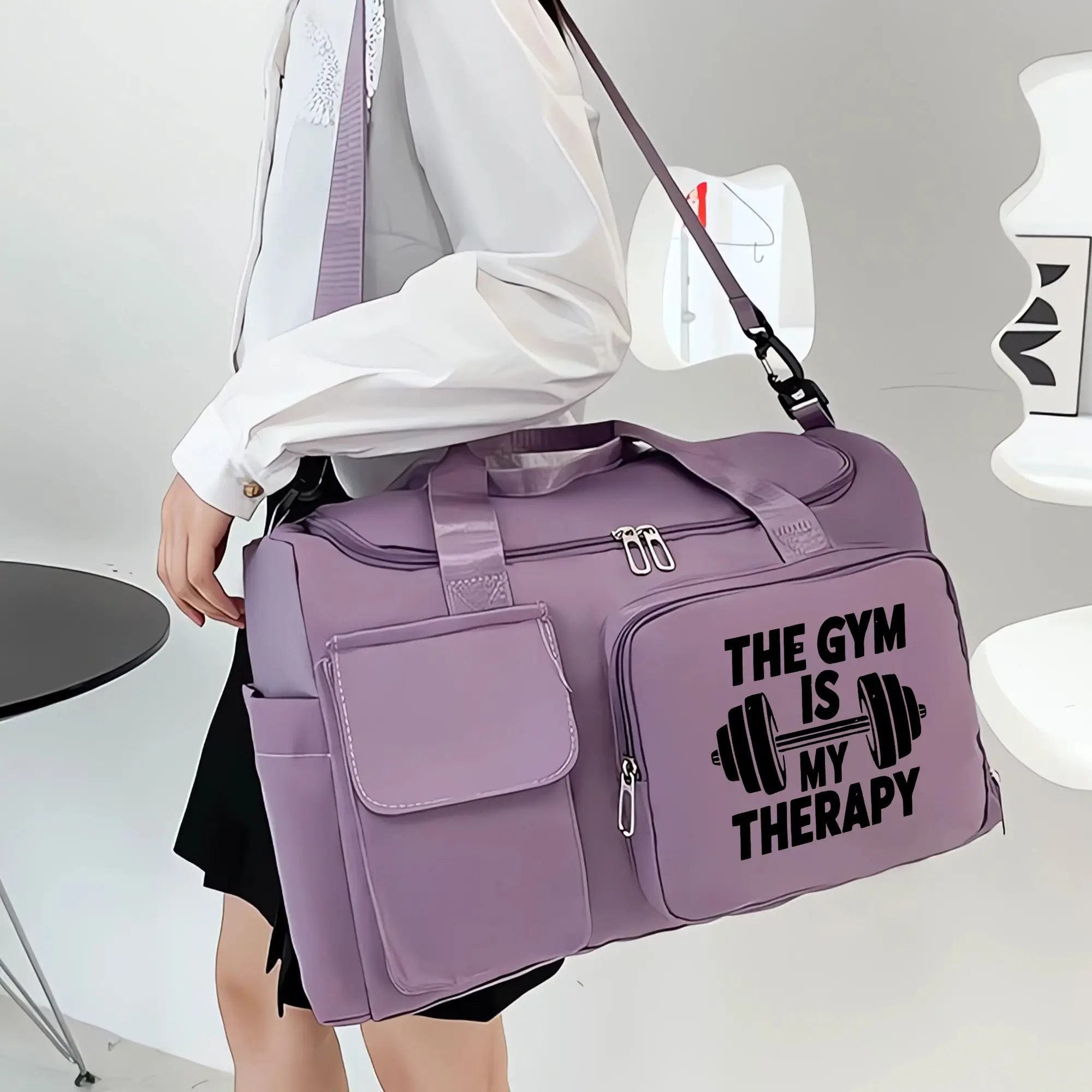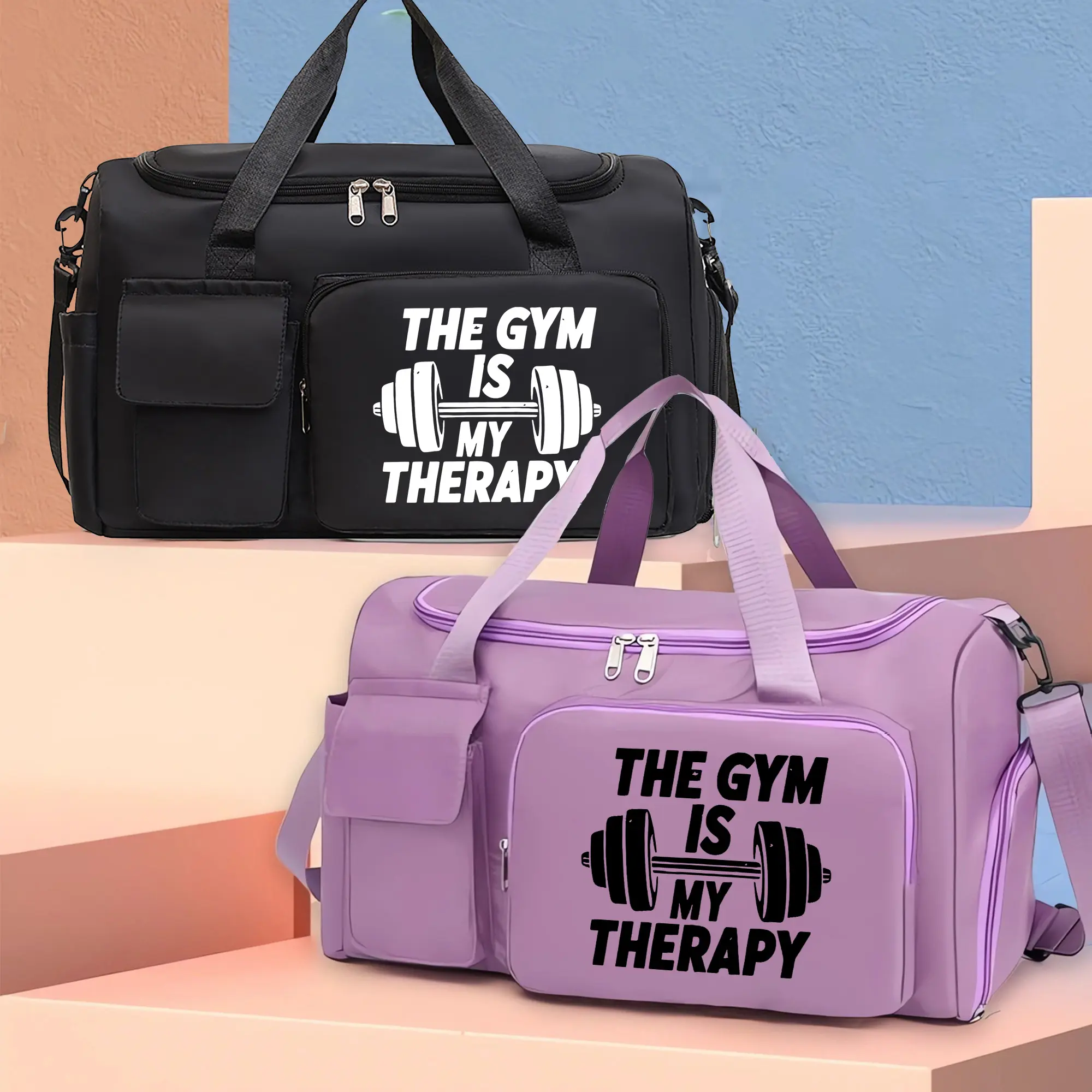 GYM patterned travel bag, multi-functional gym tote/backpack, large capacity casual yoga bag, lightweight, suitable for gym, exercise, and overnight travel, Casual Sports Bag, Athletic Bag