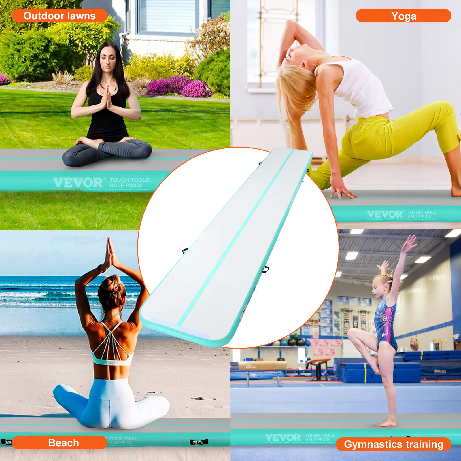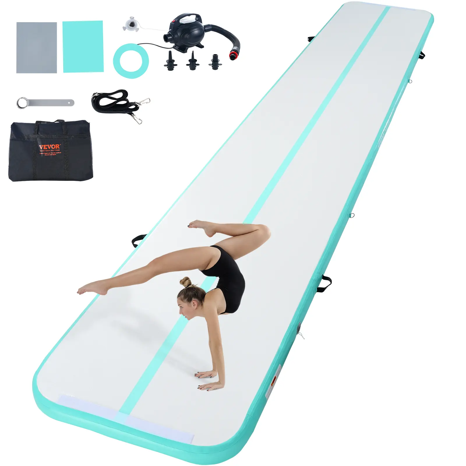 5. VEVOR Gymnastics Air Mat, 4 inch Thickness Inflatable Gymnastics Tumbling Mat, Tumble Track with Electric Pump, Training Mats for Home Use/Gym/Yoga/Cheerleading/Beach/Park/Water, 20 ft, Mint Green