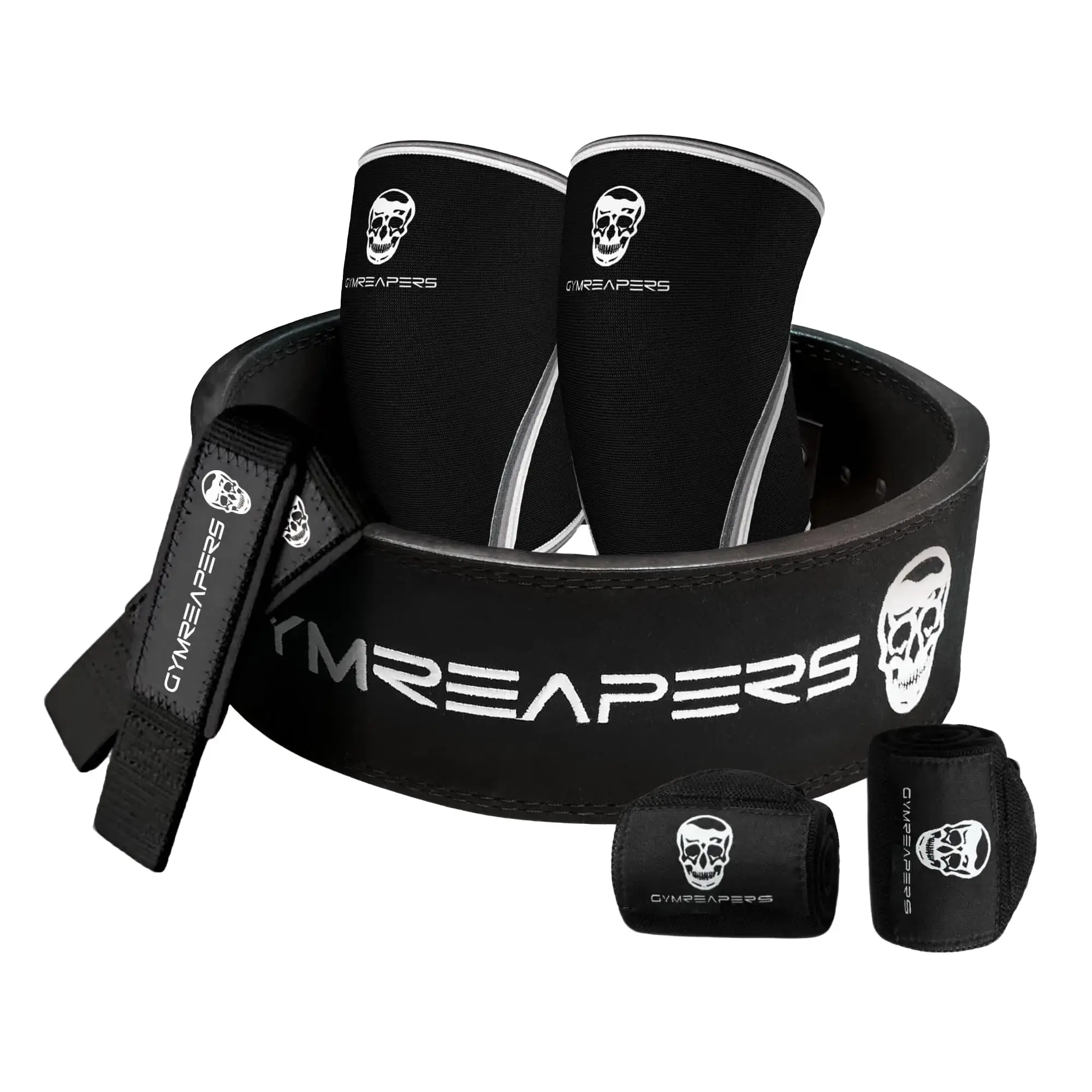 Choose your Lever Belt and Knee Sleeve sizes for a personalized fit. Wrist wraps and lifting straps are included in every kit.