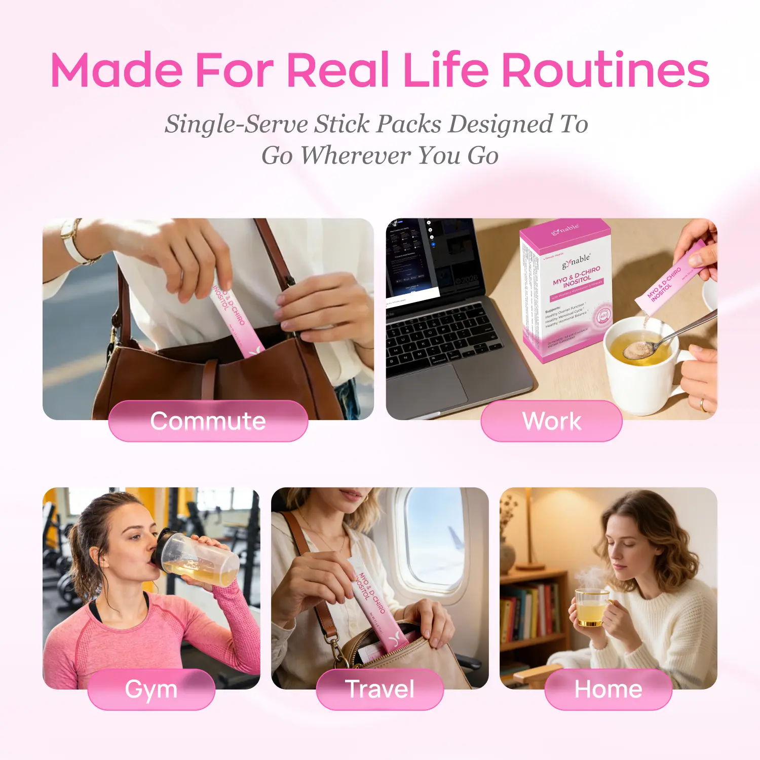 Gynable Inositol Supplement is a product that supports ovarian function, menstrual cycle, hormonal balance, and overall women's health.