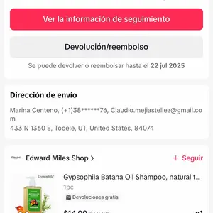 Gracias por el paquete, llegó Super bien, me encanta muchísimo este shampoo👍👏