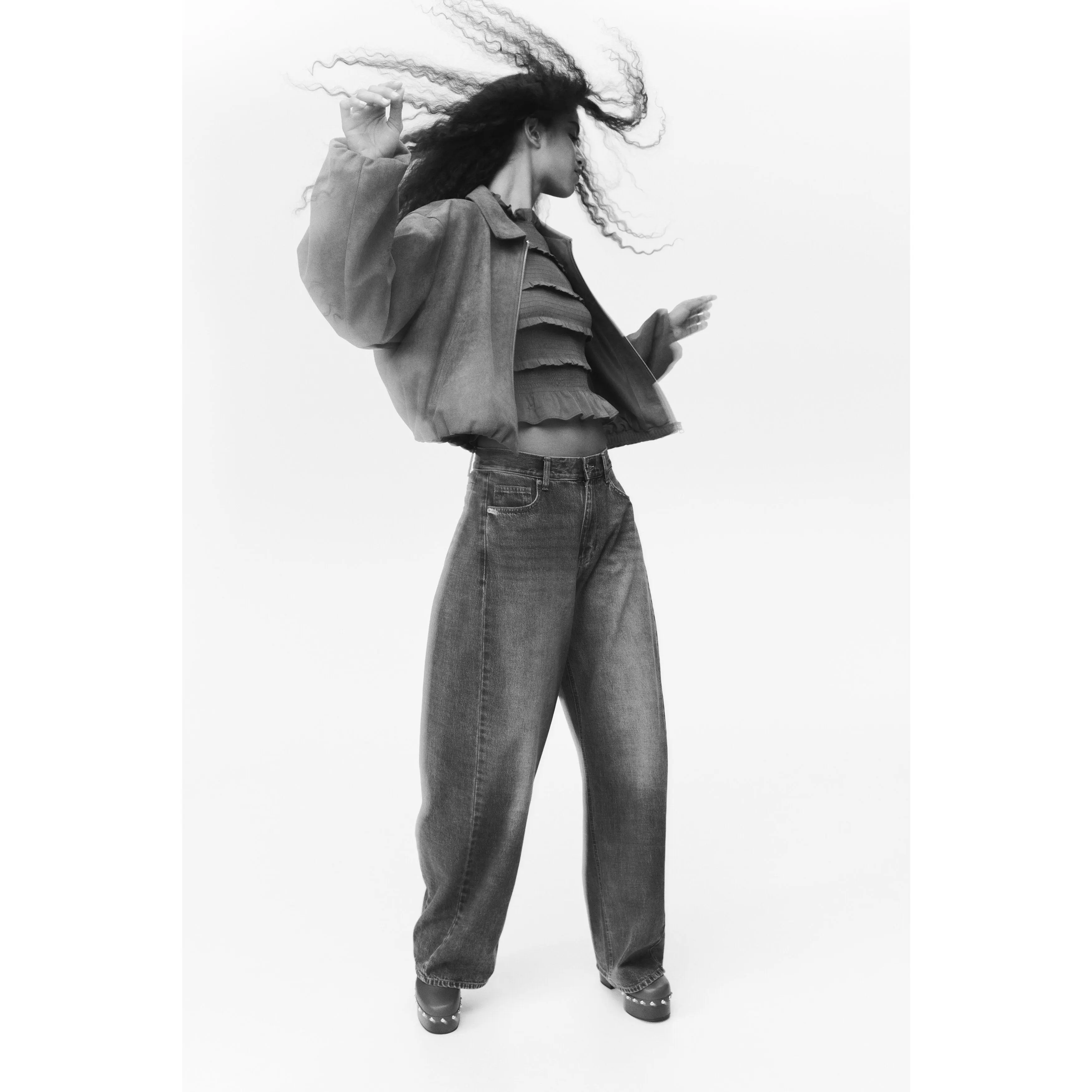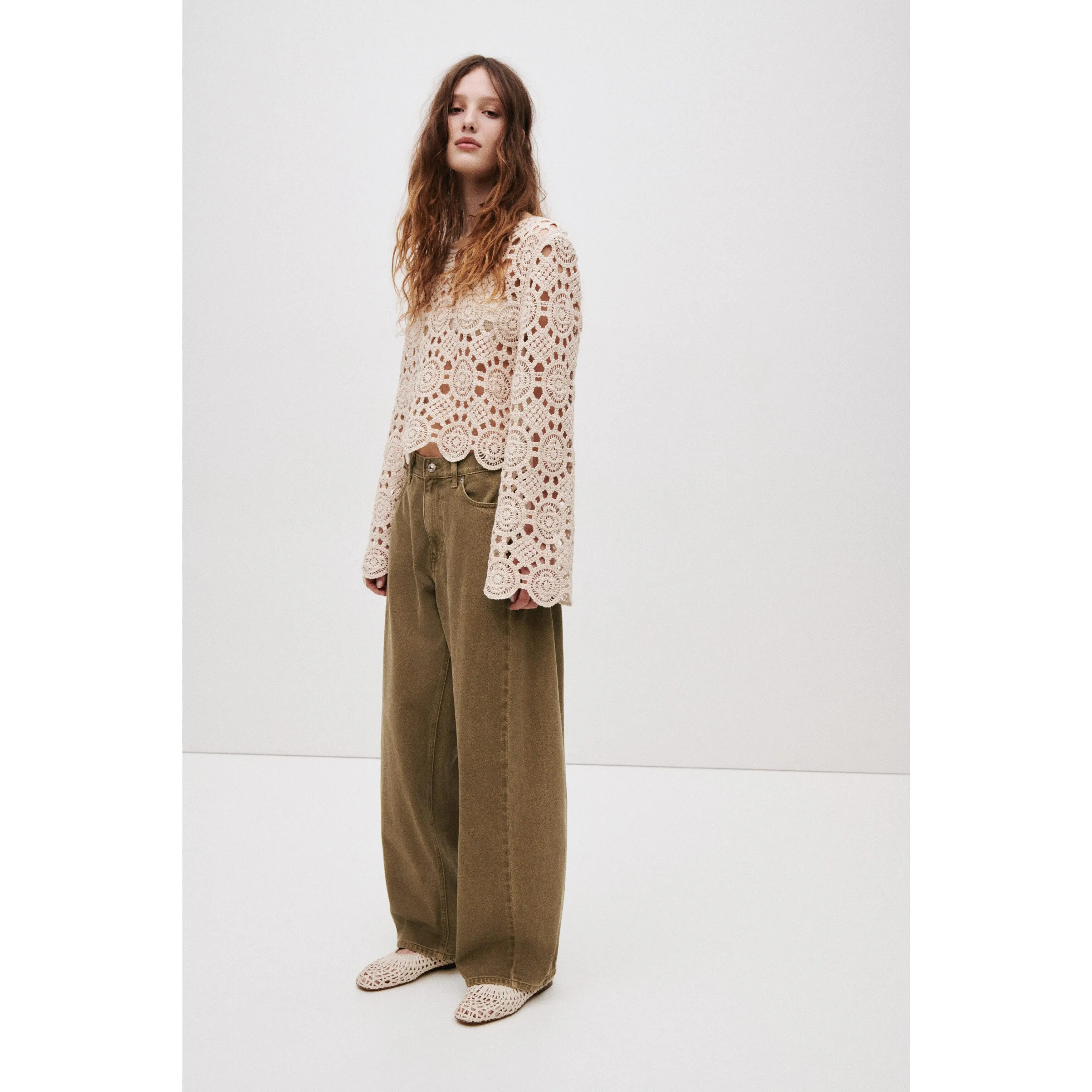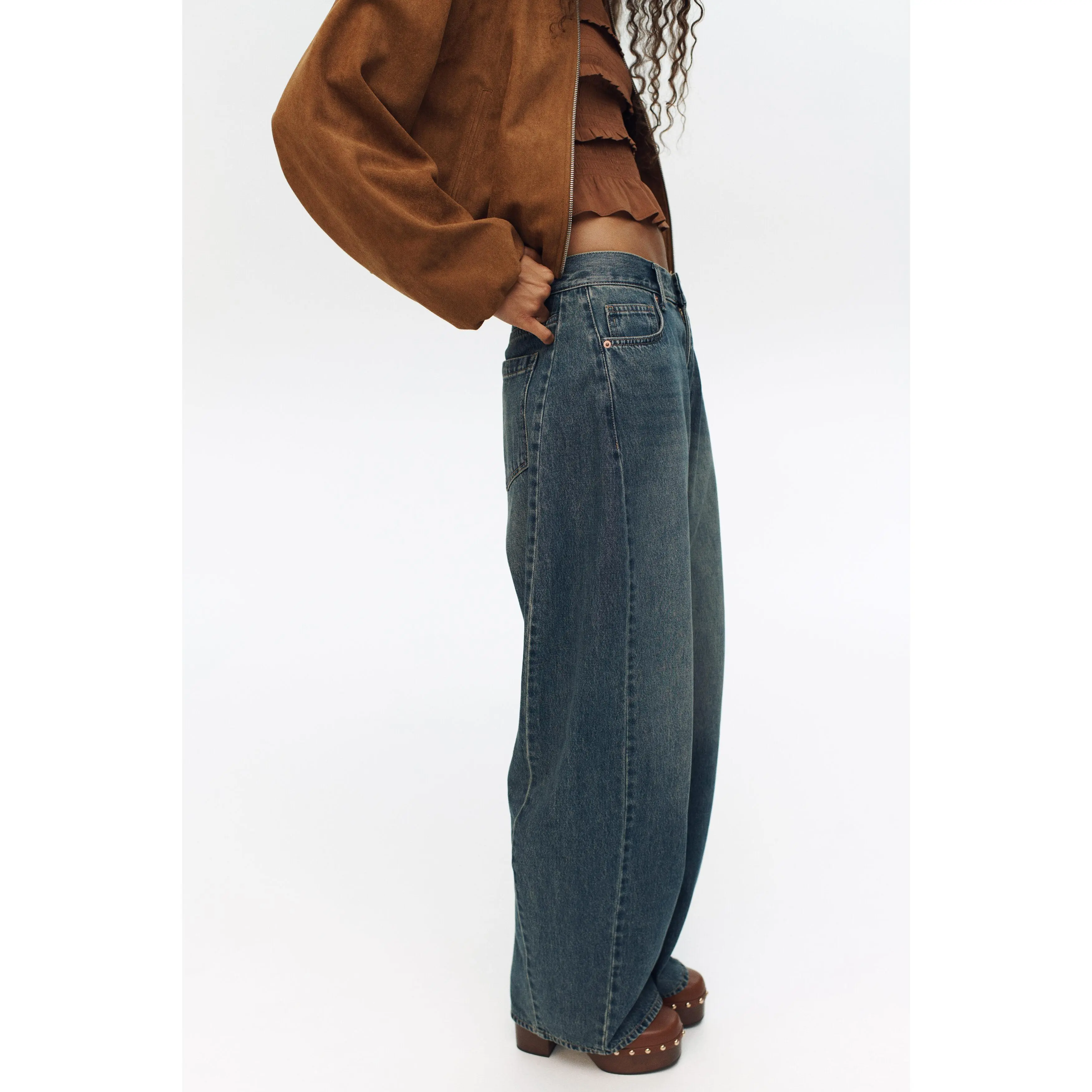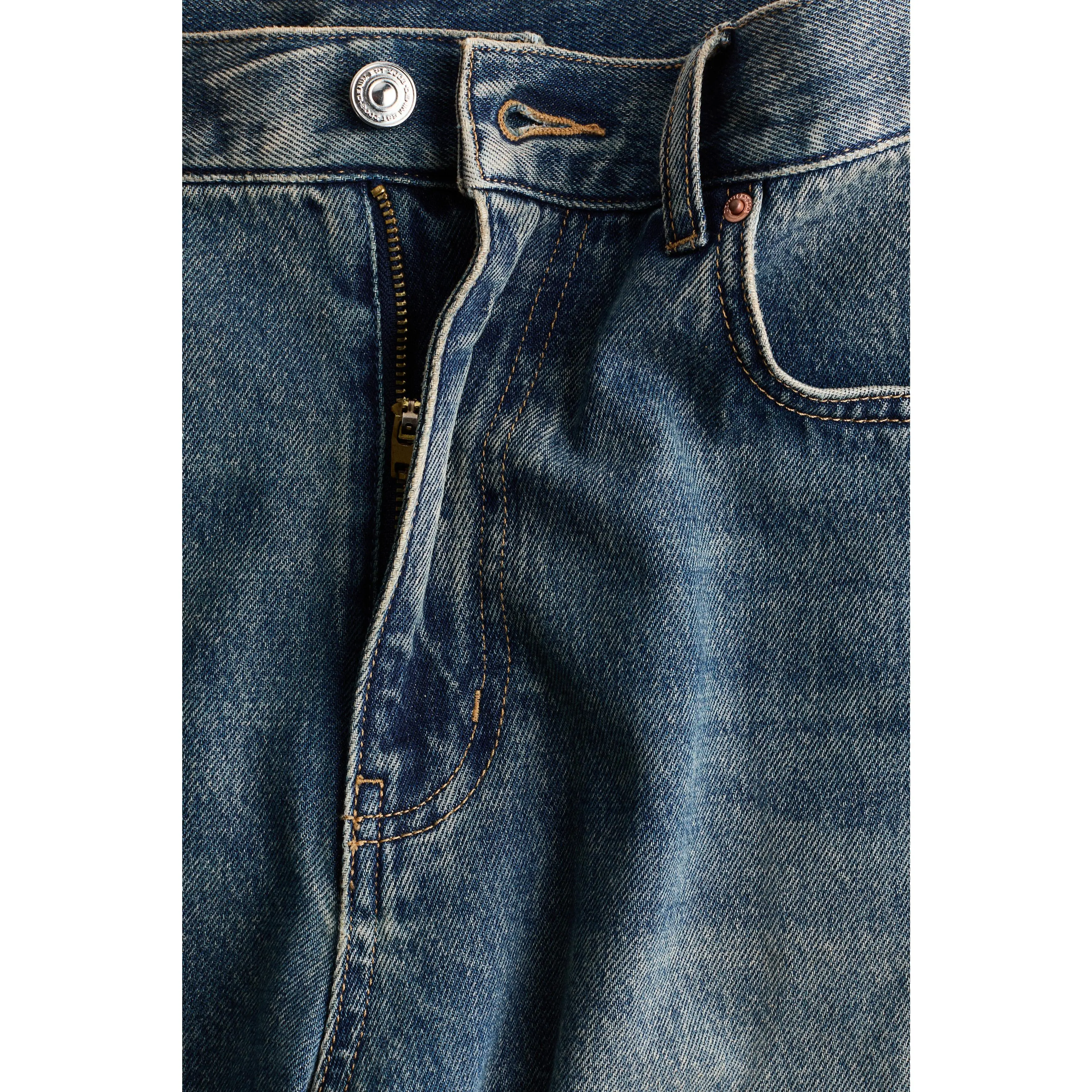 5-pocket jeans in cotton denim featuring a curved, voluminous leg with a loose fit from the hip to the thigh, that tapers to the hem. Regular waist with a zip fly and button. Regular length, designed to hit the top of the foot with little or no stacking.