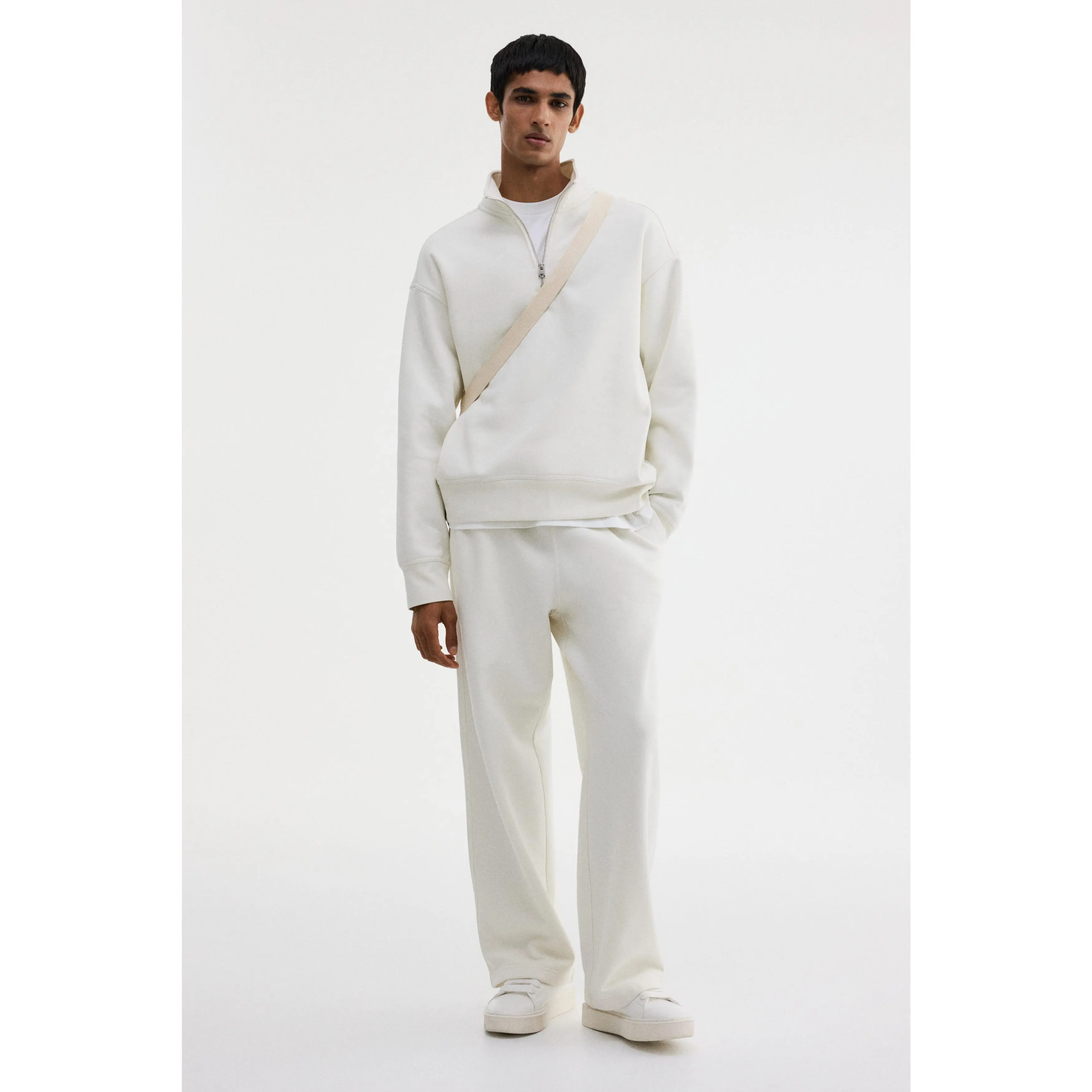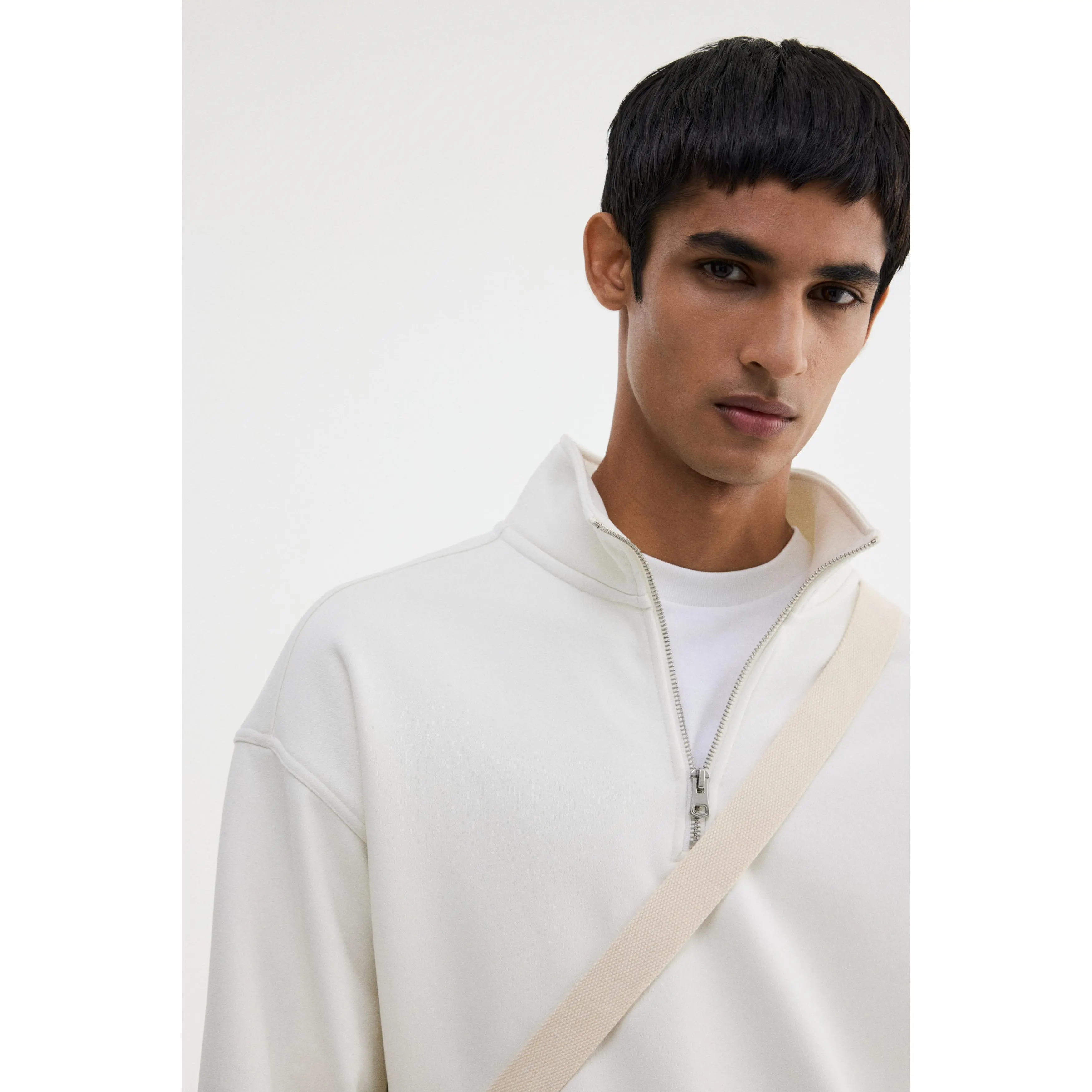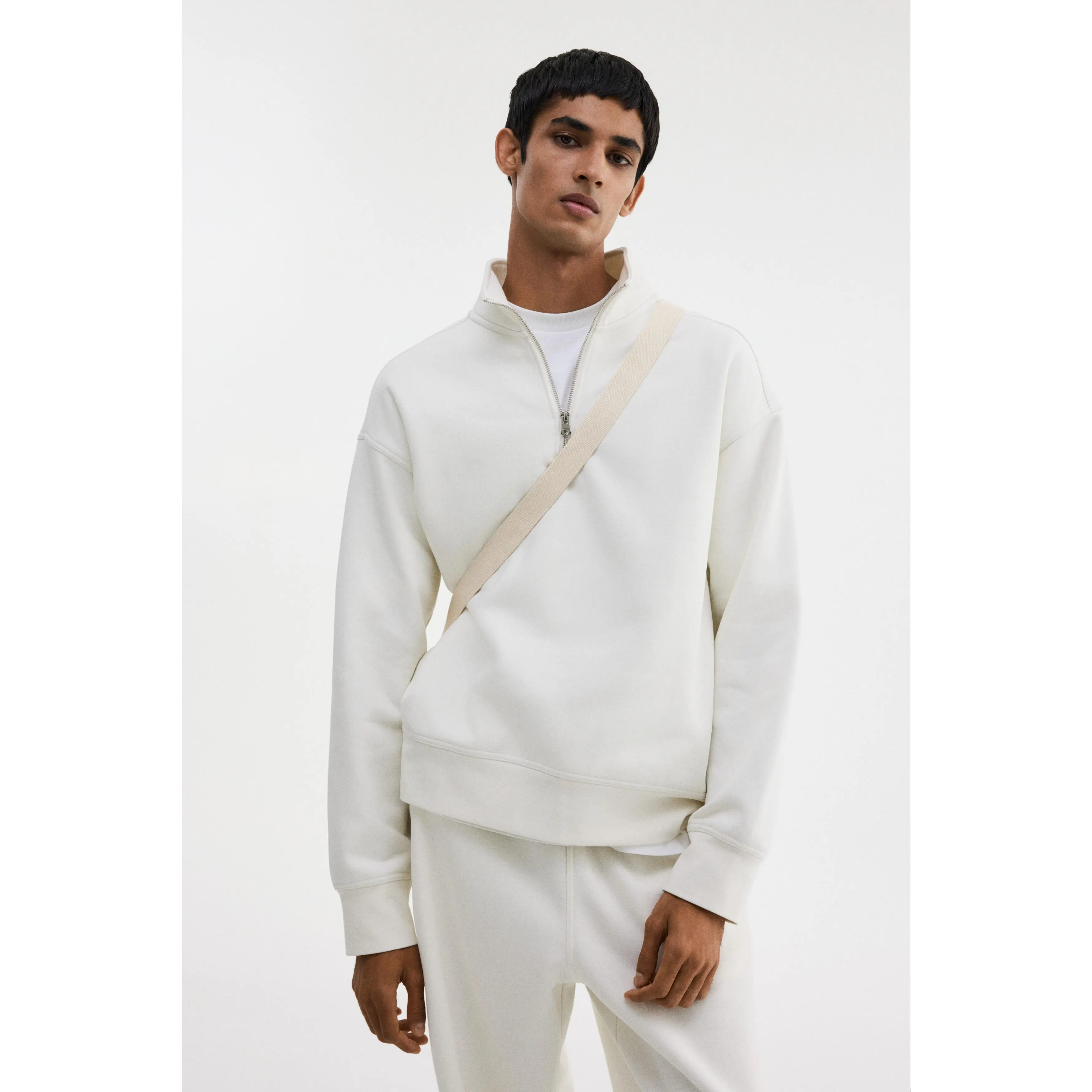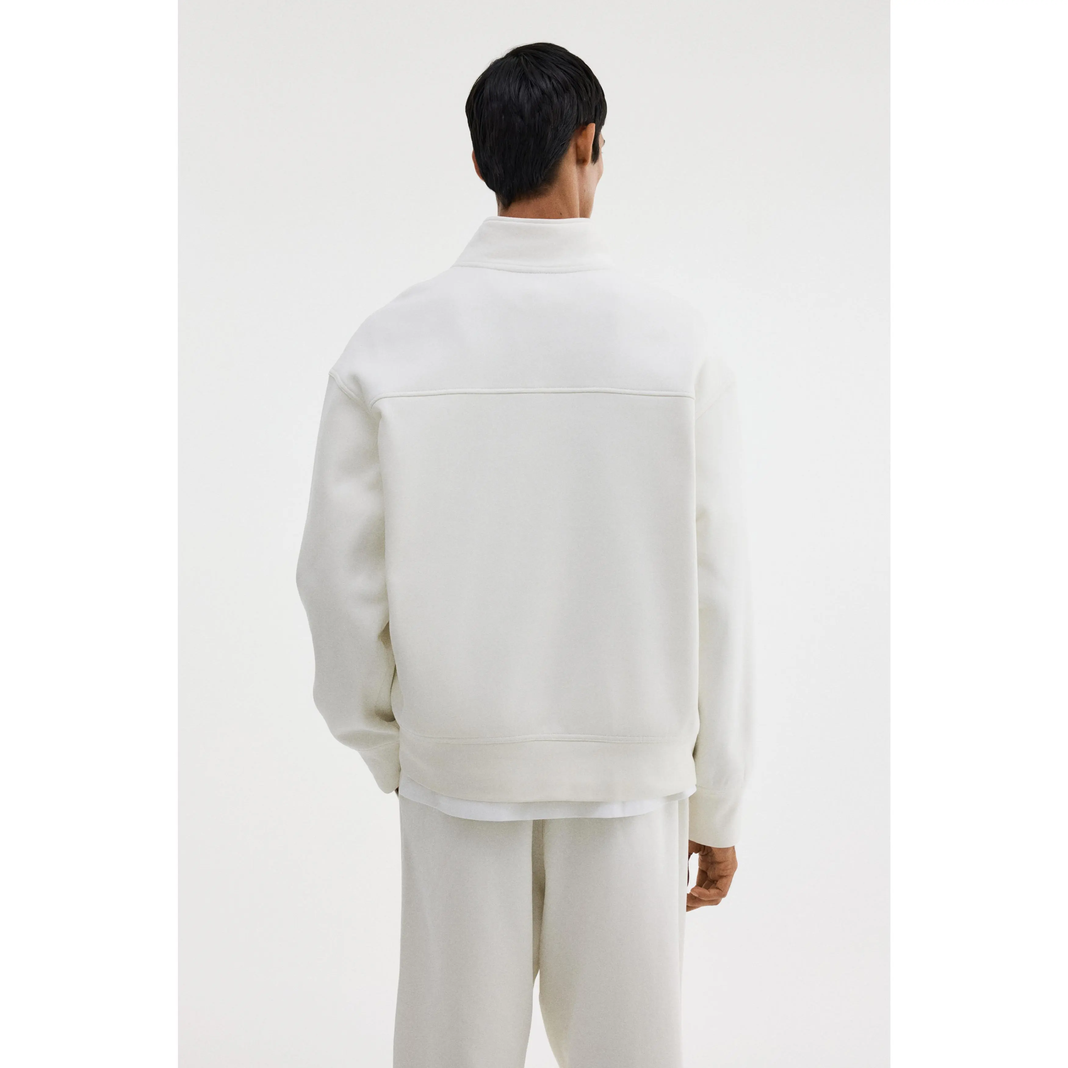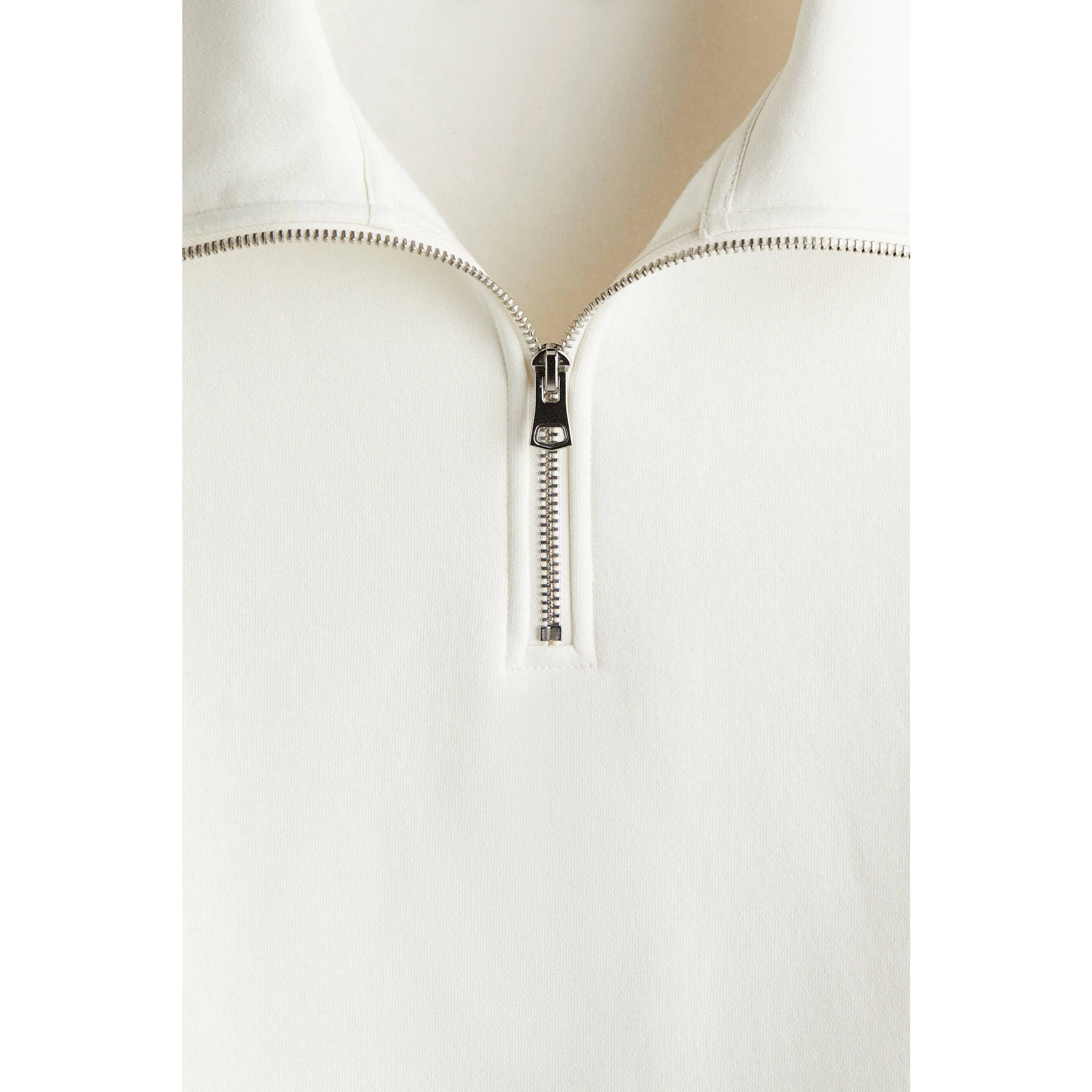 Top in heavyweight sweatshirt fabric made from a cotton blend with a soft brushed inside. Stand-up collar, zip at the top, yoke at the back, dropped shoulders, long sleeves and ribbing at the cuffs and hem. Loose fit for a generous but not oversized silhouette.