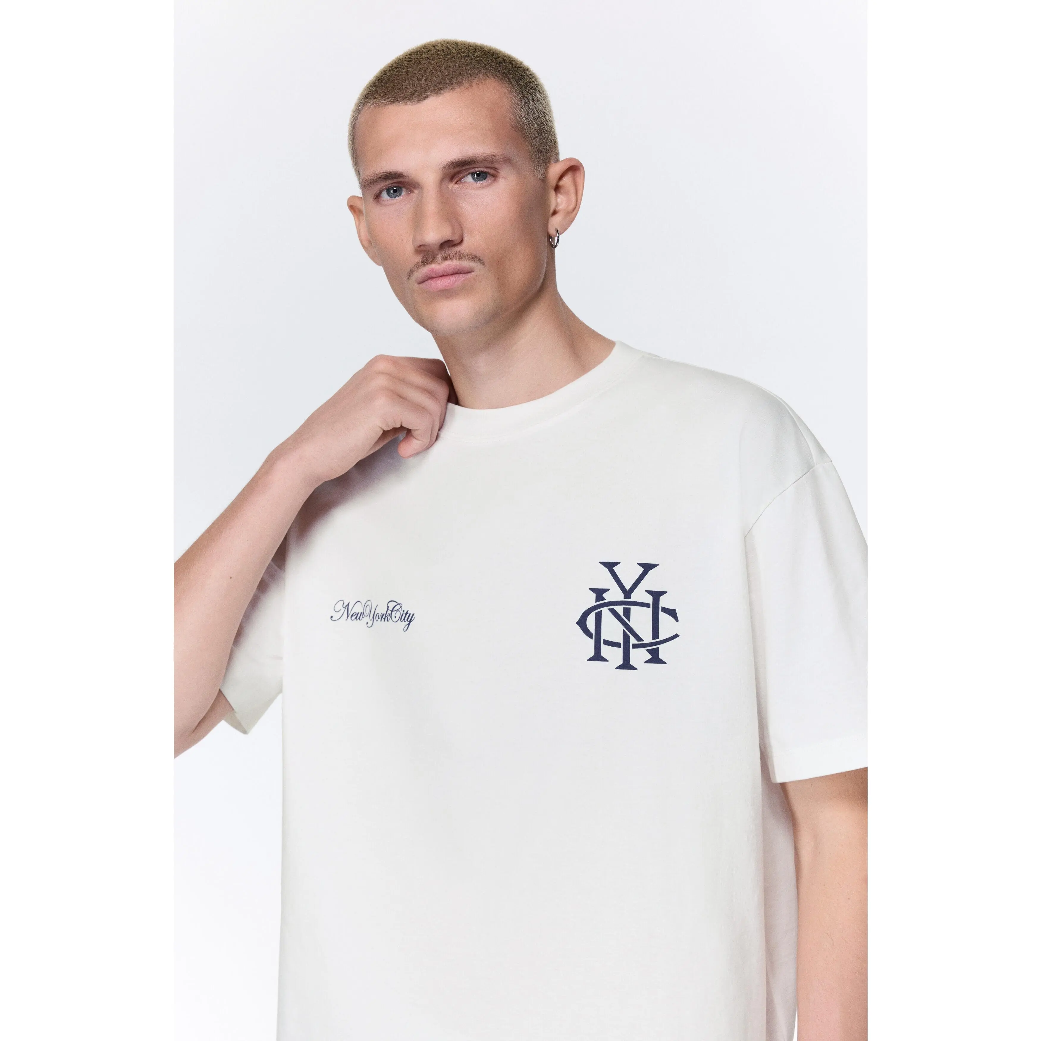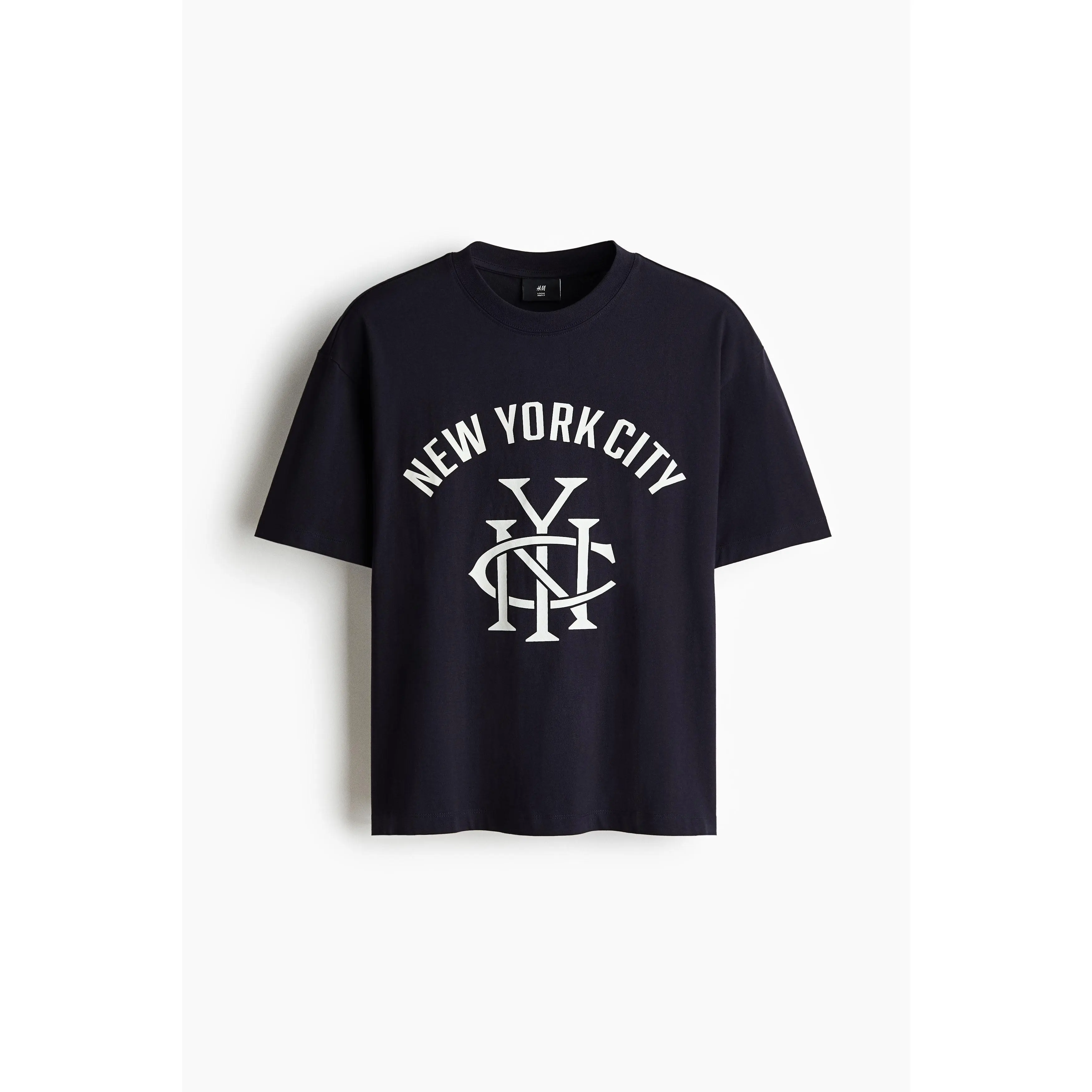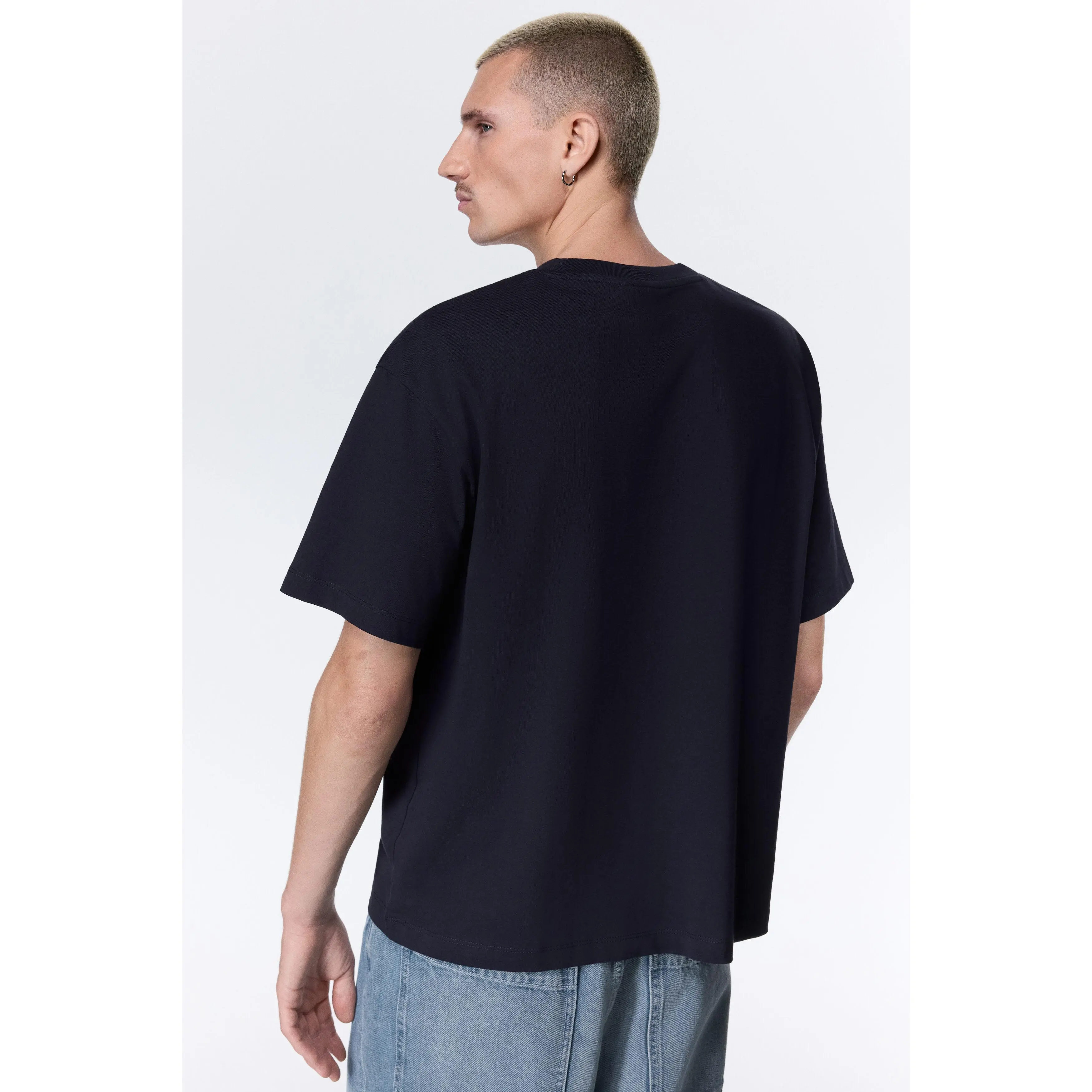 Boxy-style T-shirt in lightweight cotton jersey with print motifs, a ribbed crew neck, dropped shoulders and a straight-cut hem. Loose fit for a generous but not oversized silhouette.