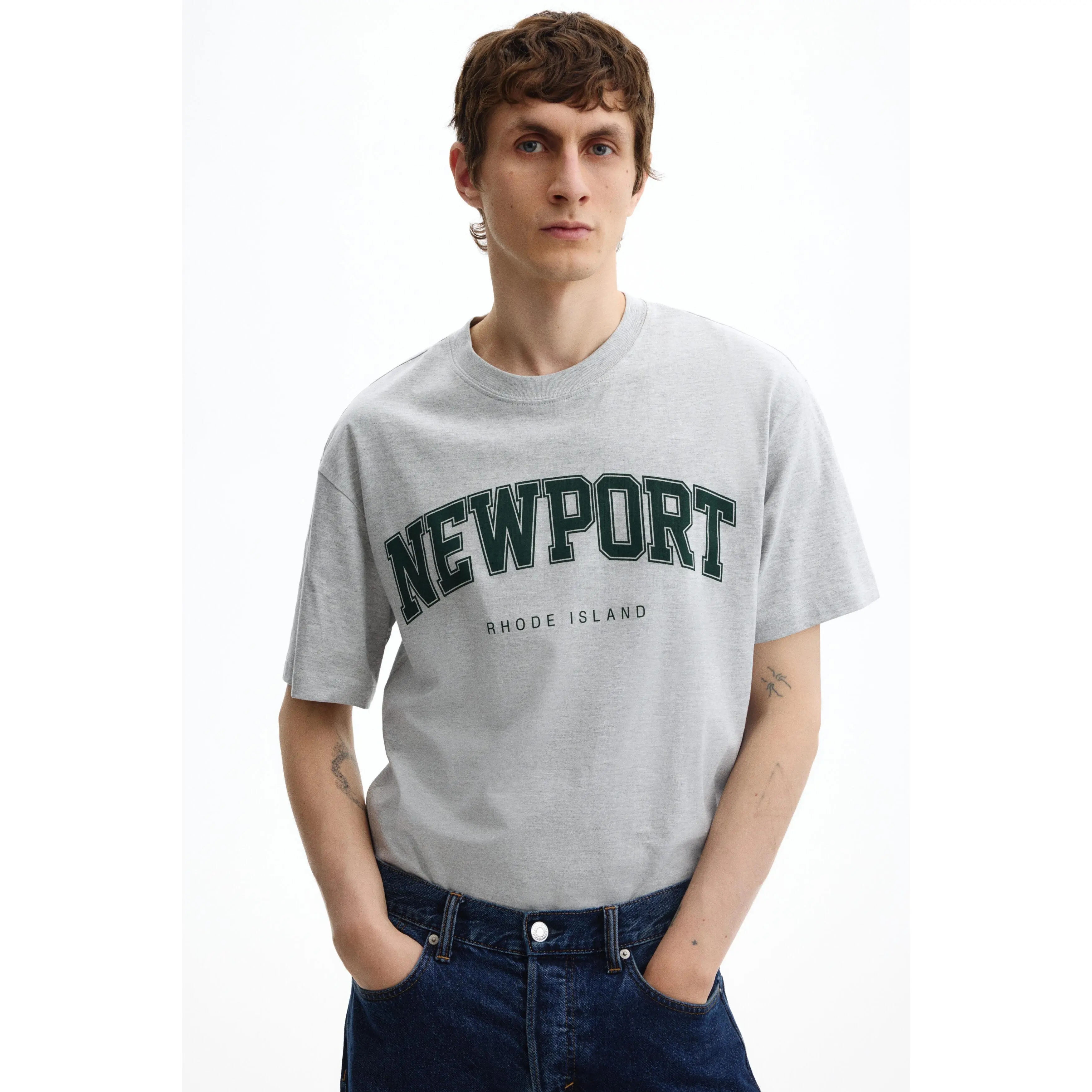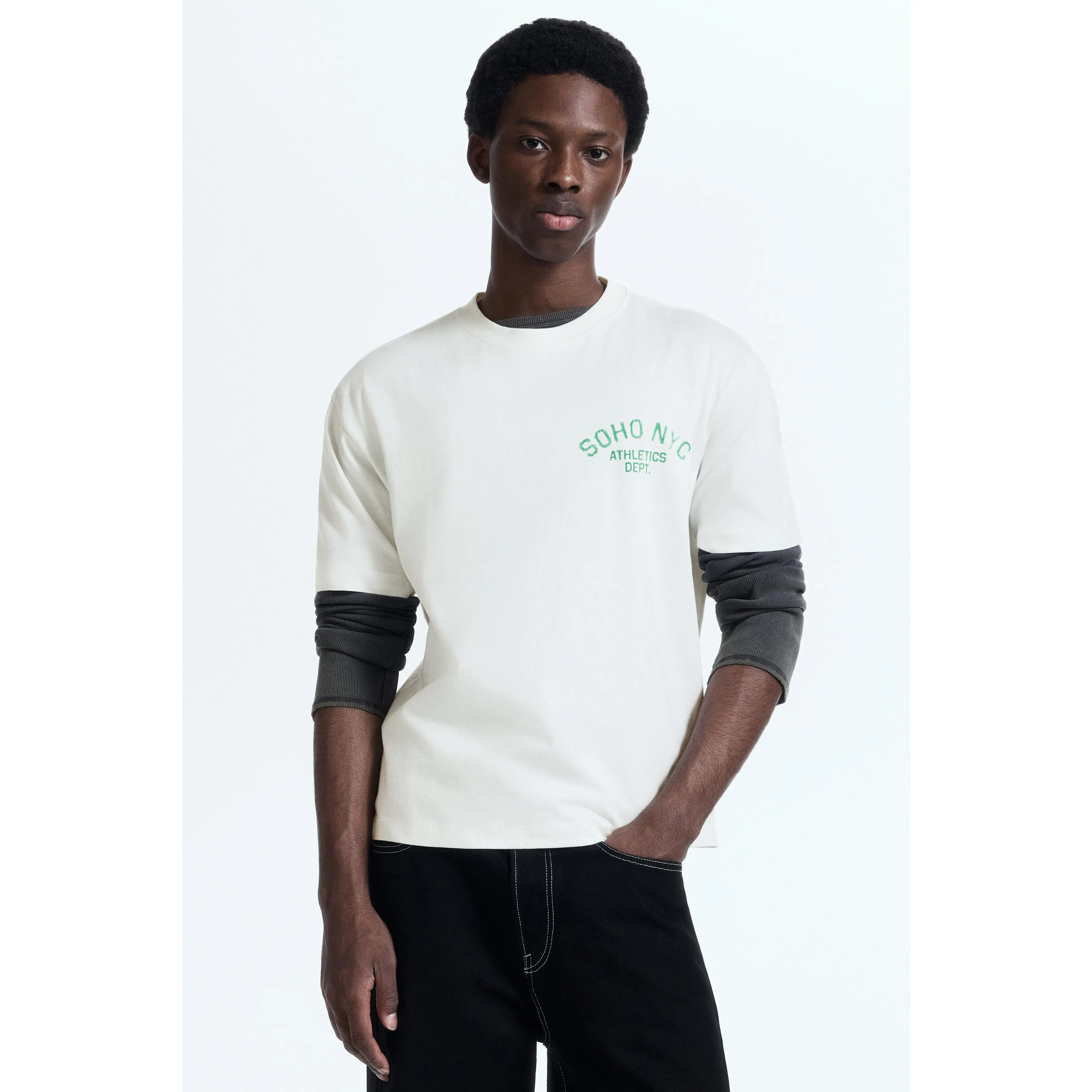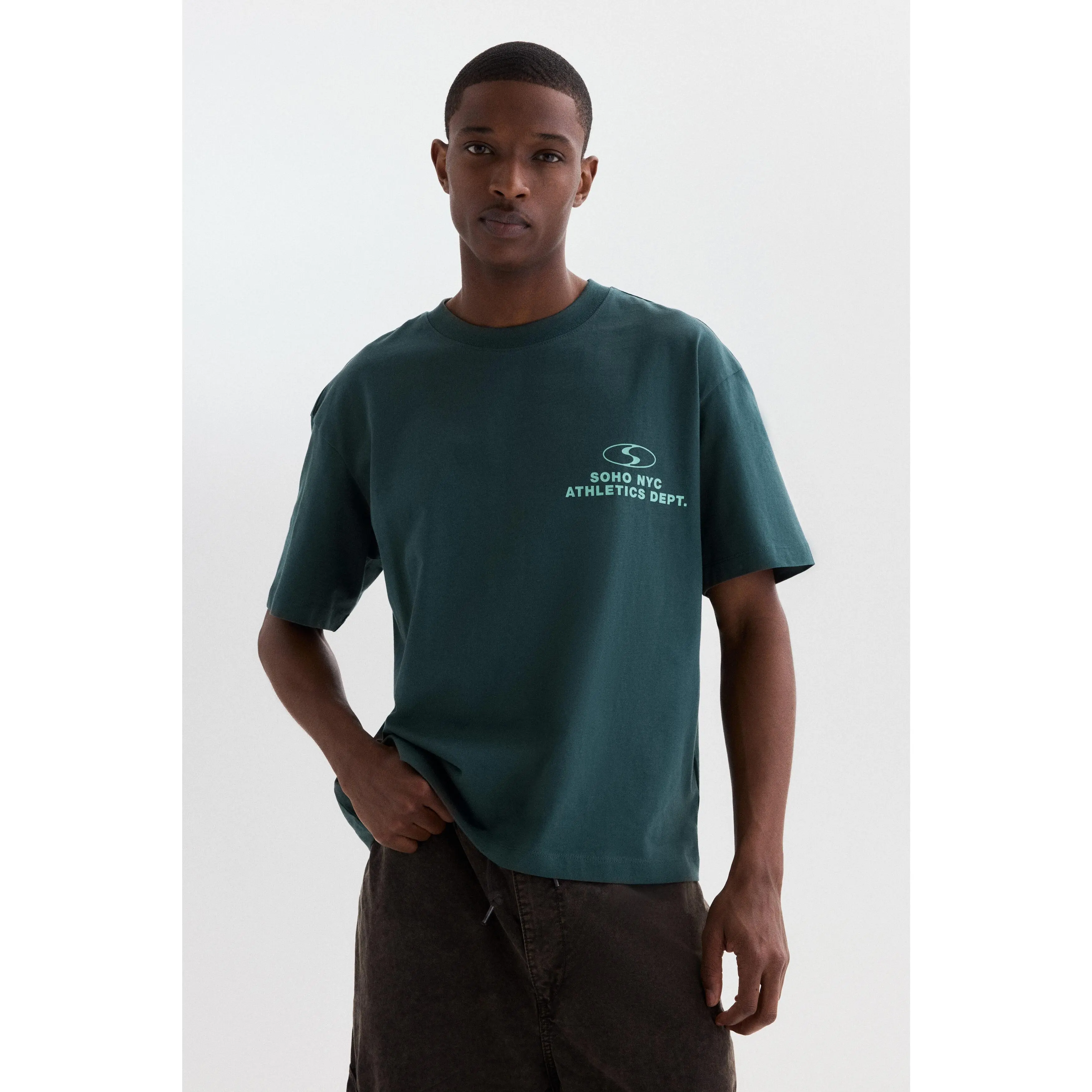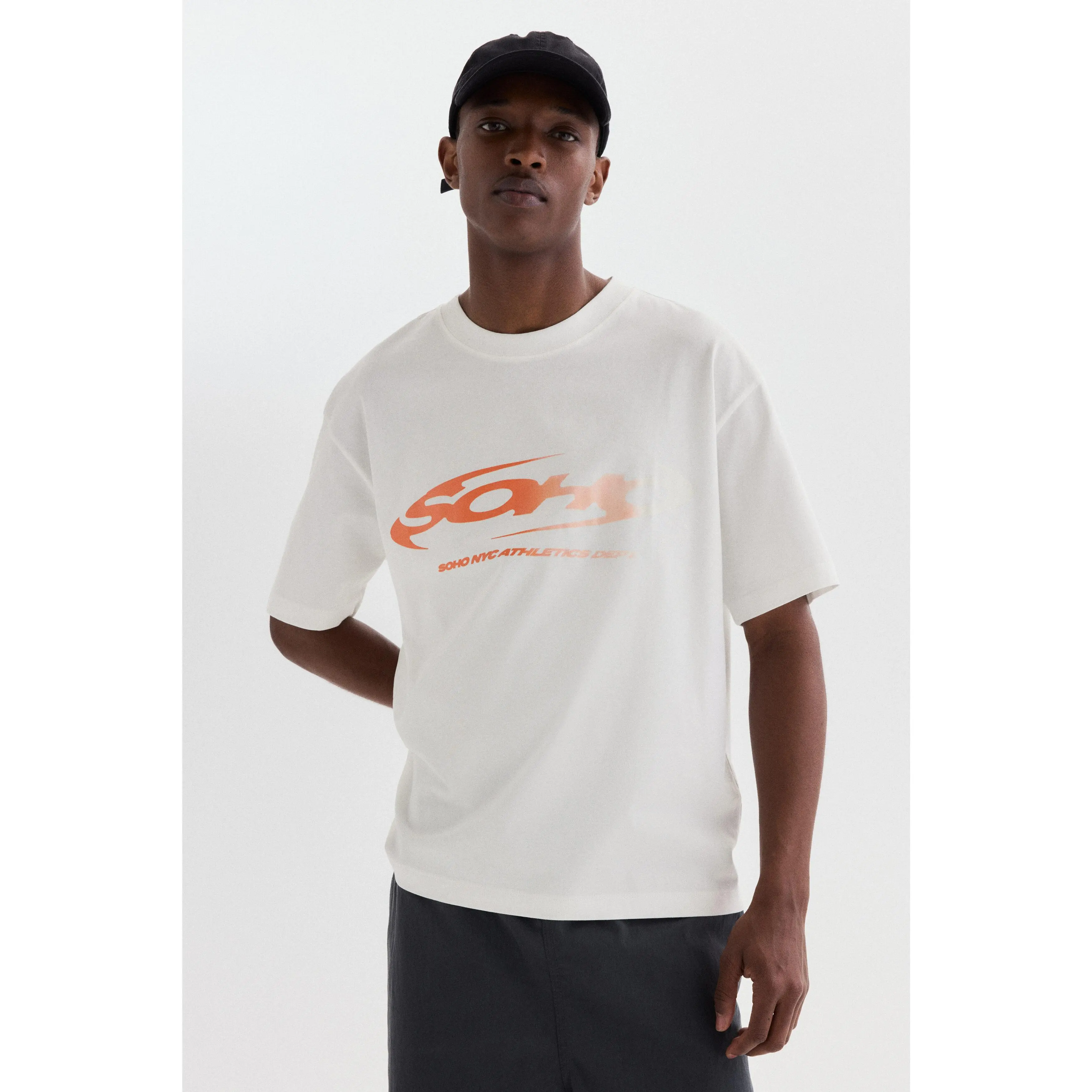 Boxy-style T-shirt in lightweight cotton jersey with print motifs, a ribbed crew neck, dropped shoulders and a straight-cut hem. Loose fit for a generous but not oversized silhouette.