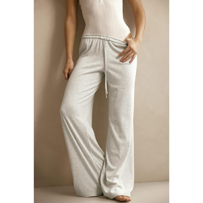 Pyjama bottoms in soft pointelle jersey featuring a frill-trimmed waist with covered elastication and a narrow drawstring. Gently flared legs.