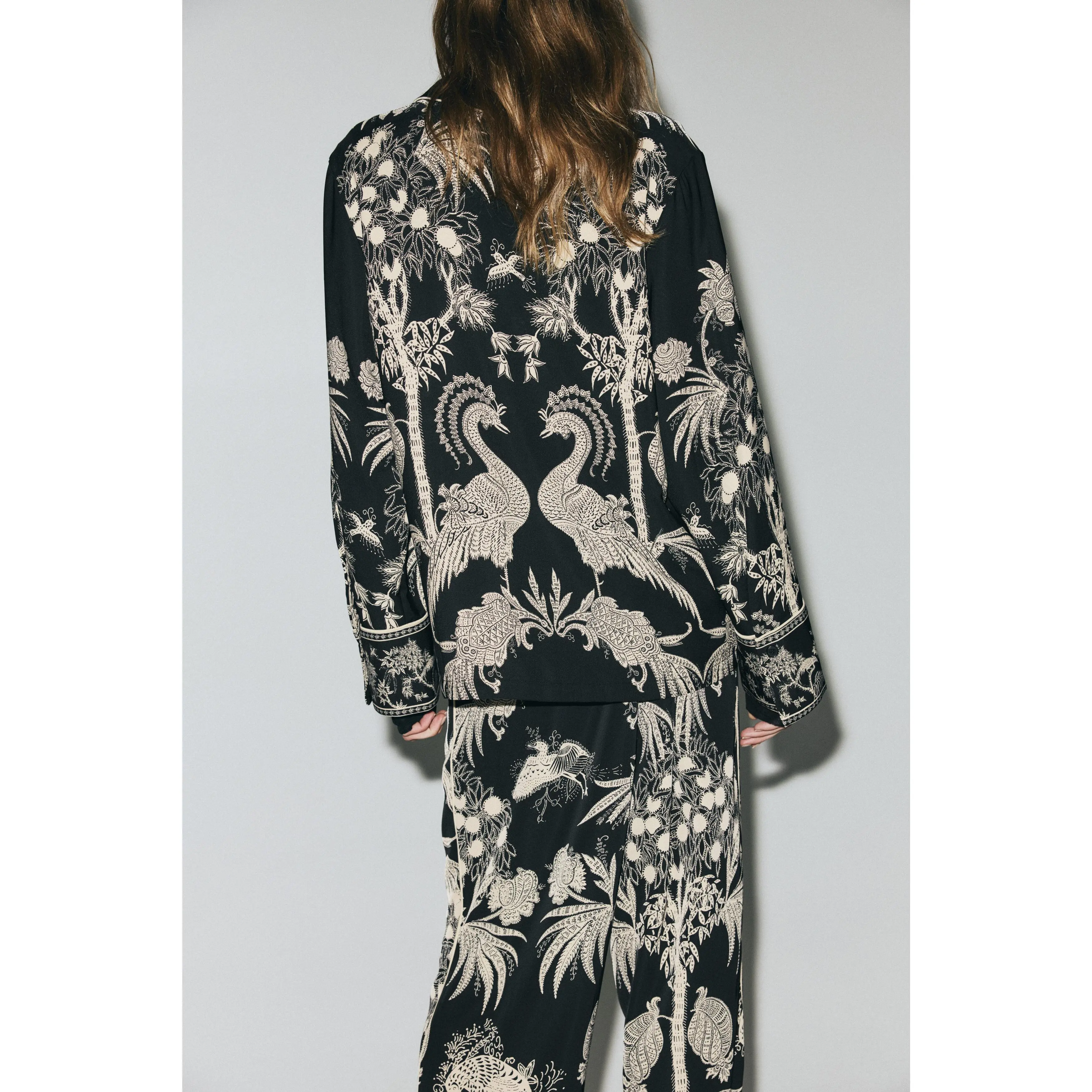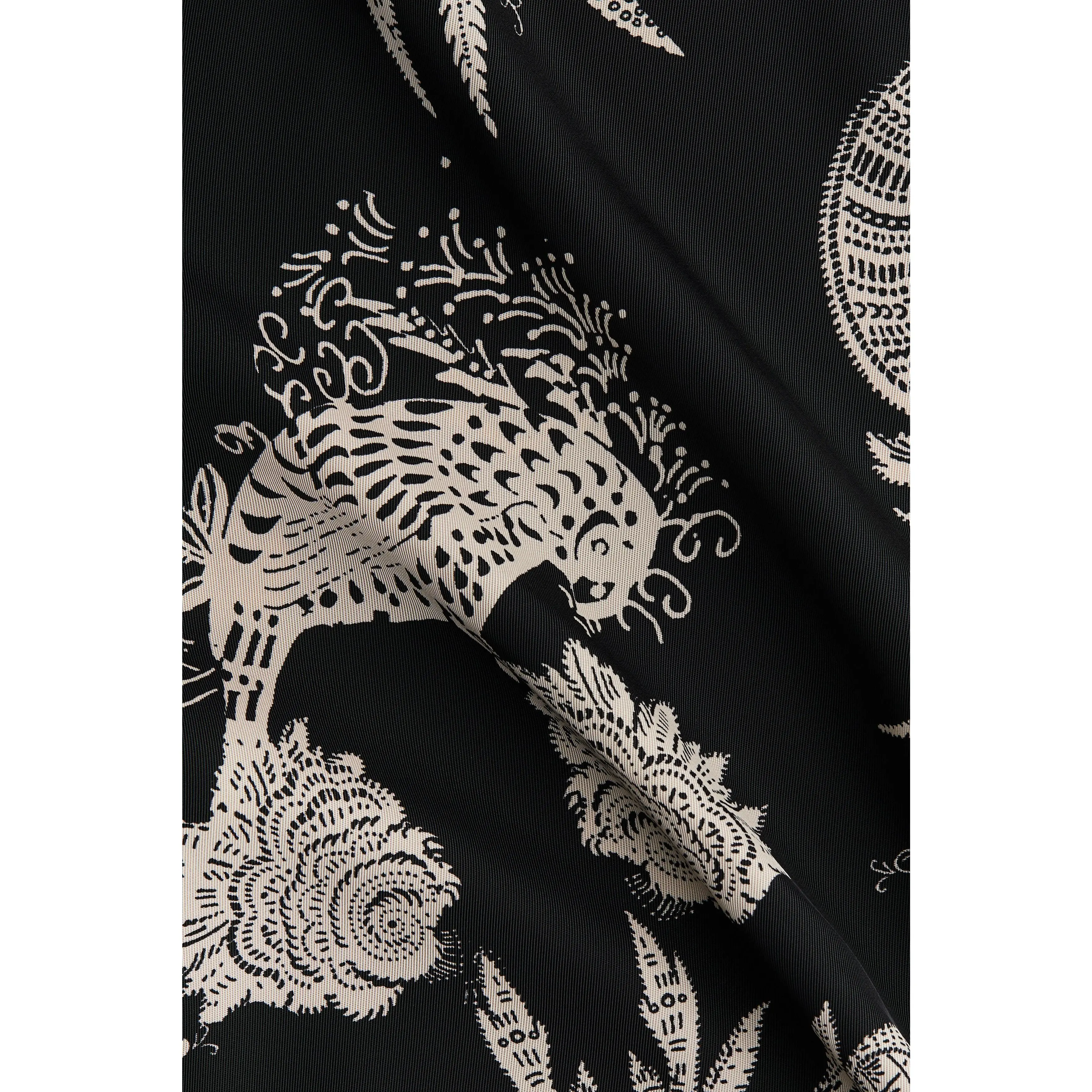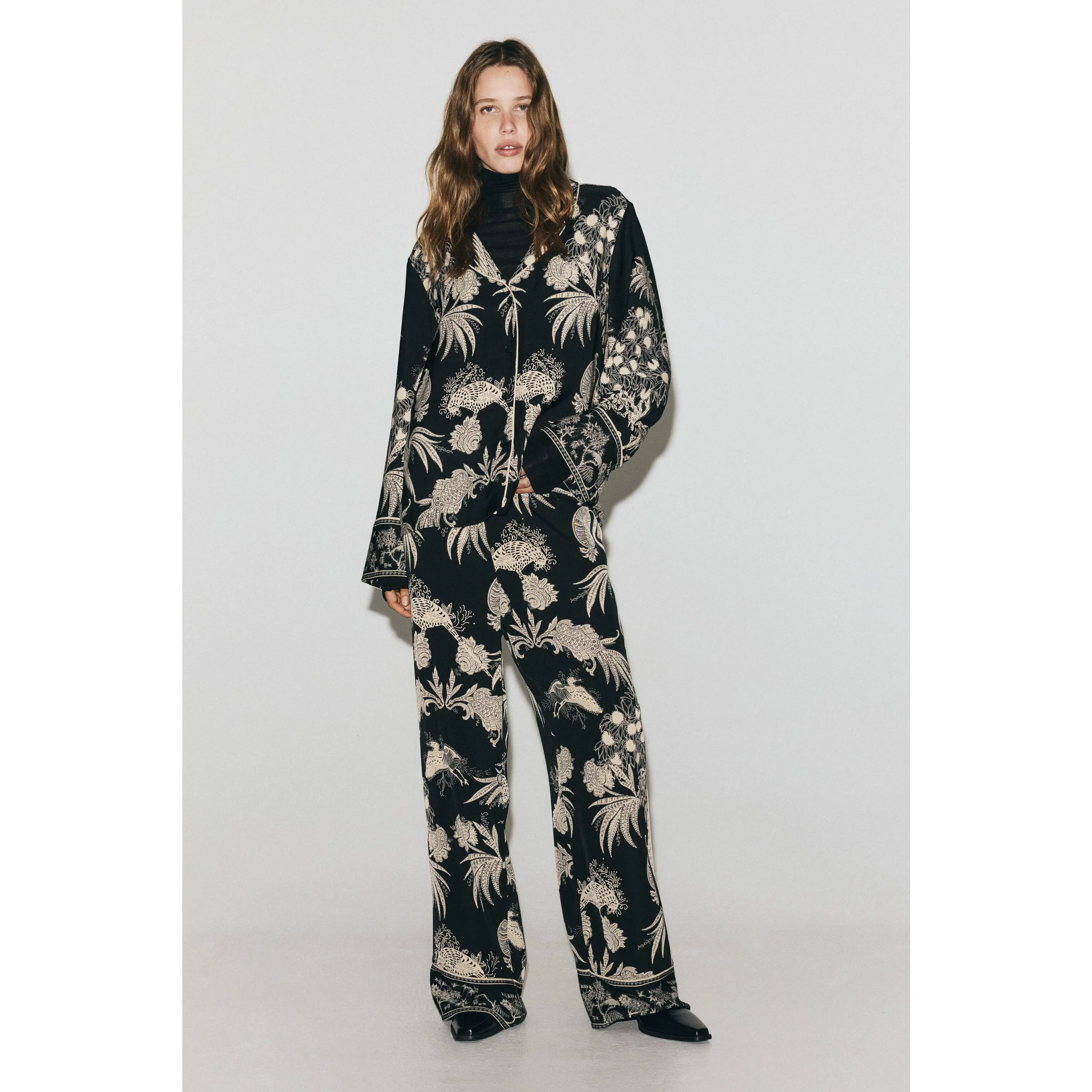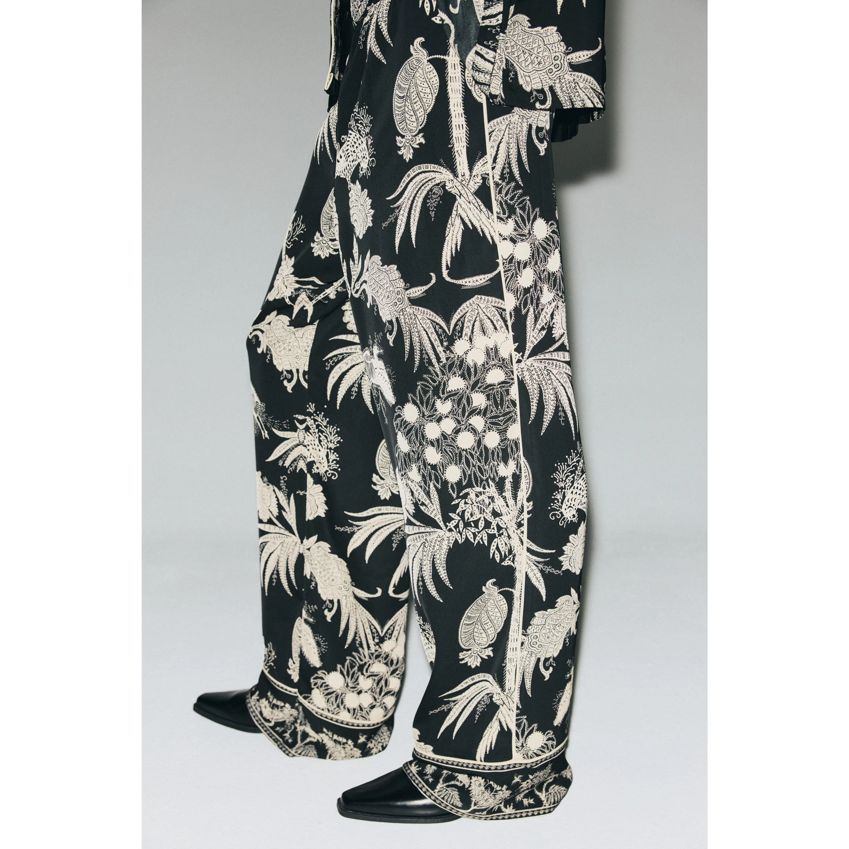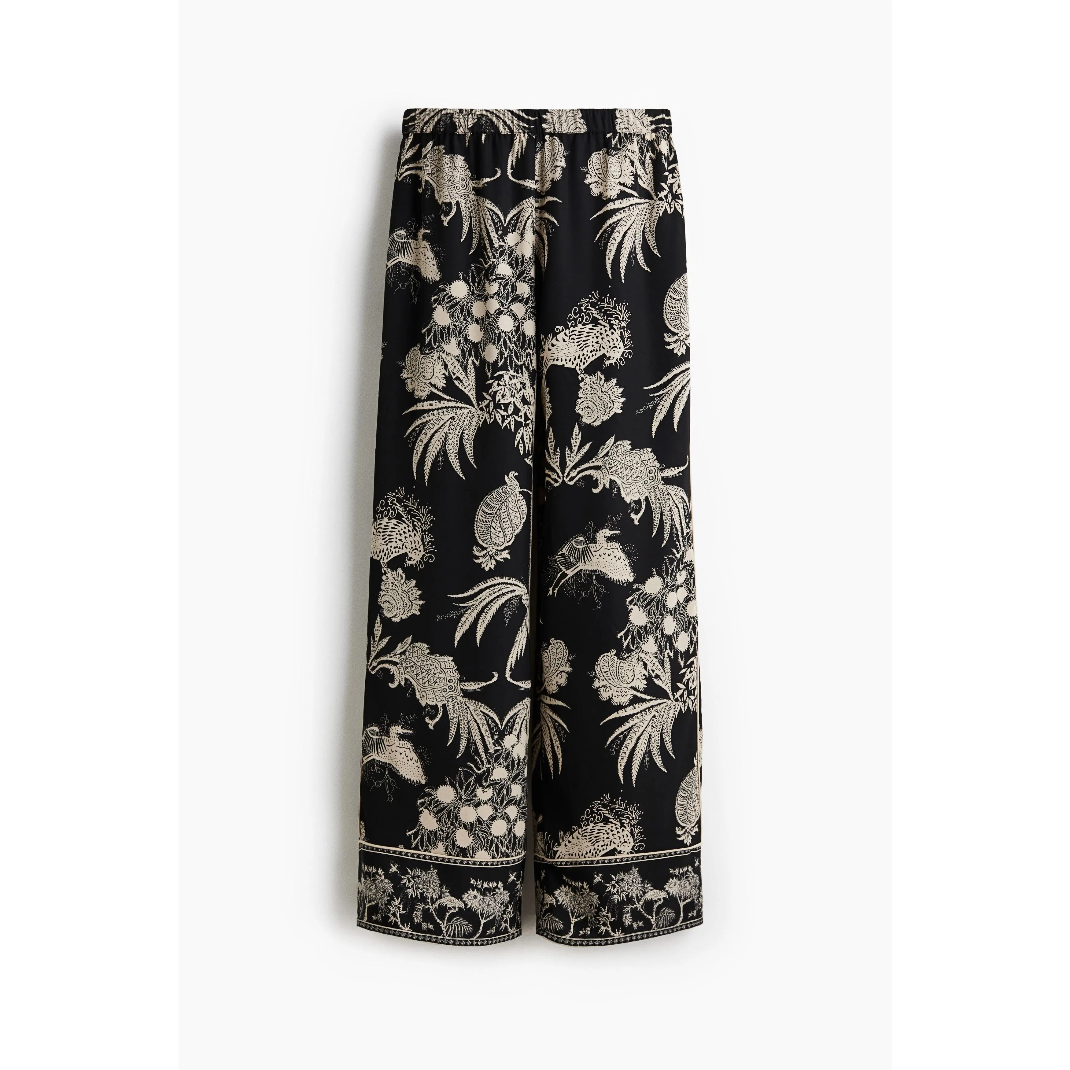 Loose-fit trousers in a printed weave with covered elastication at the waist and straight legs.