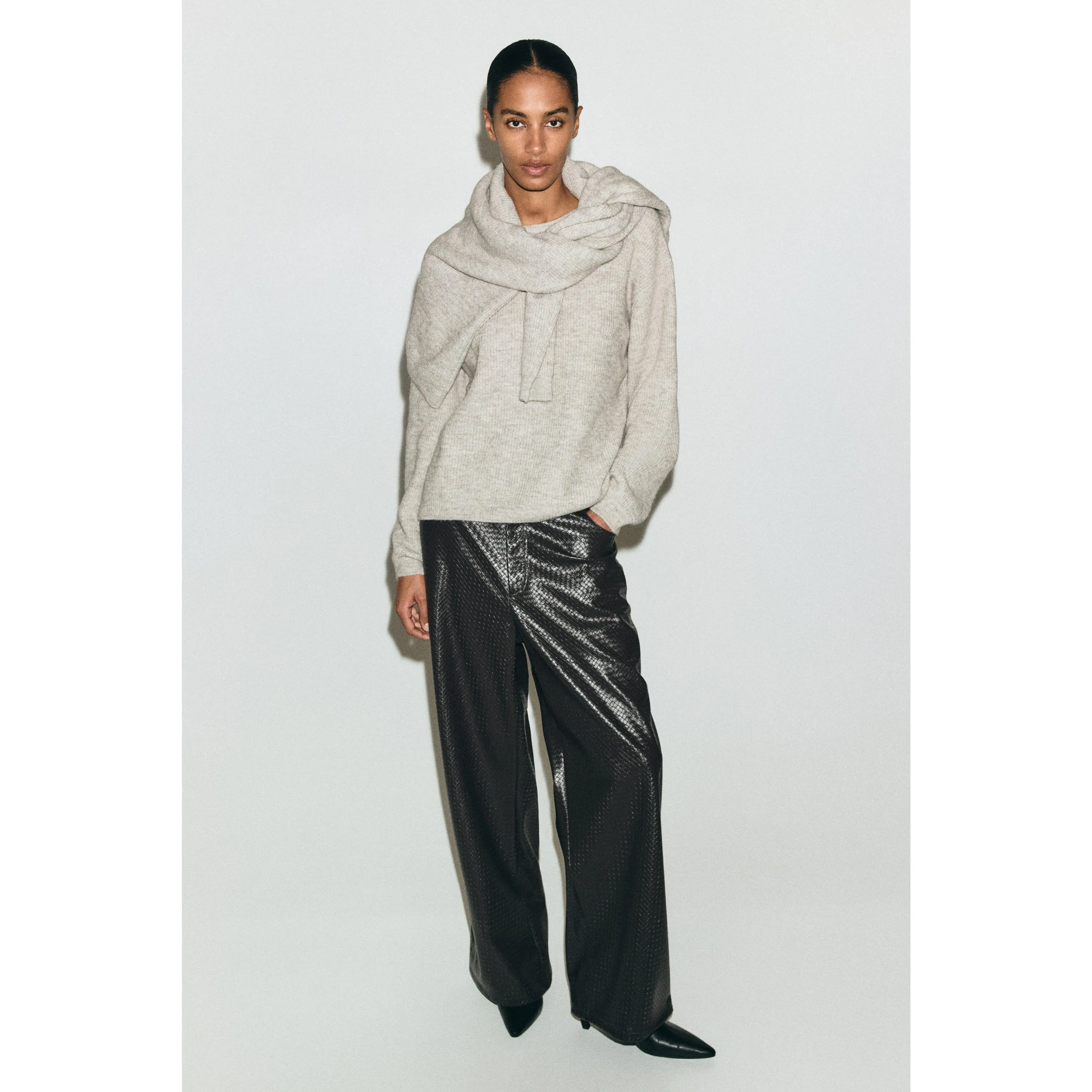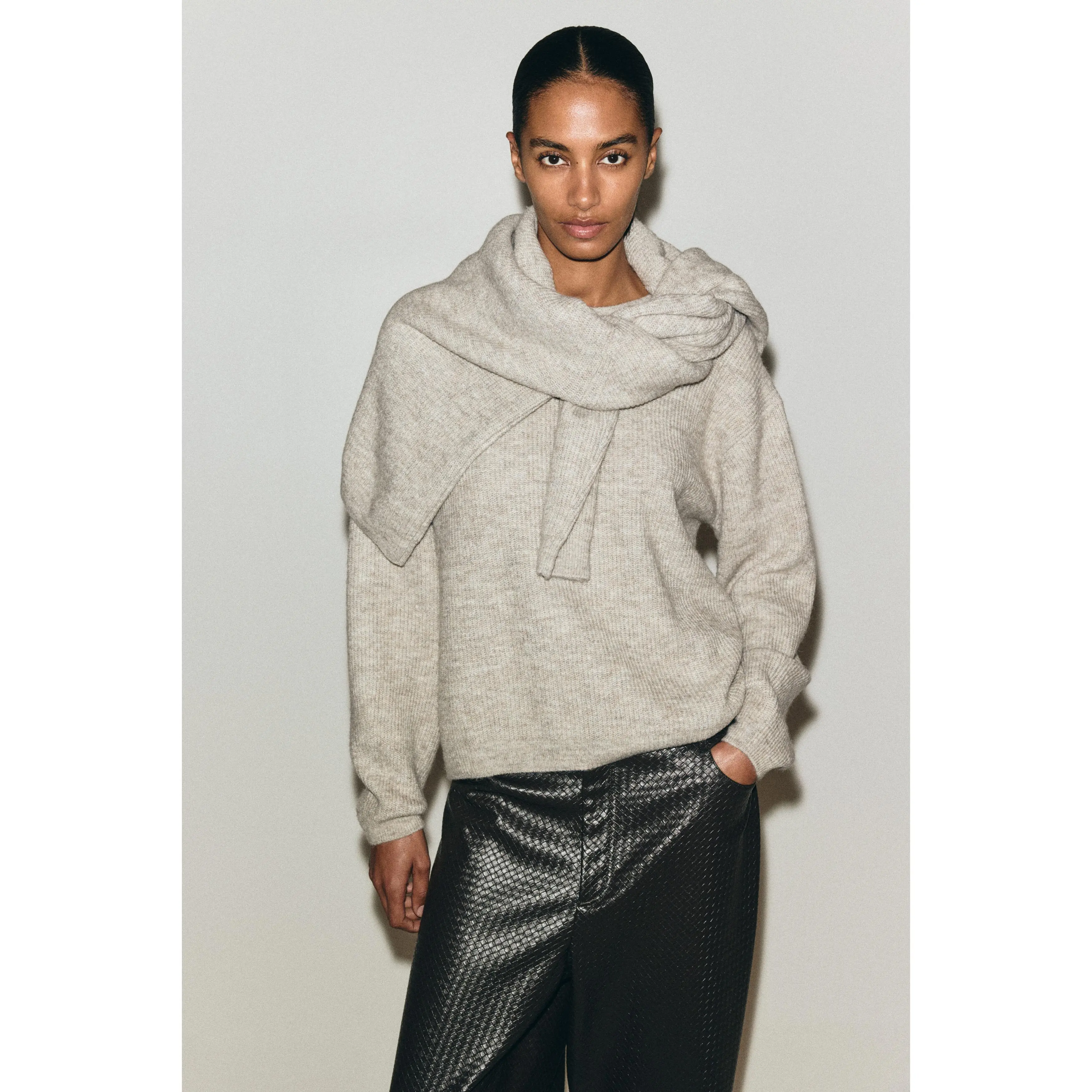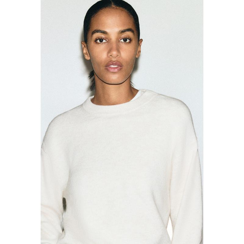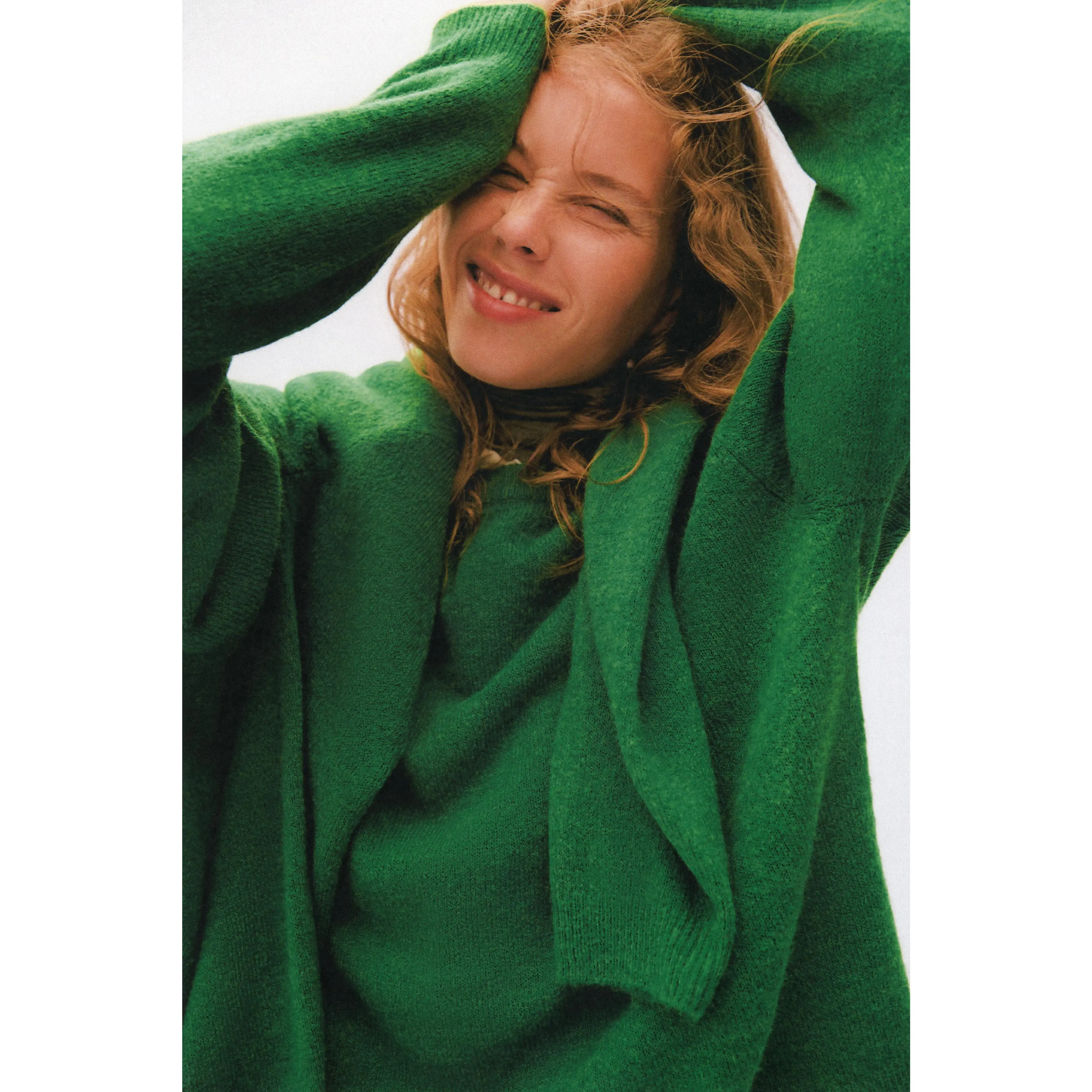 Jumper in a soft knit containing some wool with a round, rib-trimmed neckline, dropped shoulders, long sleeves and ribbing at the cuffs and hem.