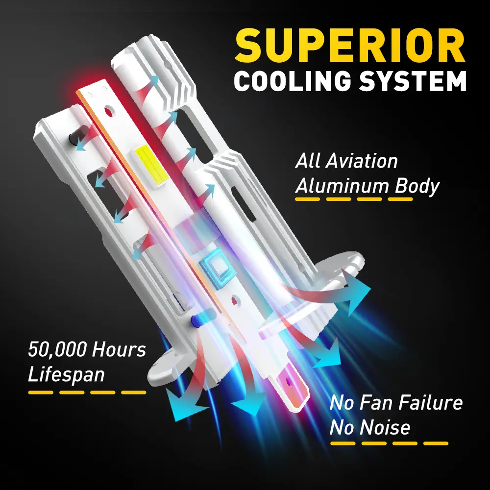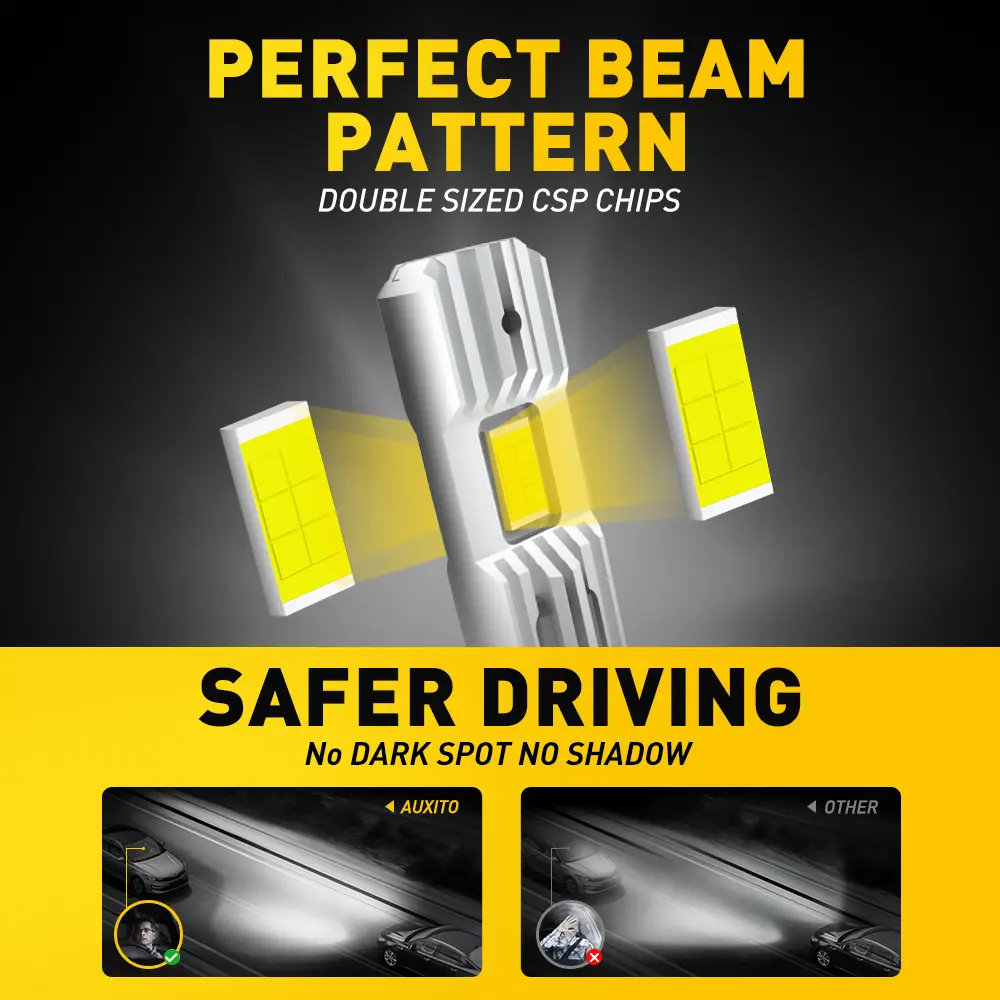LED headlight bulb efficiently speeds up heat dissipation to prevent bulbs from overheating to ensure superior performance, prolonging their lifespan up to 50,000 hours,freeing you from the trouble of frequent replacements.
