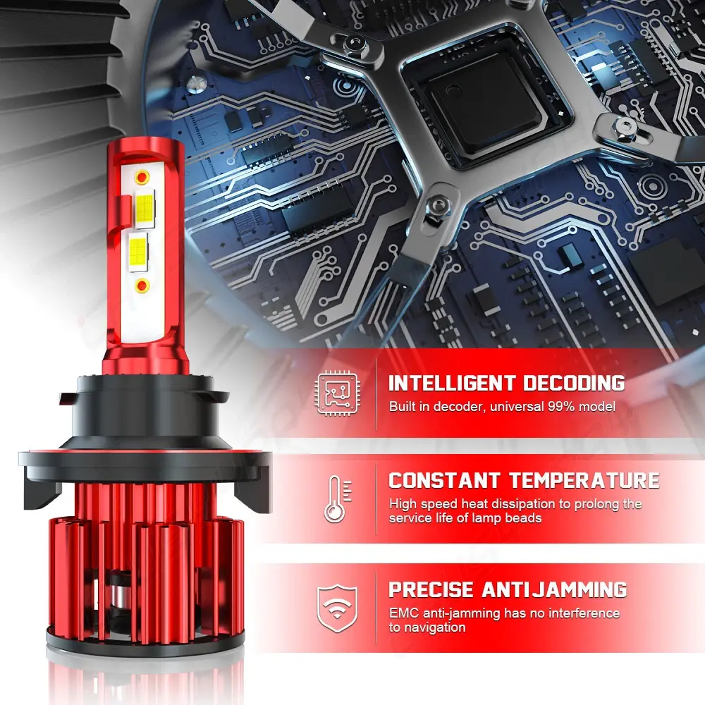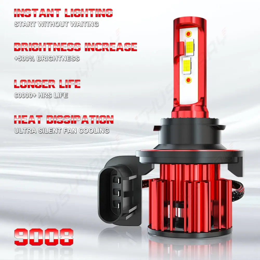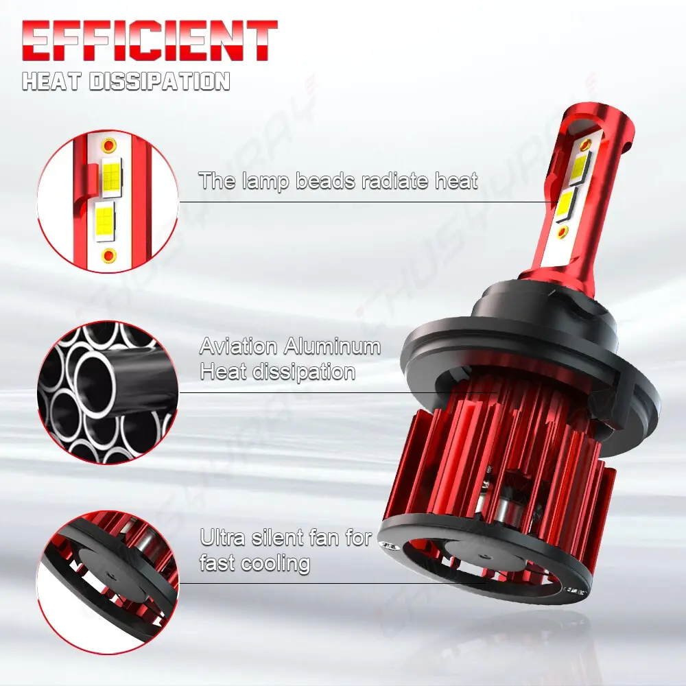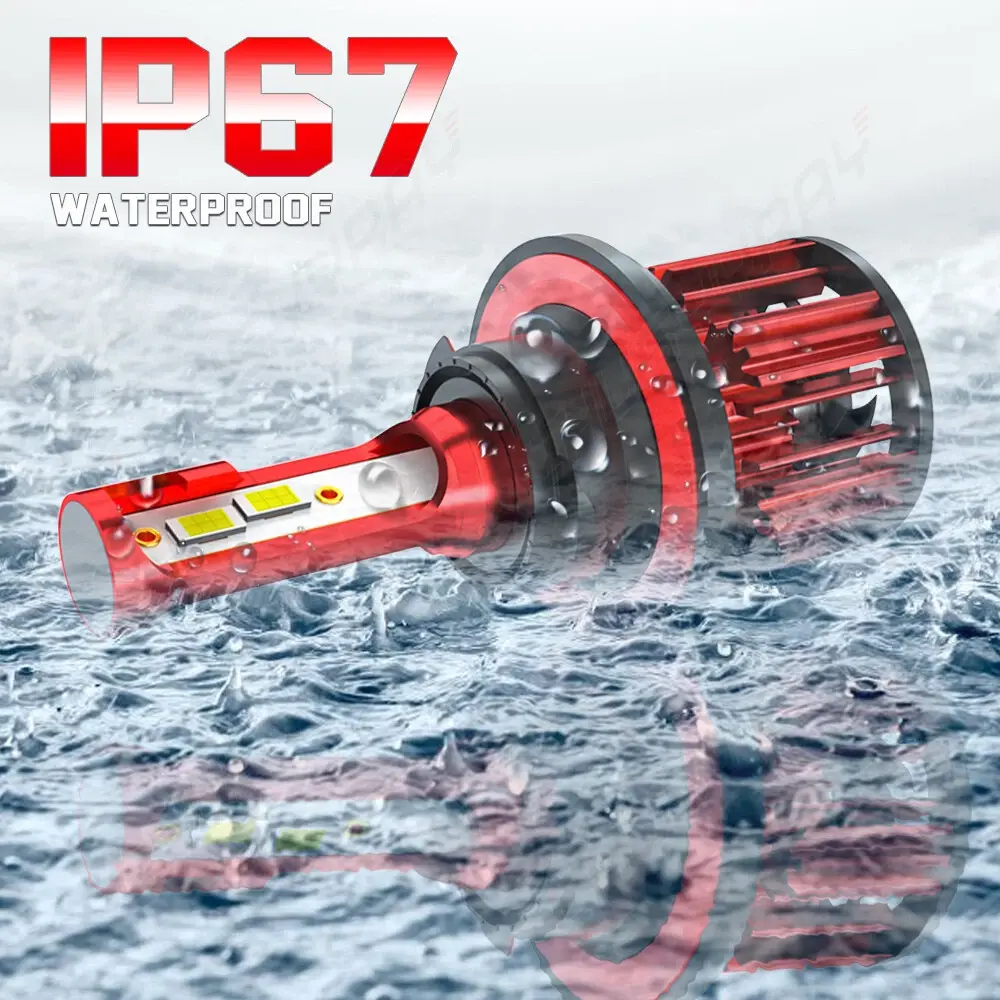 【Turbofan and Waterproof Design】The LED driver was built into the bulbs. The smallest heat system in the market, including cooling fan and cooling aluminum parts. 12,000 RPM high speed turbo fan will help the heat dissipation. In this way can ensure the bulbs lifespan last more than 50,000 hours. Our led headlight kit design IP67 waterproof. It can work underwater! Rainproof , it also shockproof. Buy it confidence.