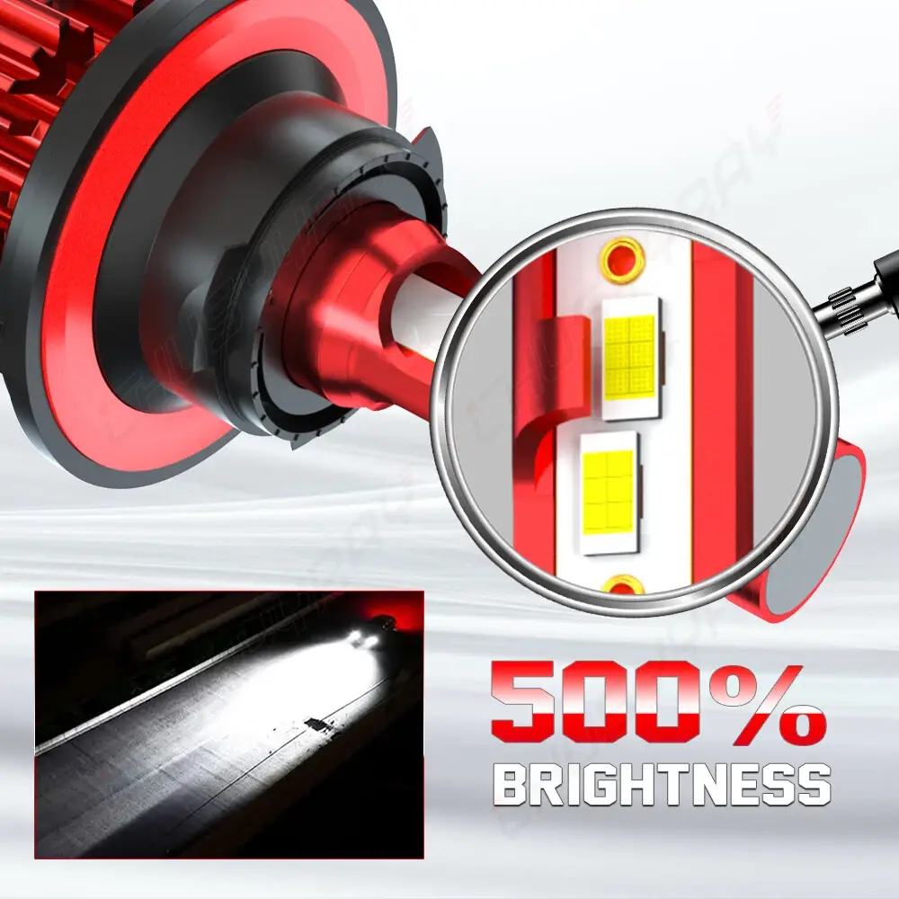 【High Brightness】the led headlight bulbs provide up to 500% more light and 6000K white clearer vision while driving at night, ditching your yellow and dim stock lights.Light up your road but no blind others drivers. They have a perfect beam pattern without any dark spots or foggy light.