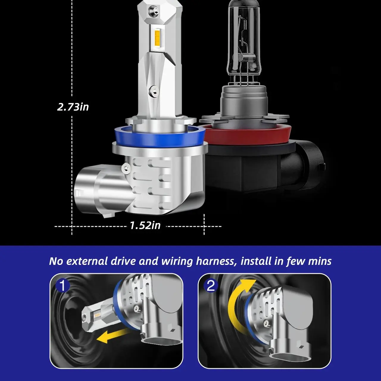 【5-Min Installation】1:1 halogen fog lamp size. Plug-and-play, no-polarity and aluminum socket feature makes replacing amber yellow fog light never been easier. No tools needed, perfect fit without any modification