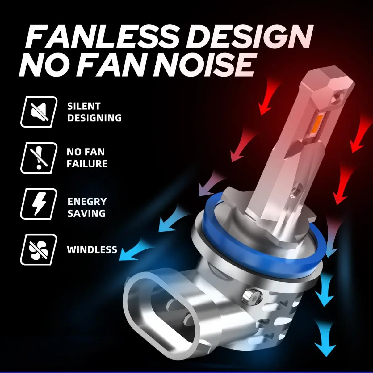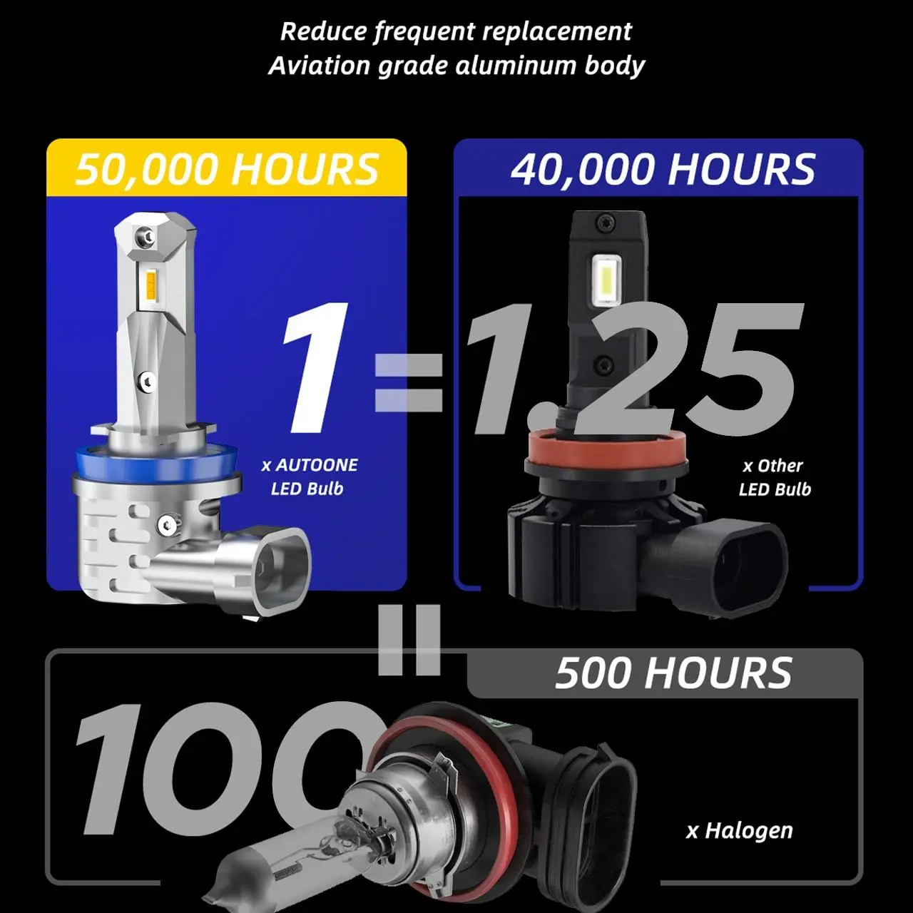 【50000+ Hours Lifespan】Top-grade aviation aluminum heat sink design and intelligent temp control for heat dissipation ensure H8 LED fog lights much longer lifespan up to 50000 hours