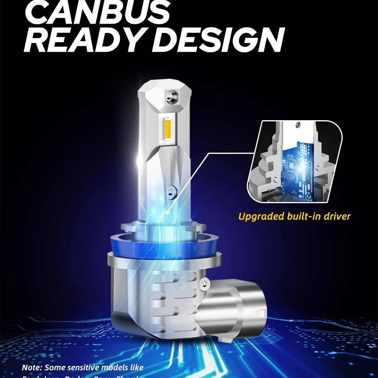 【CAN-bus Ready for 99% Vehicles】The built-in driver of H8 amber yellow fog lights adopt upgraded technology, not only has a more intelligent temperature control system but also applies to 99% of vehicle without error, flickering or radio interference
