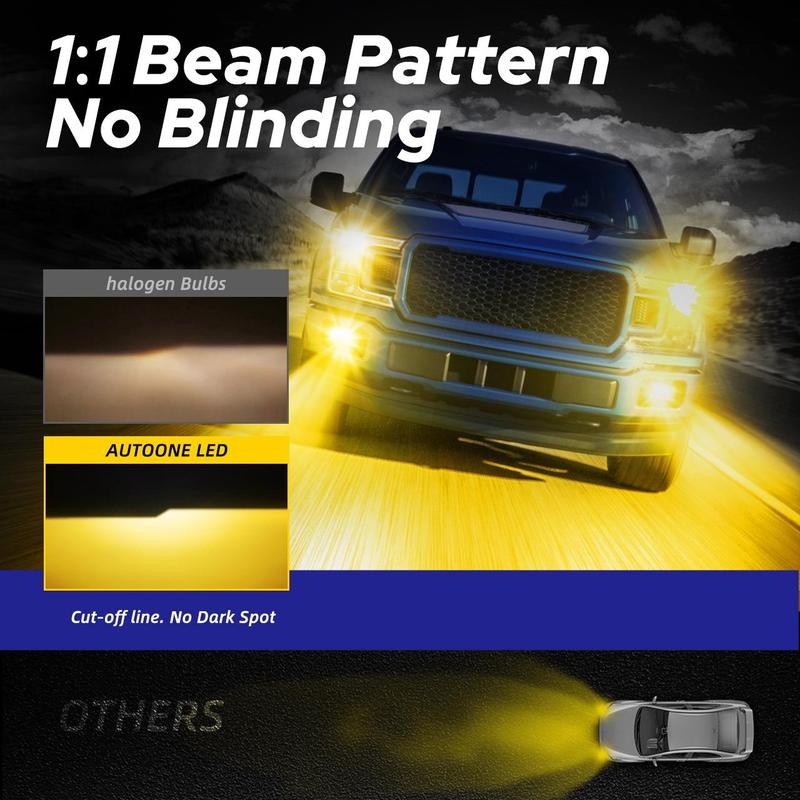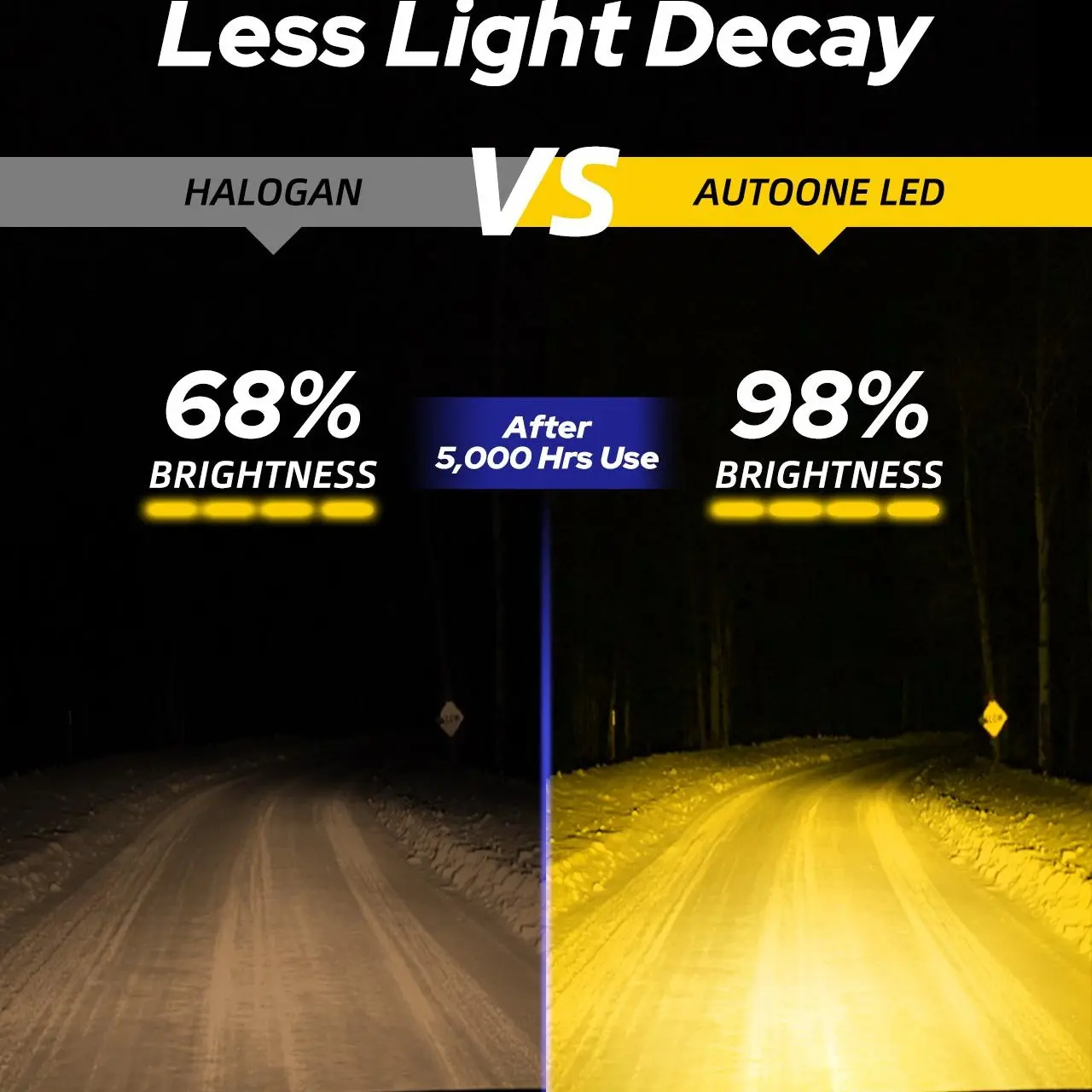 【Outstanding Brightness】AUTOONE H11 yellow fog lights are equipped with CSP LED chips, which provide 400% brighter light output in 3000K amber yellow. Making your vision range wider and farther