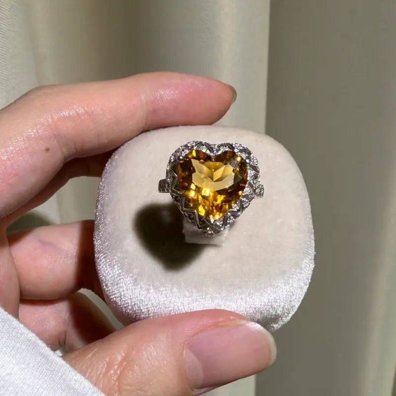 S925 sterling silver ring, Natural Cirtine gemstone, heart shape, adjustable size, set size wirh a 12*12mm, high quality setting Engagement Ring, Luxurious for Women,,Grils as Birthday Gift, Perfect for Daily Wear and Party, Valentine's Day Gift