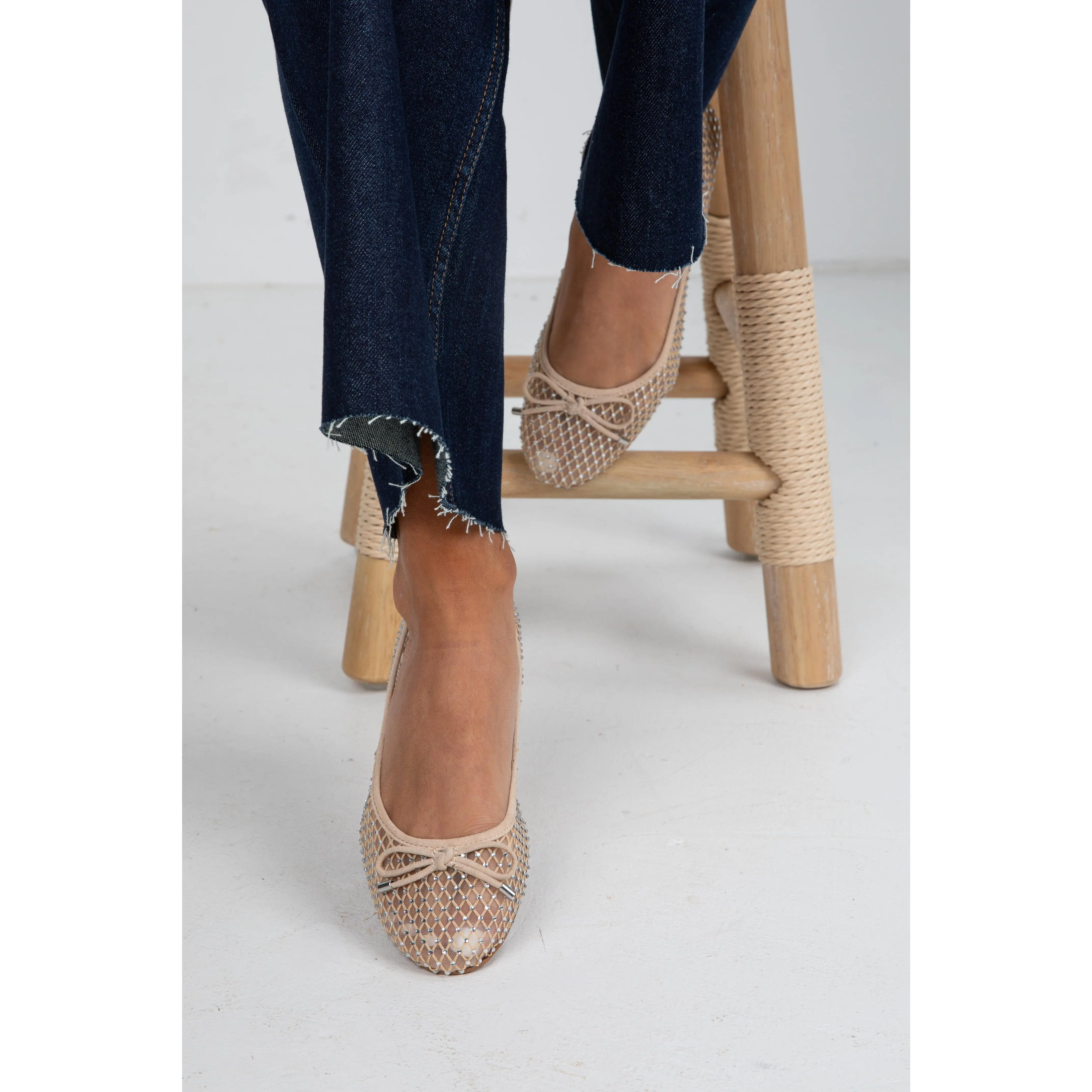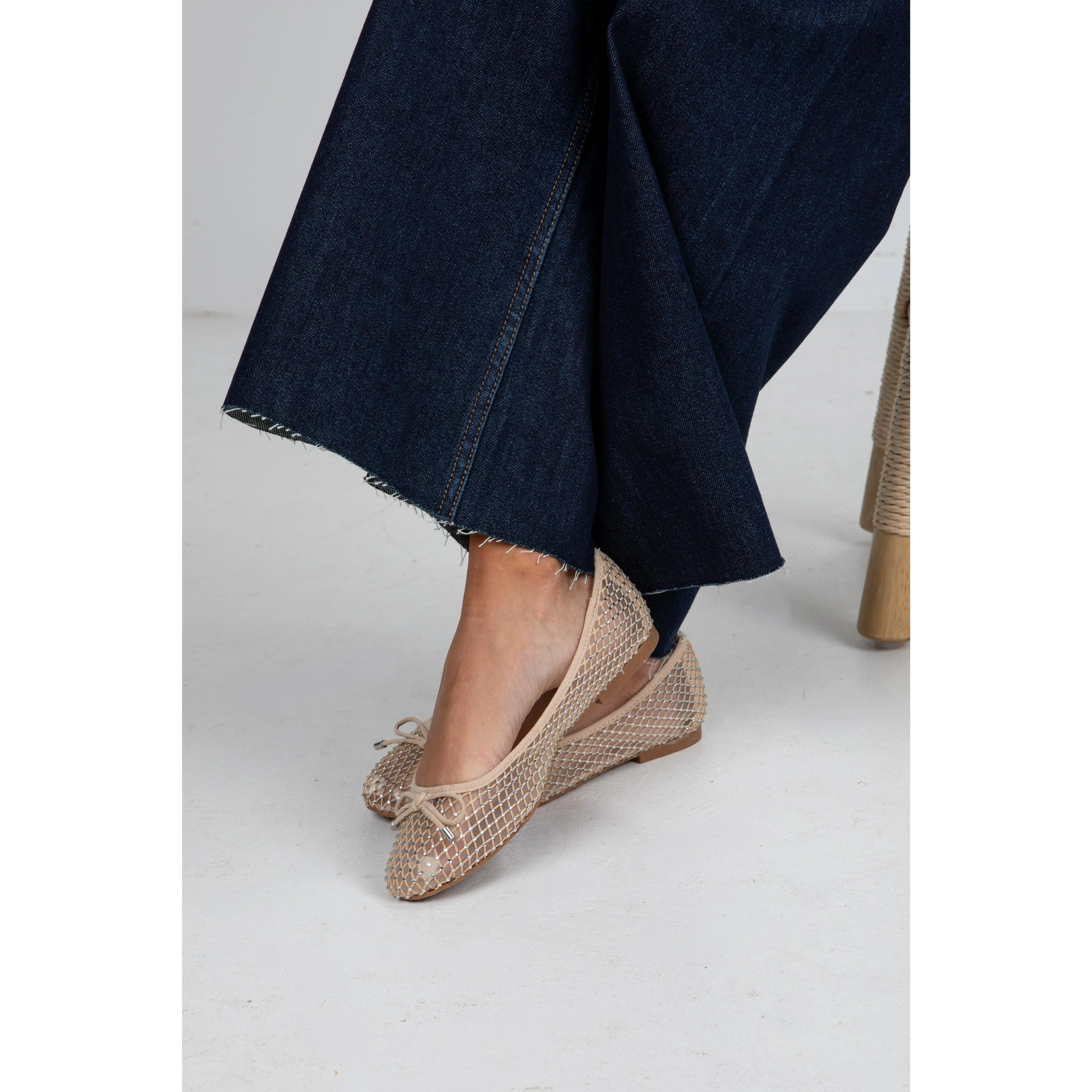 5. FINAL SALE - Had To Be There Nude Mesh Rhinestone Ballet Flats